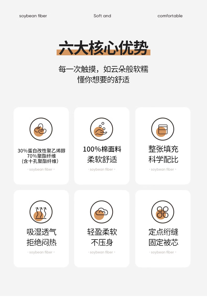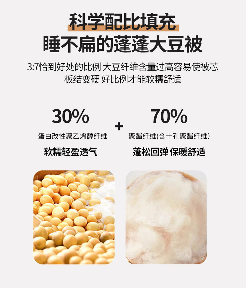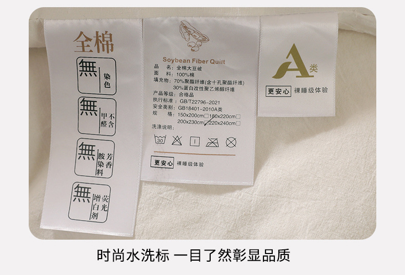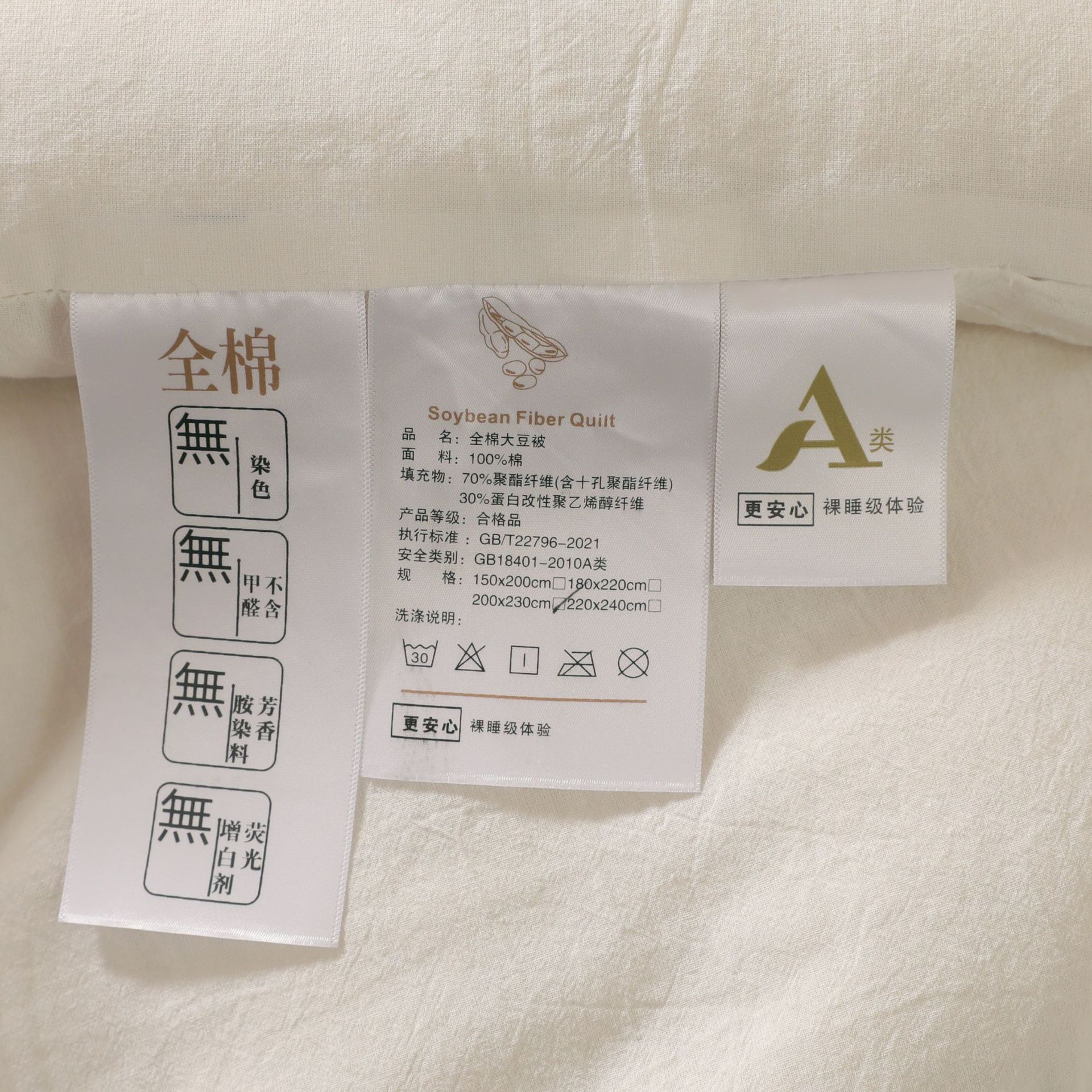 A类母婴全棉大豆被30%蛋白改性聚已烯醇纤维被芯冬季保暖子母被子