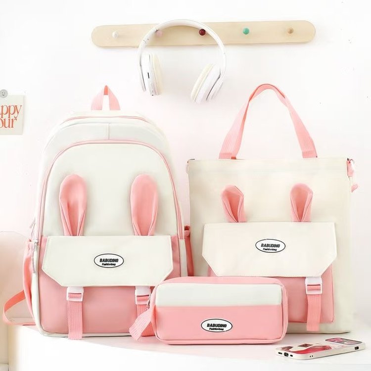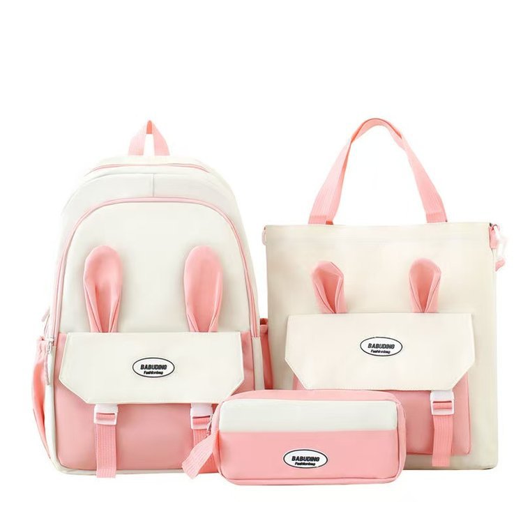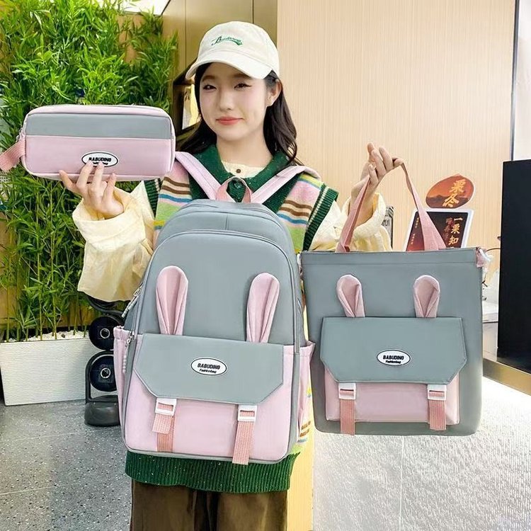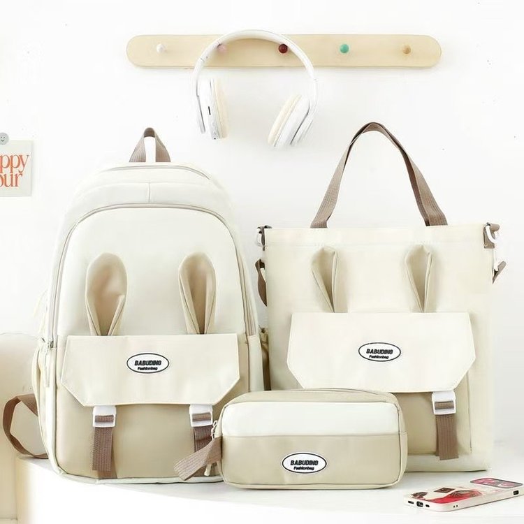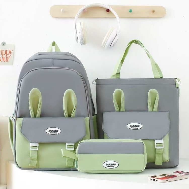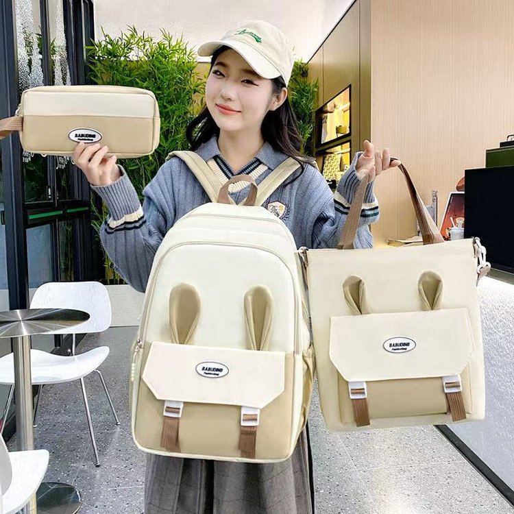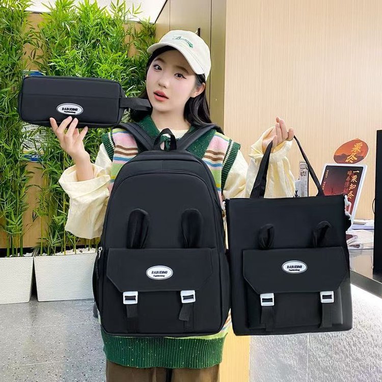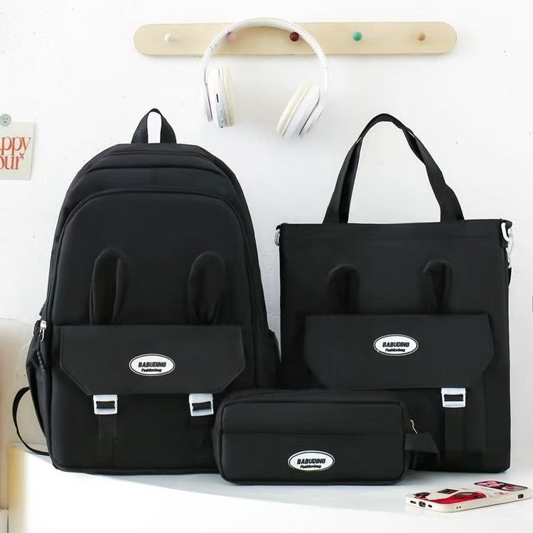 新款跨境韩版双肩背包纯色百搭三件套组合包背包学生书包
