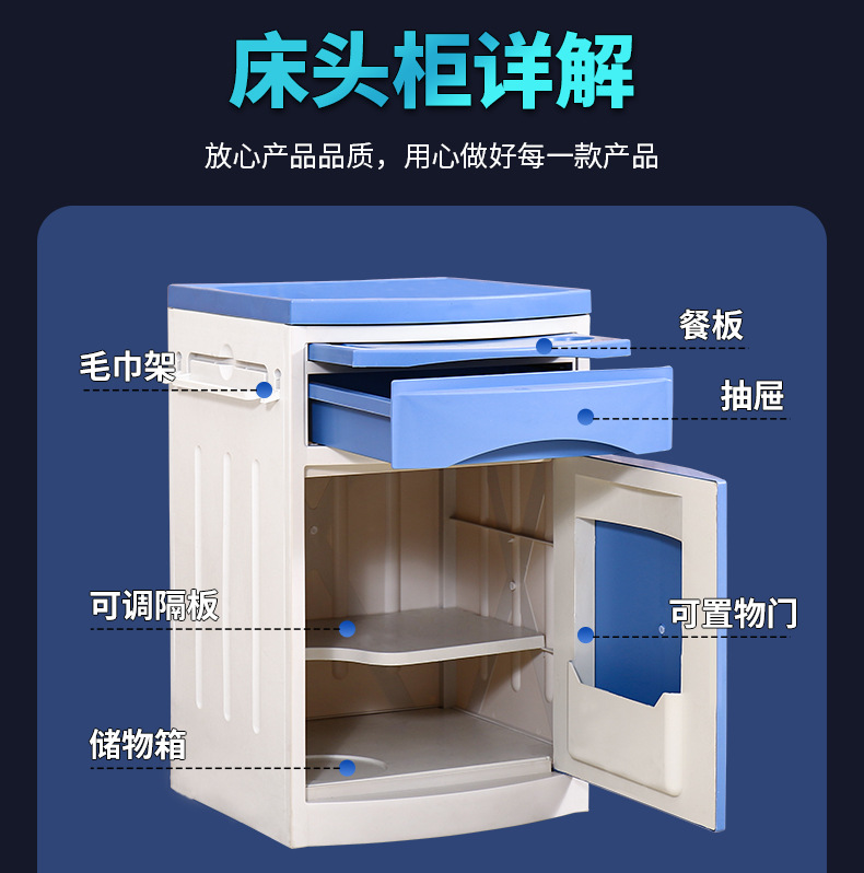 医院床头柜病房床边柜医养老院宿舍用疗环保材料医用ABS床头柜
