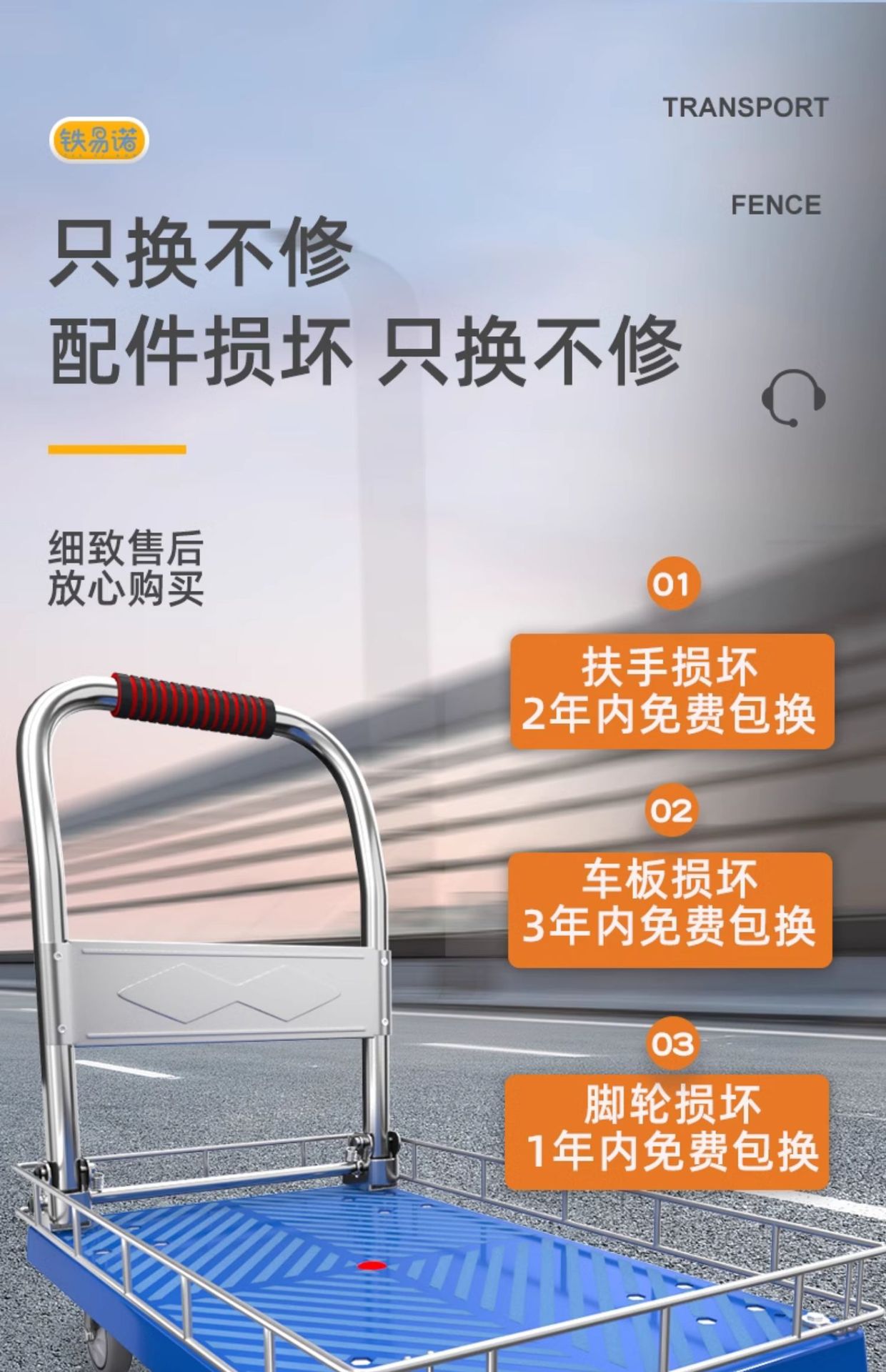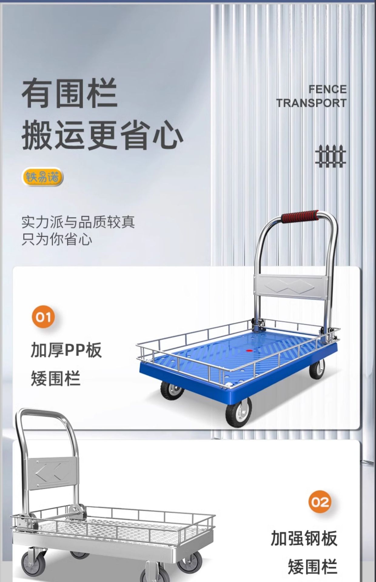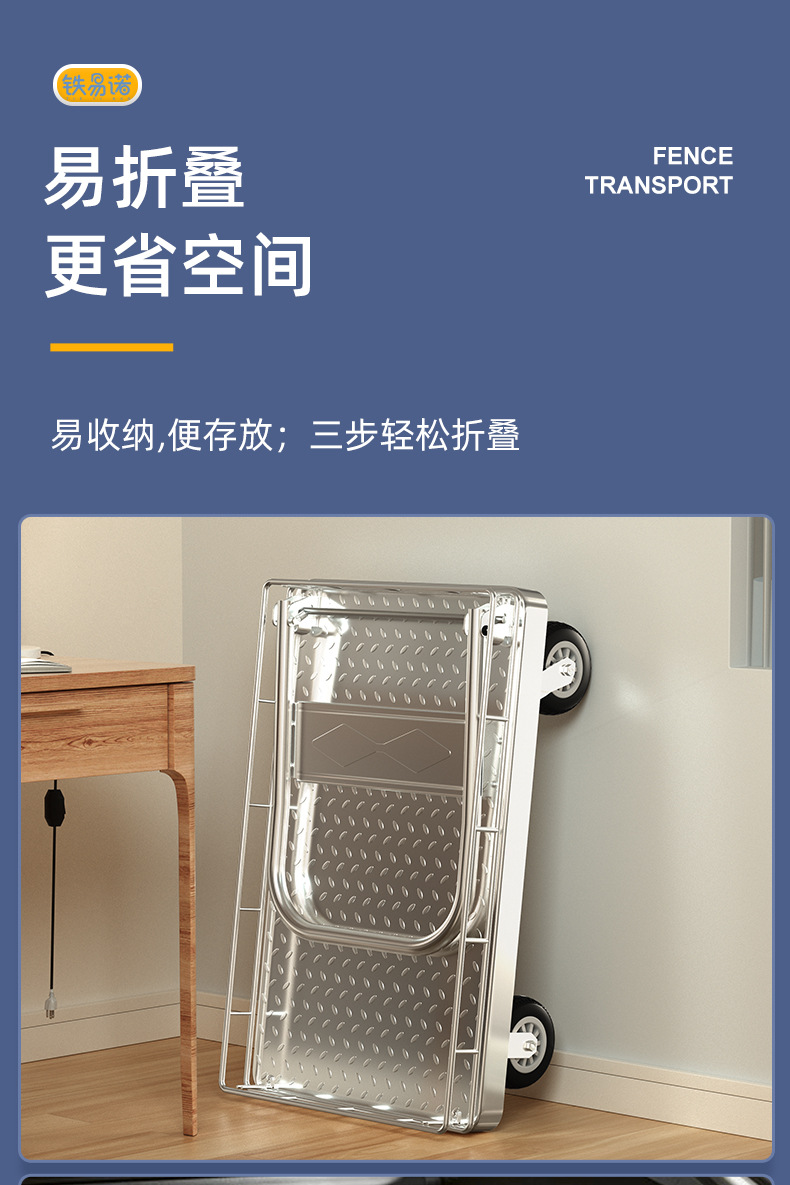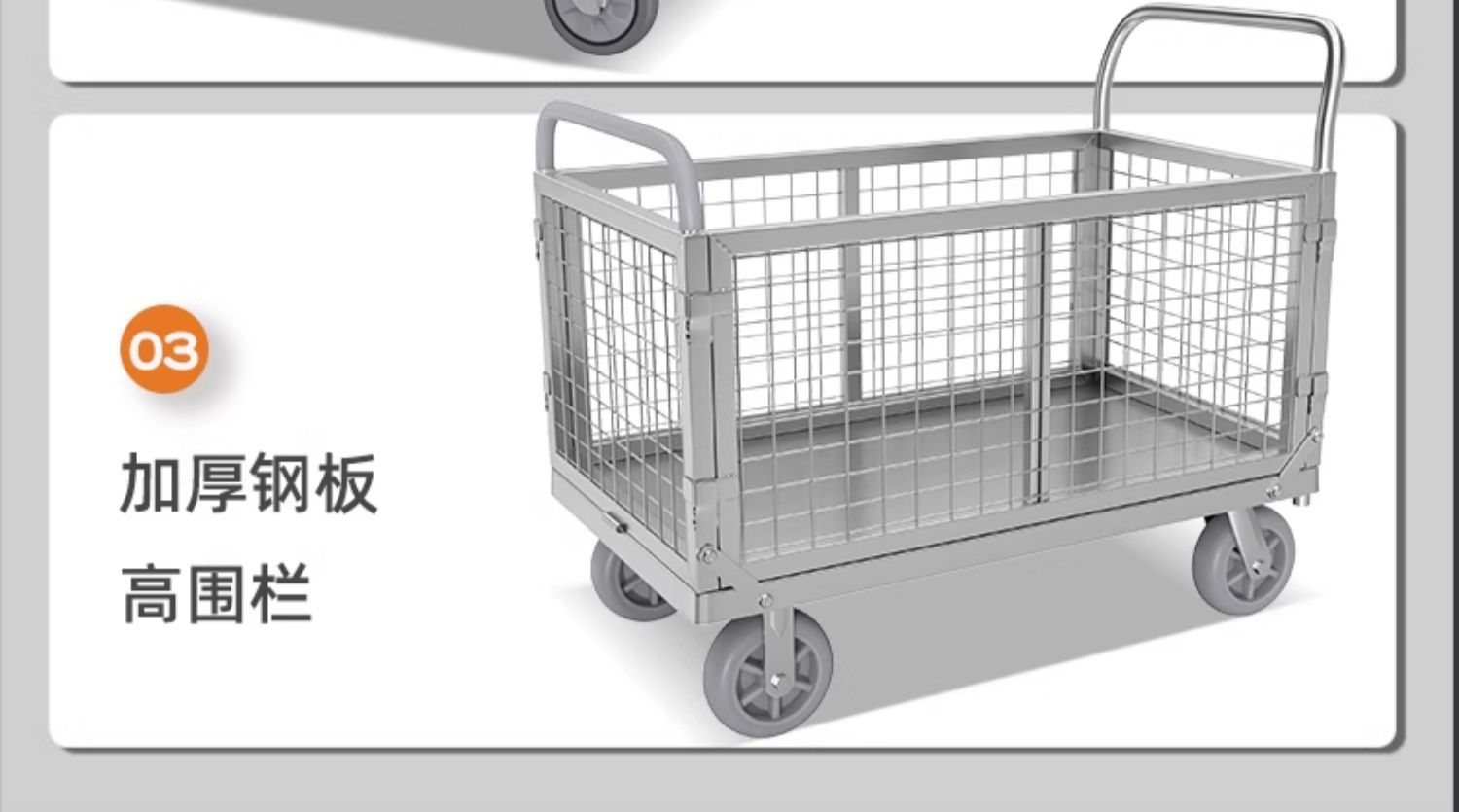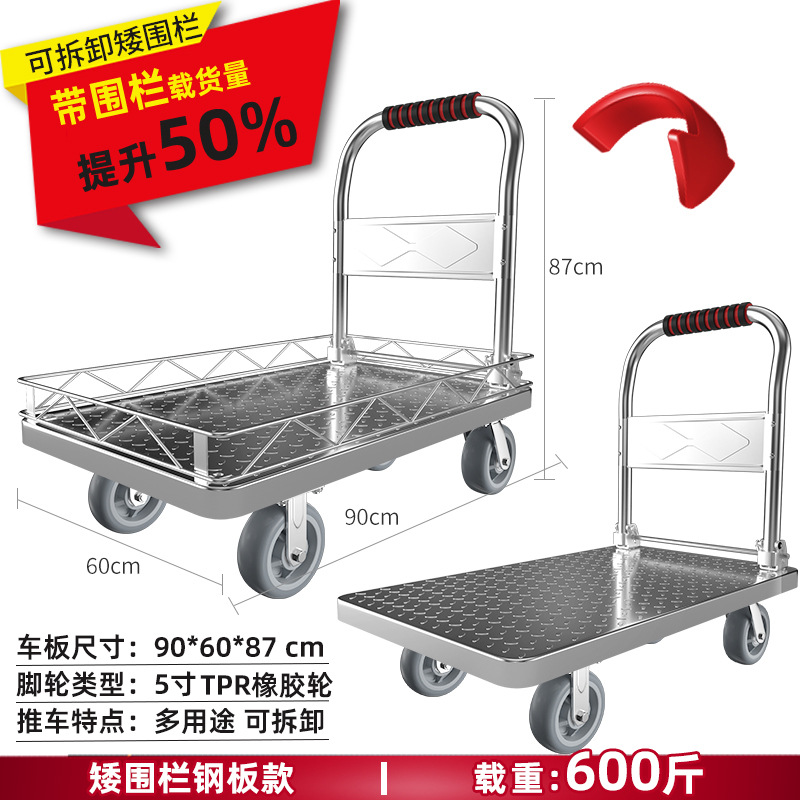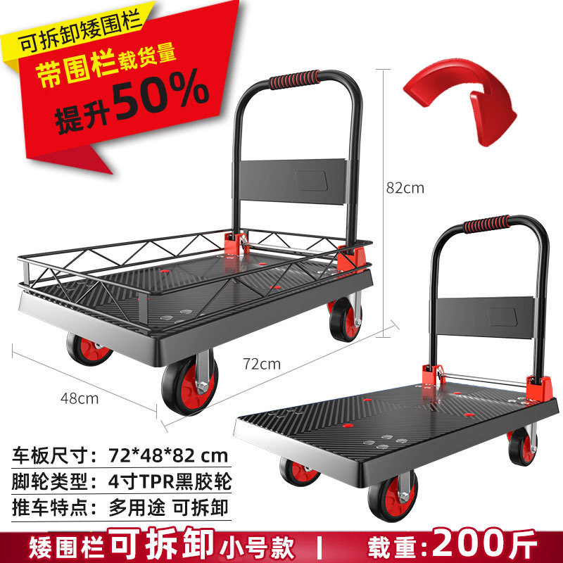 拉货小推车带护栏平板车家用搬运车带围栏手推车取快递可折叠拖车