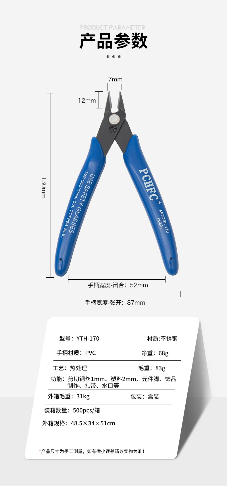 PCHFC-170剪钳工业级斜口钳高达模型水口钳DIY手工塑料披锋电子钳