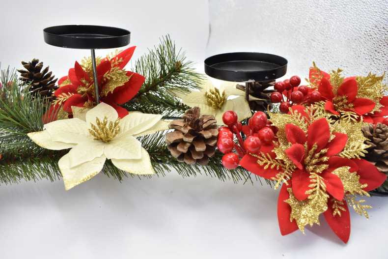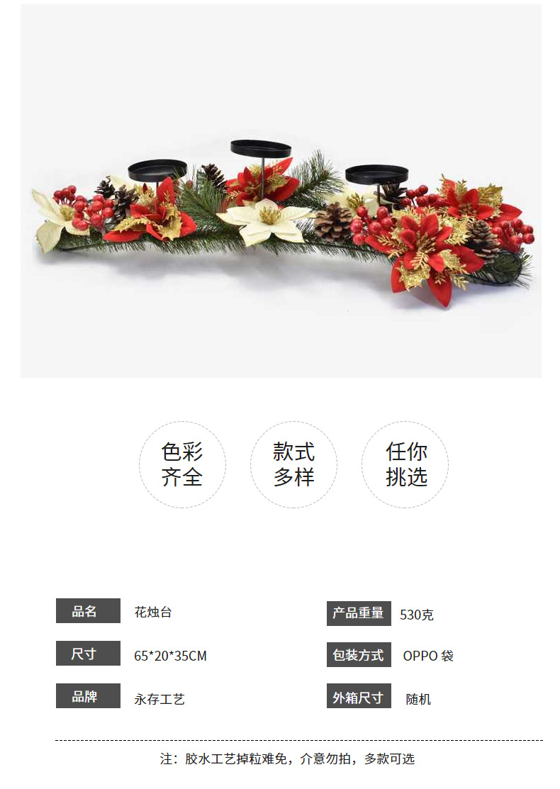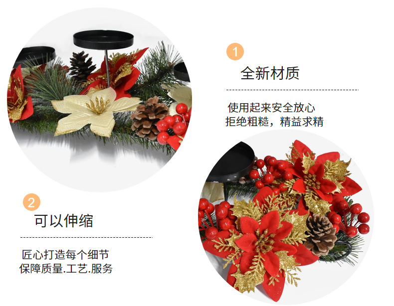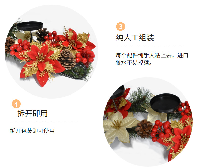 亚马逊圣诞花环节日纯手工红果烛台酒店商场装饰圣诞树松果装饰