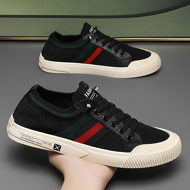 飞织透气男鞋2025春夏新款潮流百搭运动休闲网面板鞋一脚蹬懒人鞋