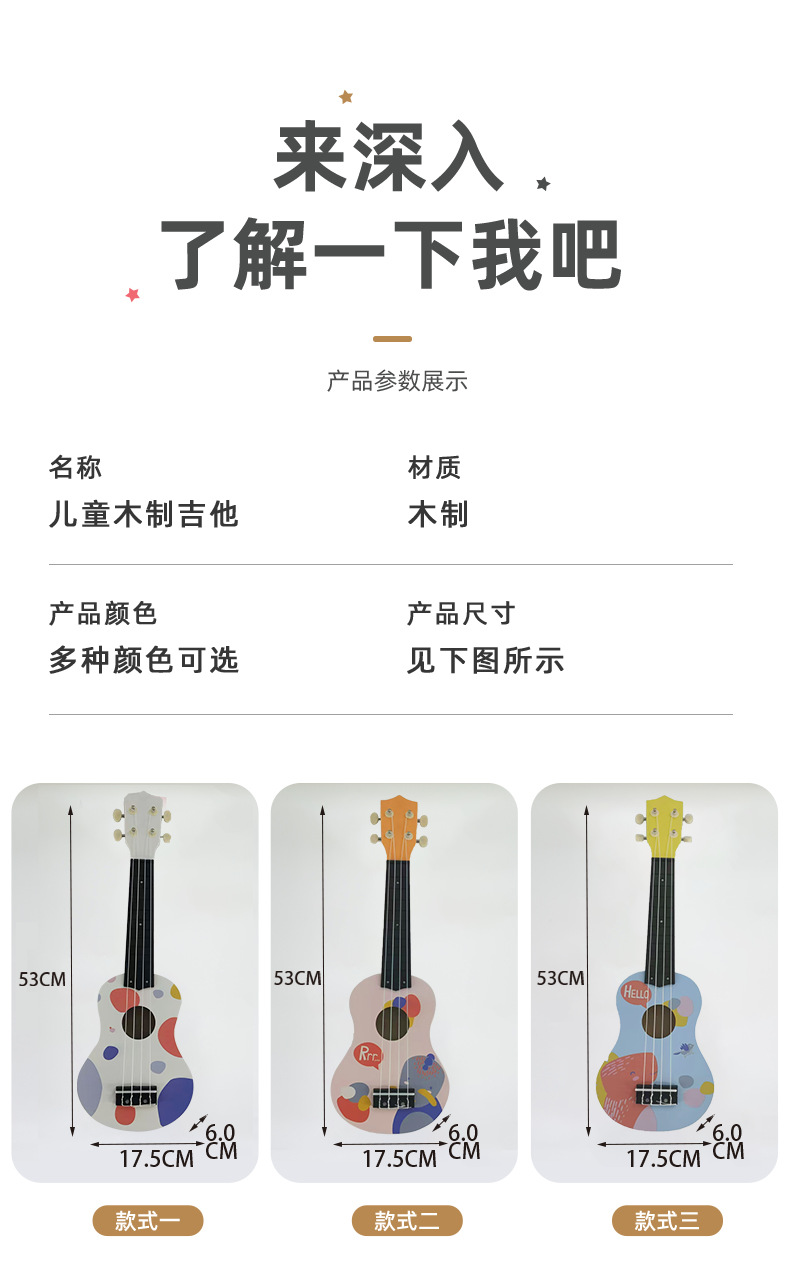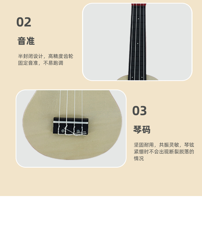现货2024新款21寸木制尤克里里吉他儿童音乐启蒙玩具迷你早教乐器