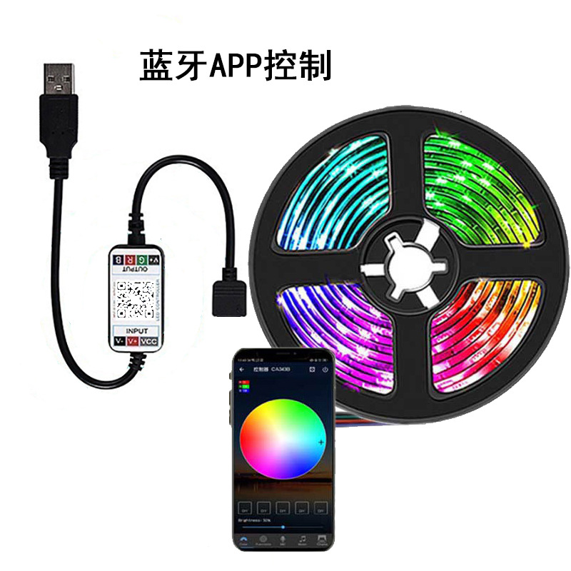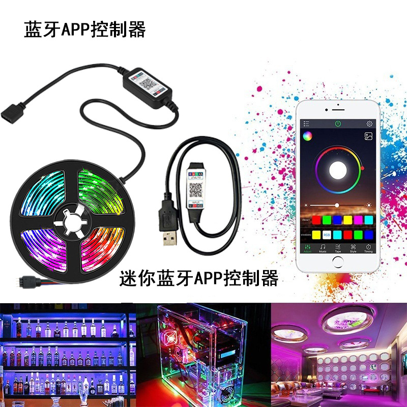 外贸专供LED灯带5V5050RGB七彩灯带2835遥控蓝牙APP音乐氛围灯
