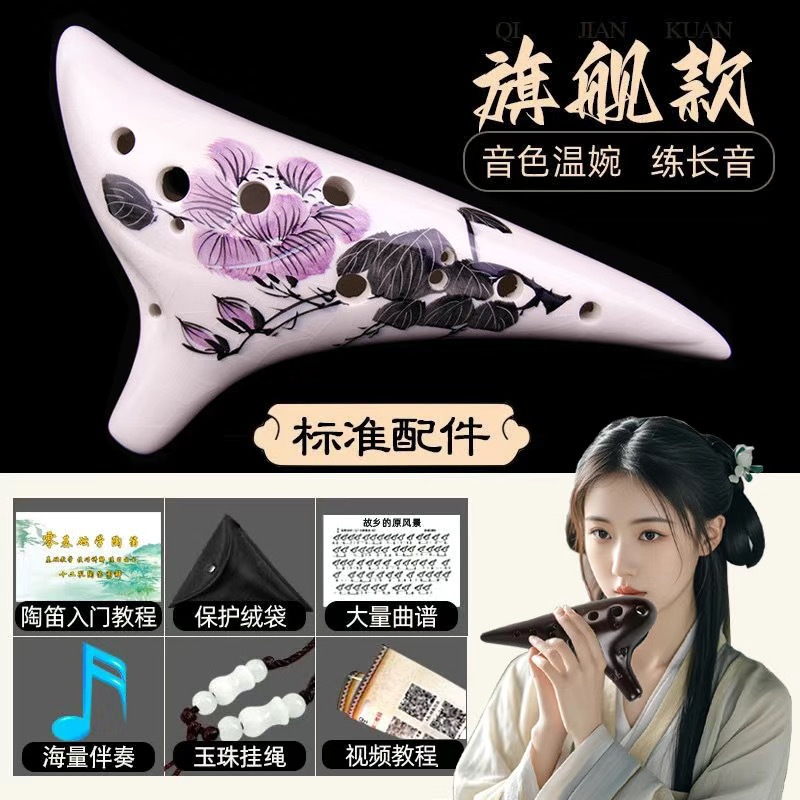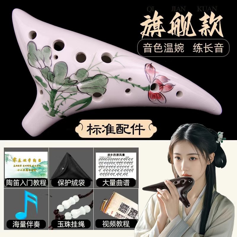 12孔陶笛C调AC调初学送教程教材校园学生推荐老师教学手绘熏烧