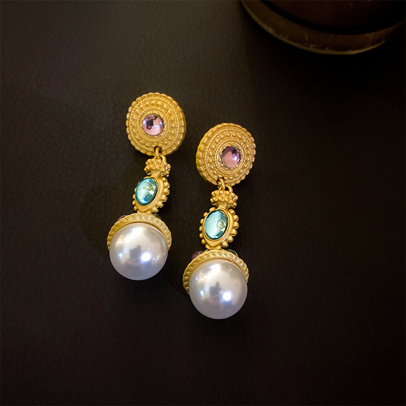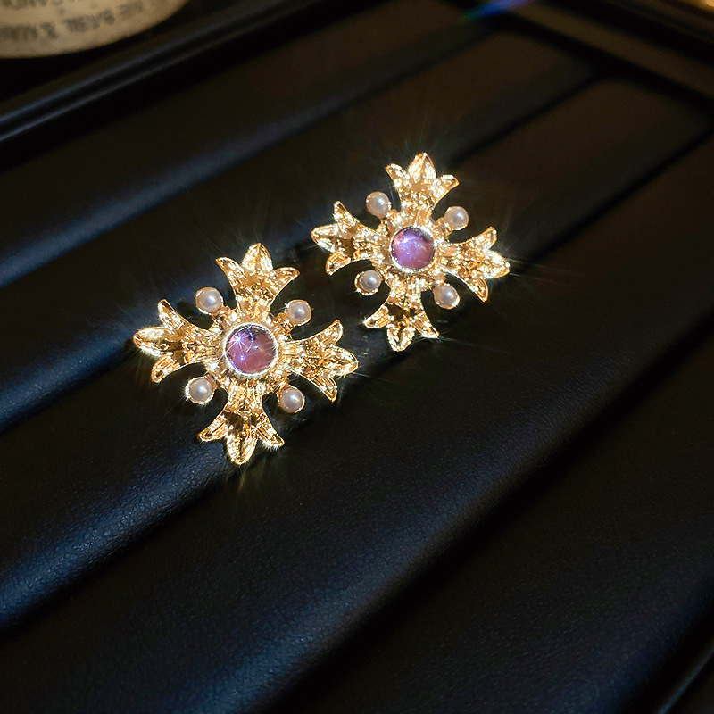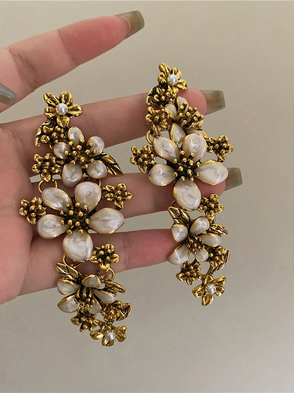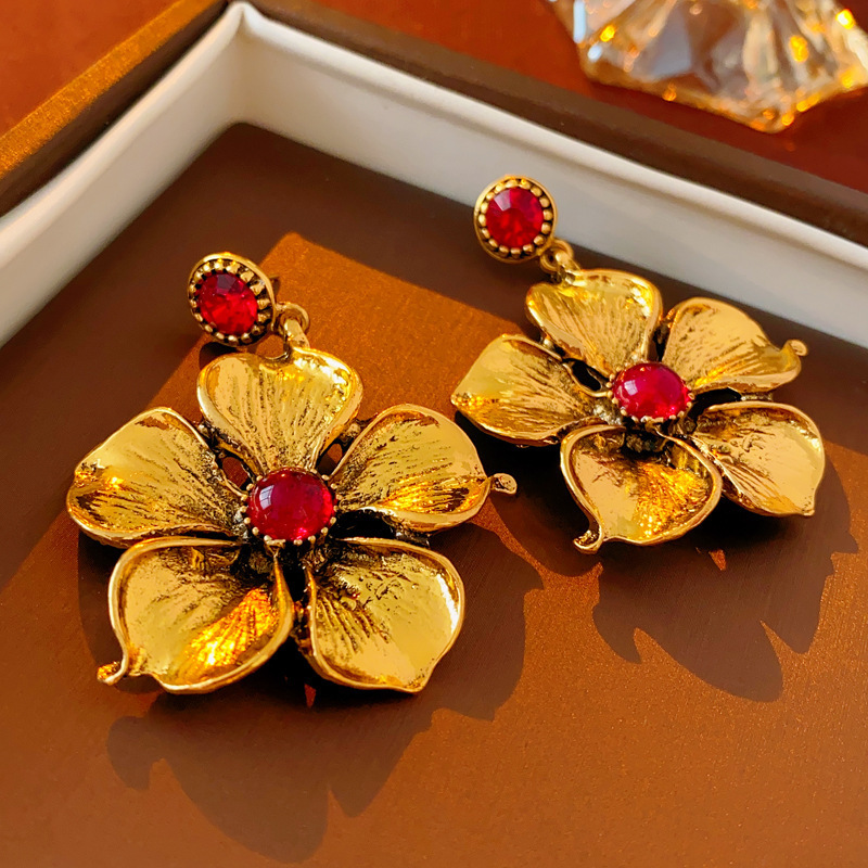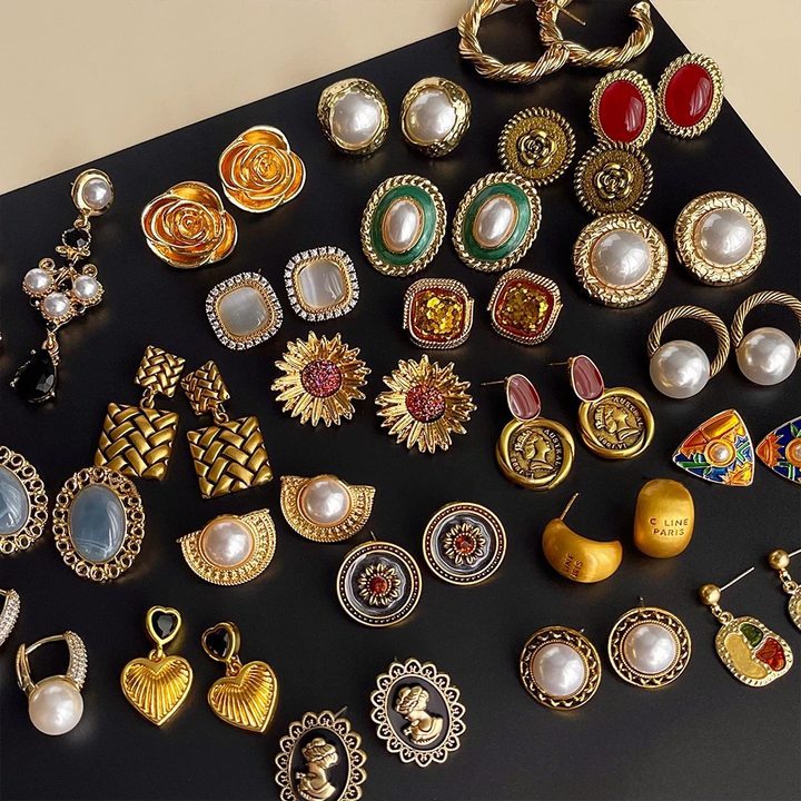 中古vintage饰品银针几何花朵气质耳环轻奢高级感复古耳饰批发女