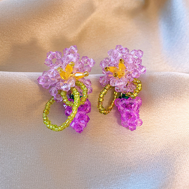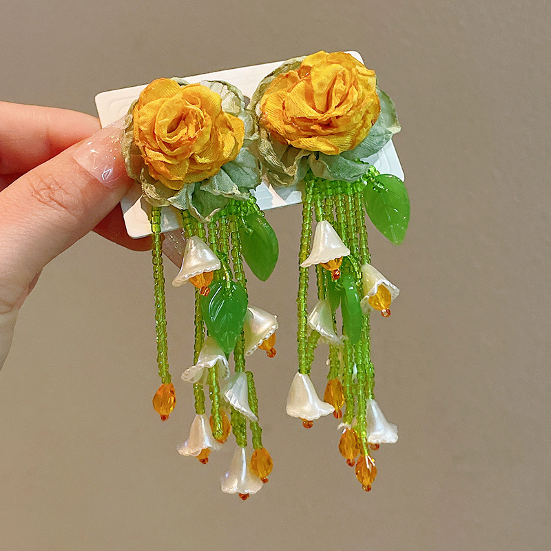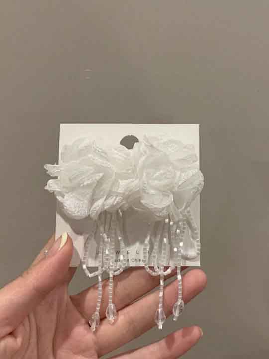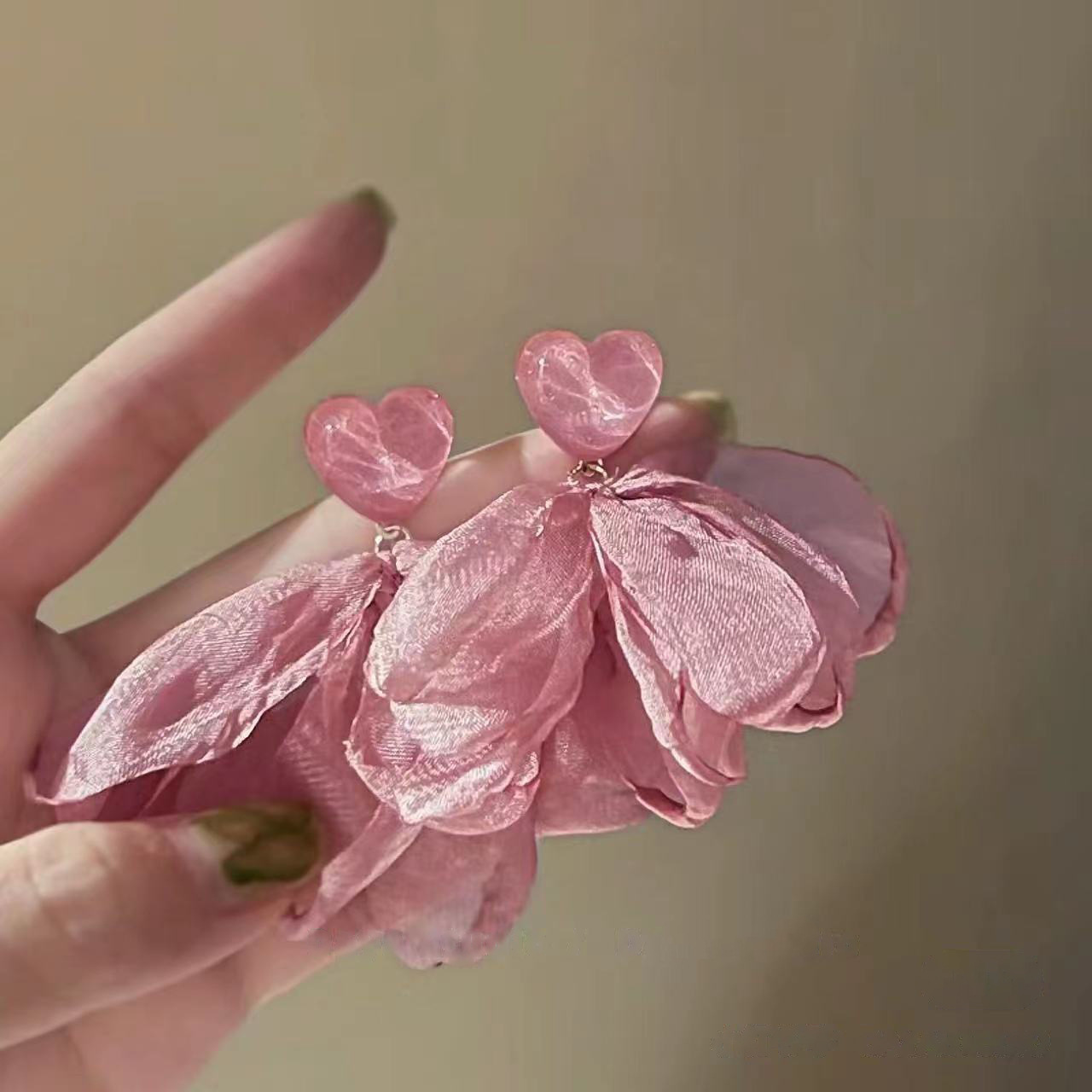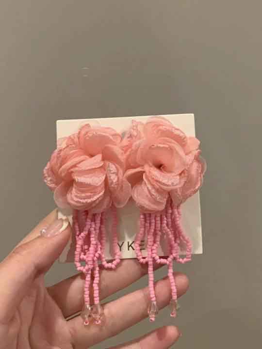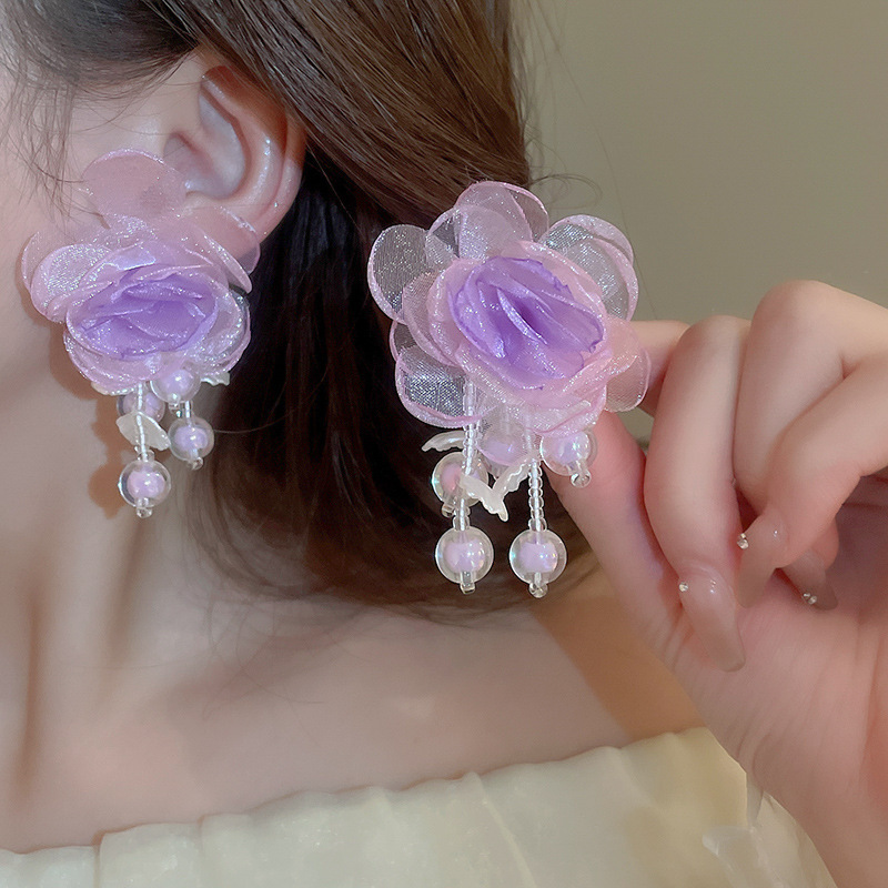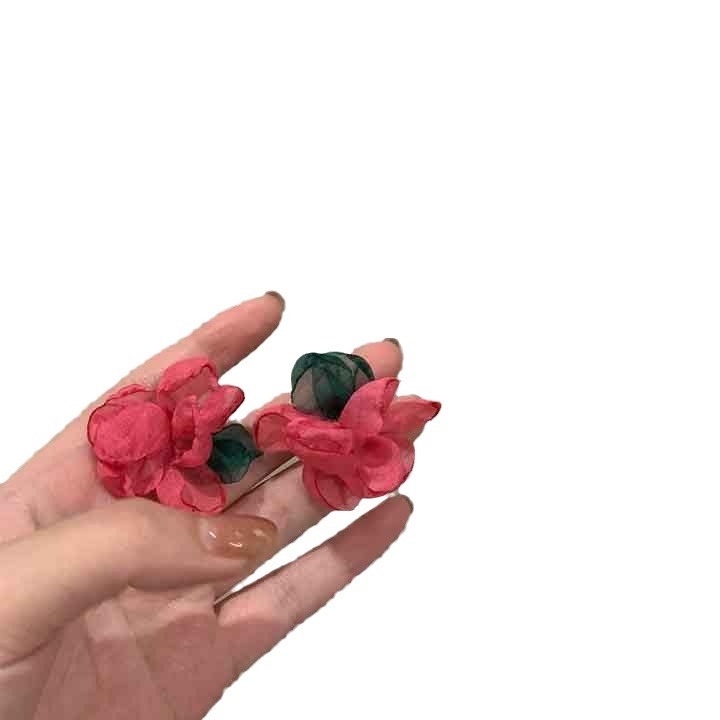 银针薄荷曼波网纱花朵耳环女森系小清新甜美耳钉春季新款耳饰批发