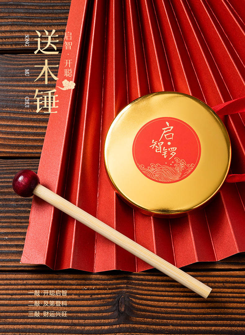 宝宝一周岁抓周仪式敲锣小锣敲锣鼓启智慧儿童小锣铜锣鼓启智金锣