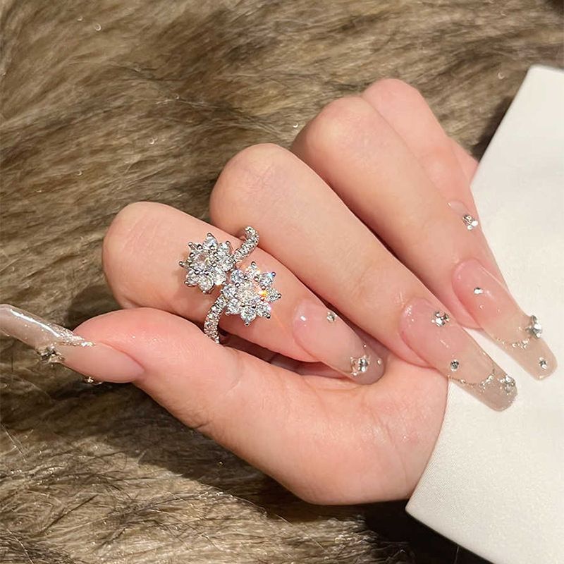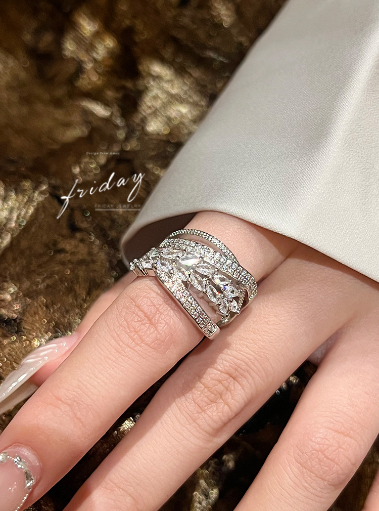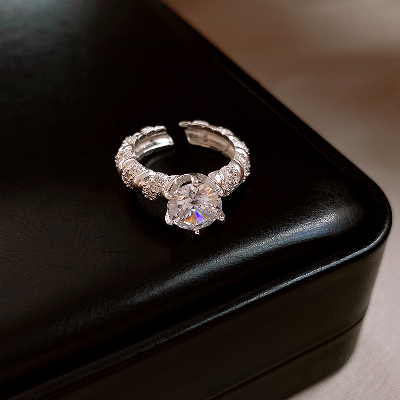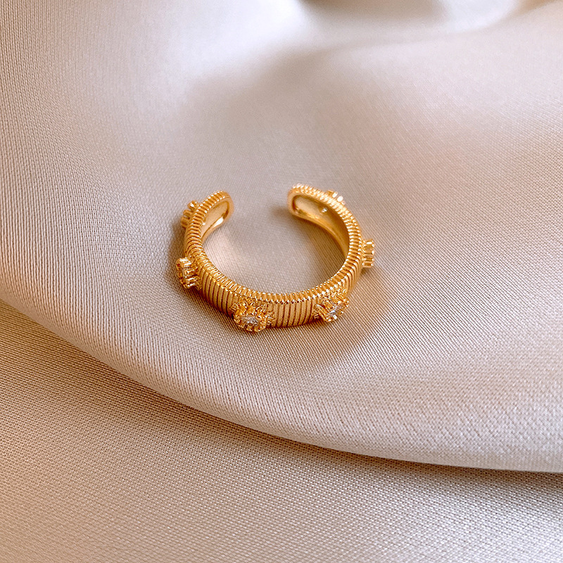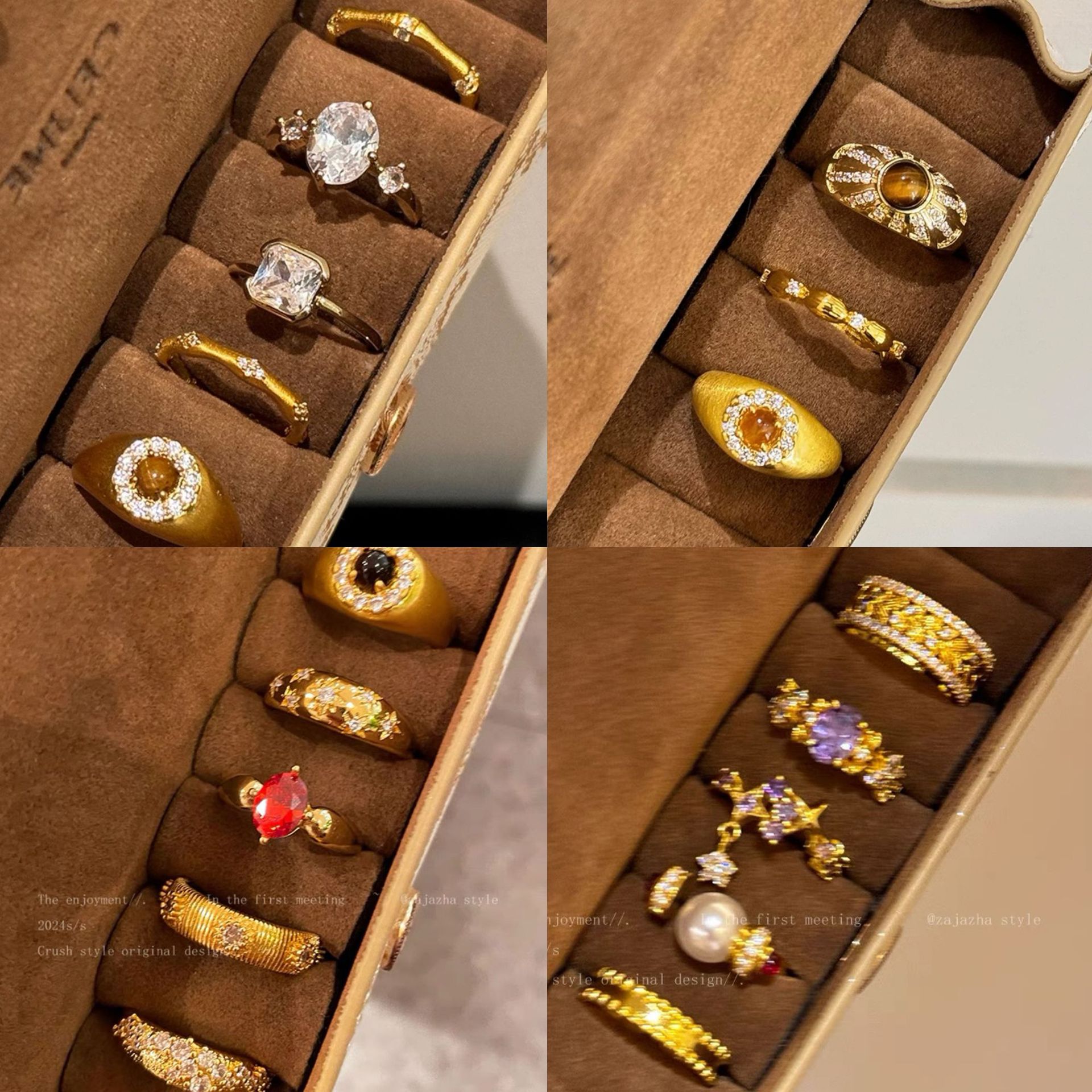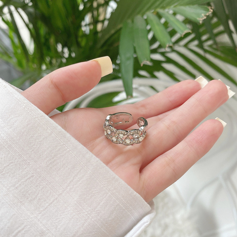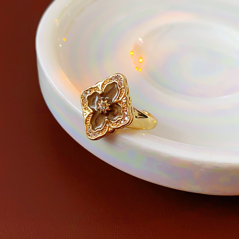中古vintage锆石花朵几何开口戒指轻奢宫廷风食指戒ins时尚手饰女