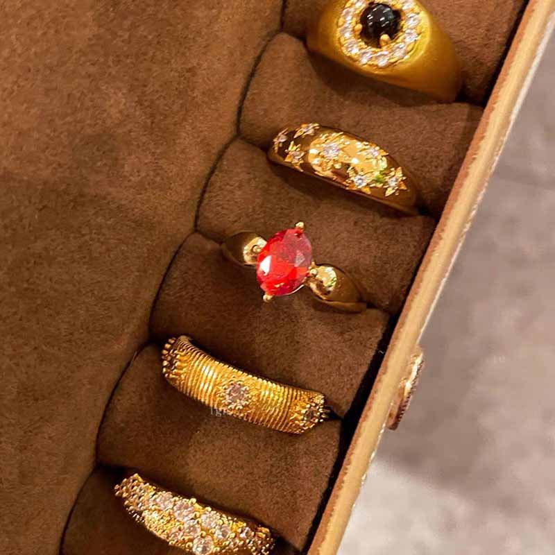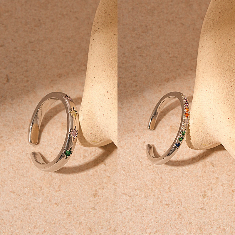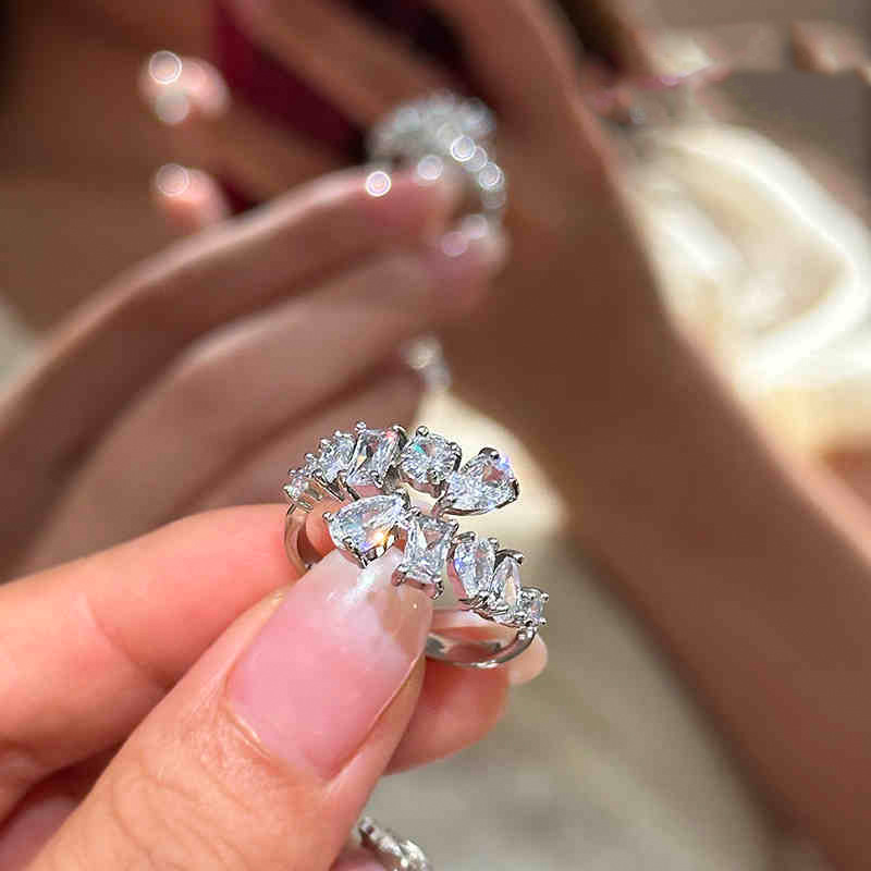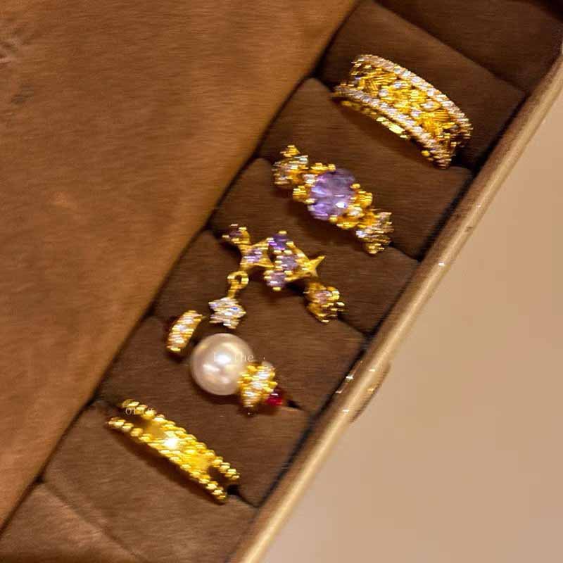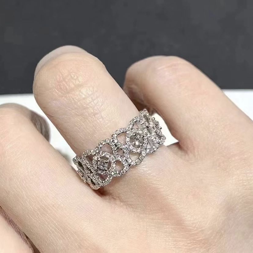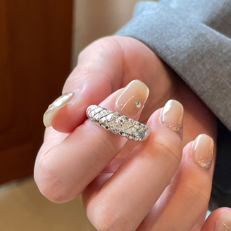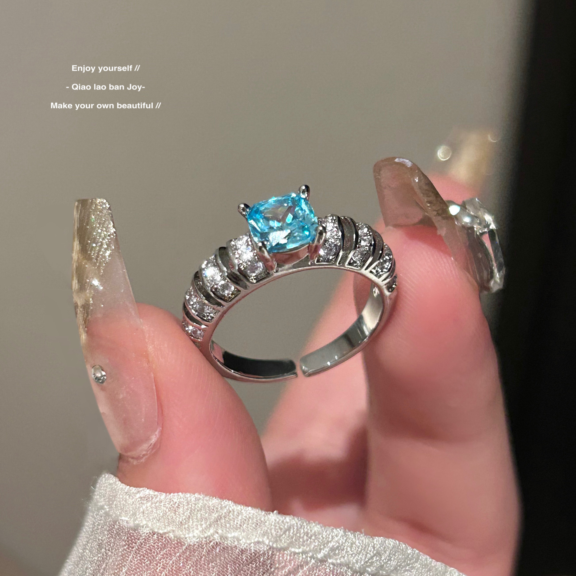 中古vintage锆石花朵几何开口戒指轻奢宫廷风食指戒ins时尚手饰女