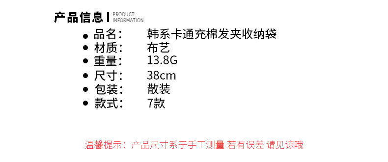 新款韩式卡通可爱收纳袋儿童发夹装饰挂带房间装饰物甜美布艺挂饰