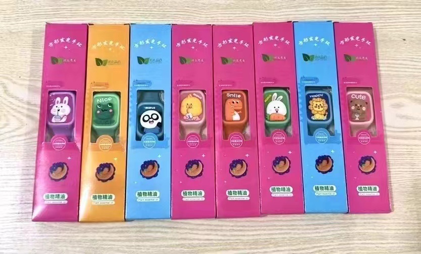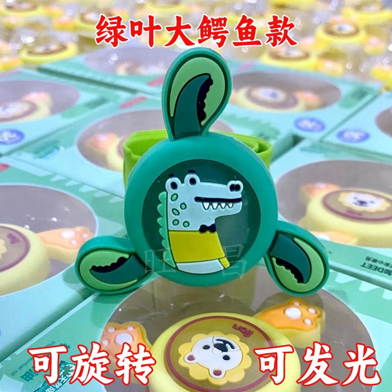 儿童卡通啪啪圈发光驱蚊手环闪光防蚊驱蚊手表旋转陀螺硅胶批发