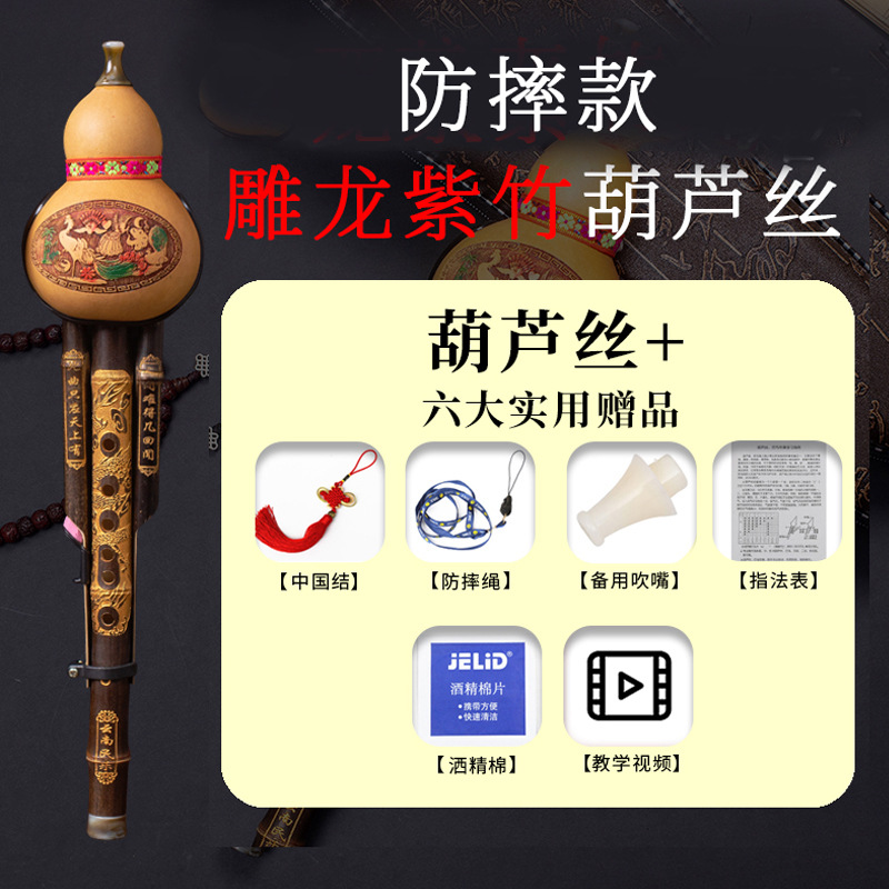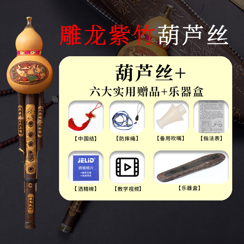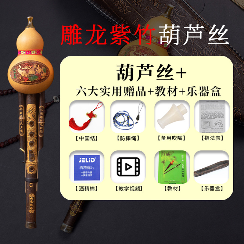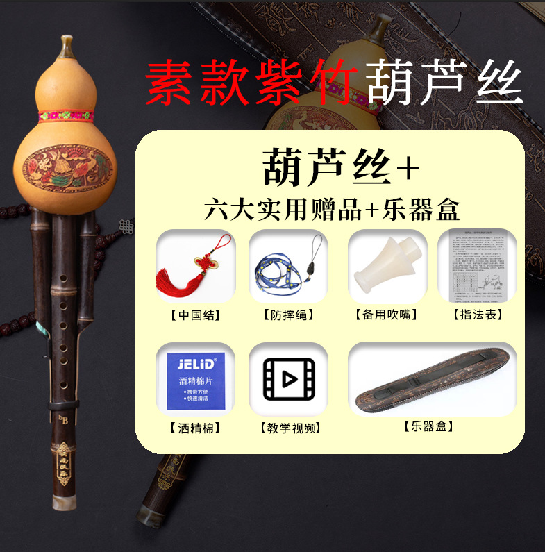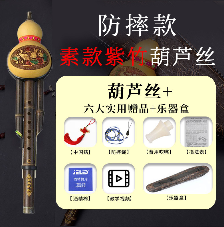 云南天然紫竹葫芦丝乐器降b调成人c调小学生零基础自学入门音准型