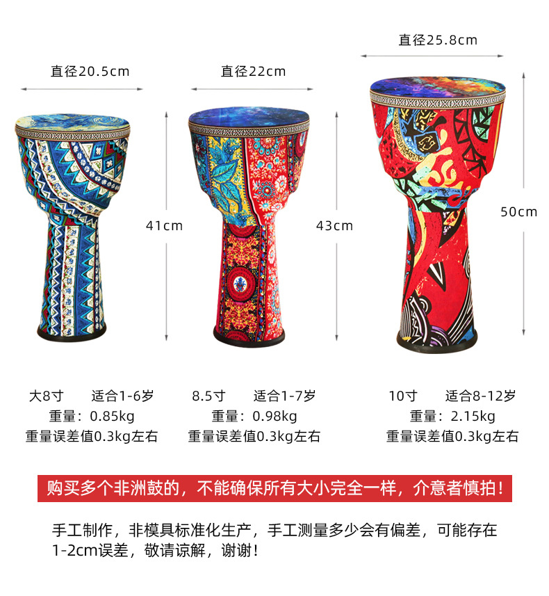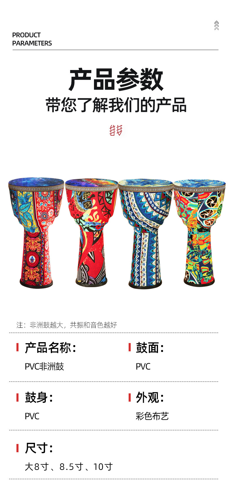 非洲鼓8寸10寸免调音PVC非洲鼓幼儿园初学成人儿童学校小学生手鼓