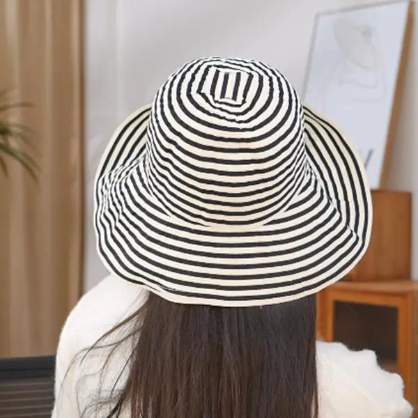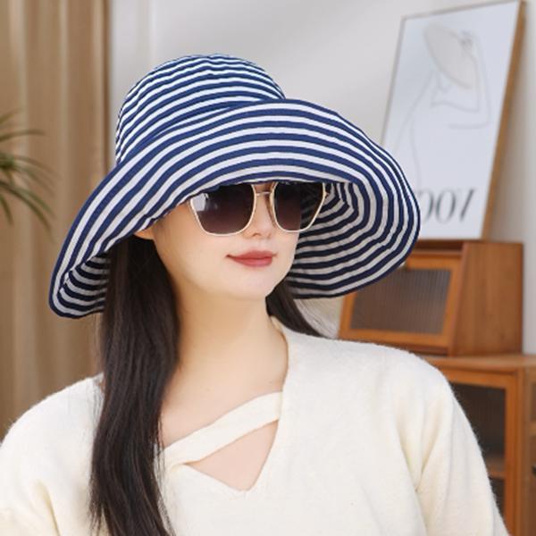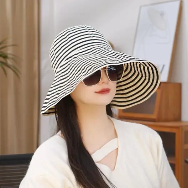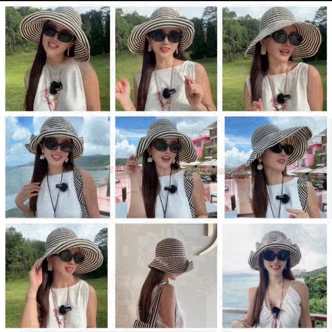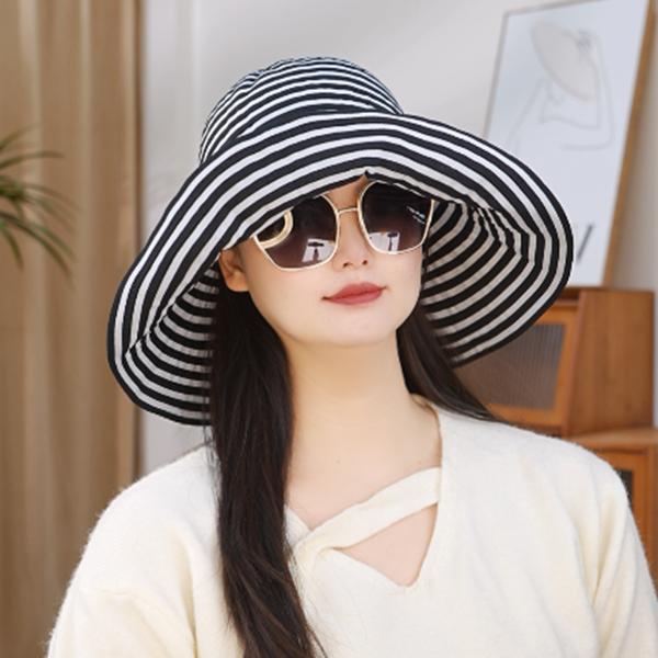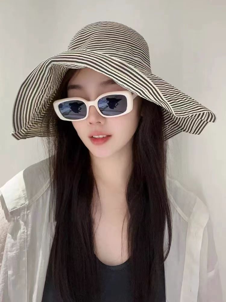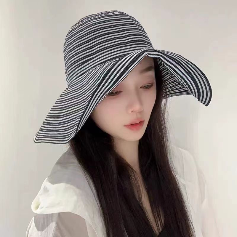 韩版夏季户外出游时尚百搭条纹大帽檐帽子渔夫帽女ins可卷遮阳帽