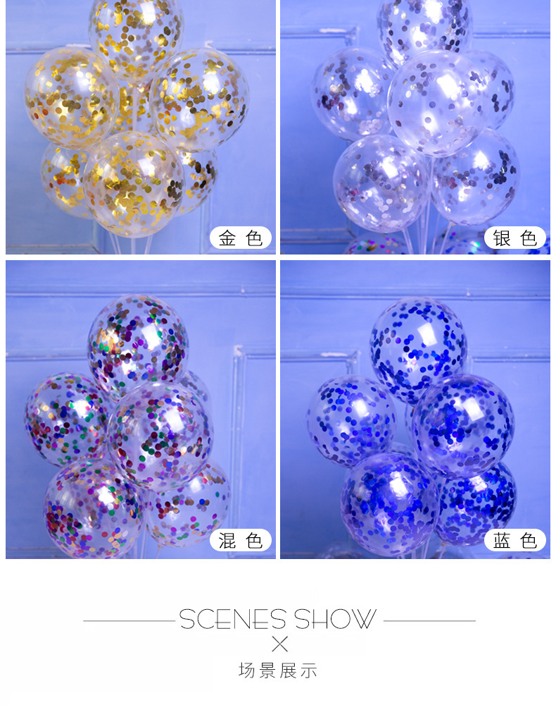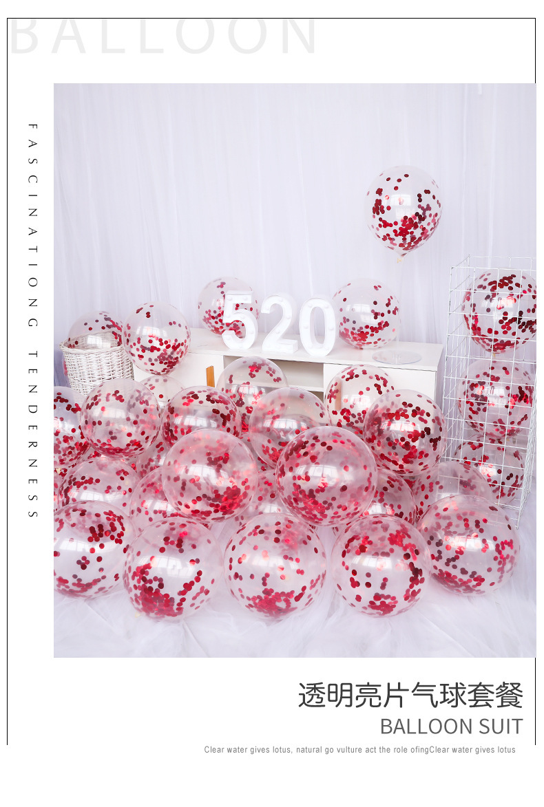 12寸透明亮片派对气球 套装网红生日派对用品纸屑气球套装