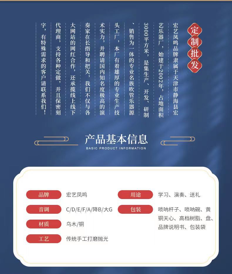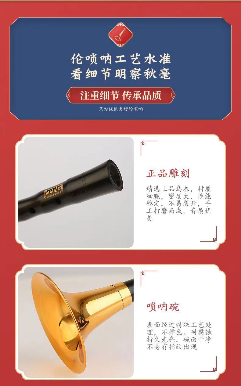演奏乌木黑檀木红木唢呐乐器全套初学者专业入门d调喇叭D调民族