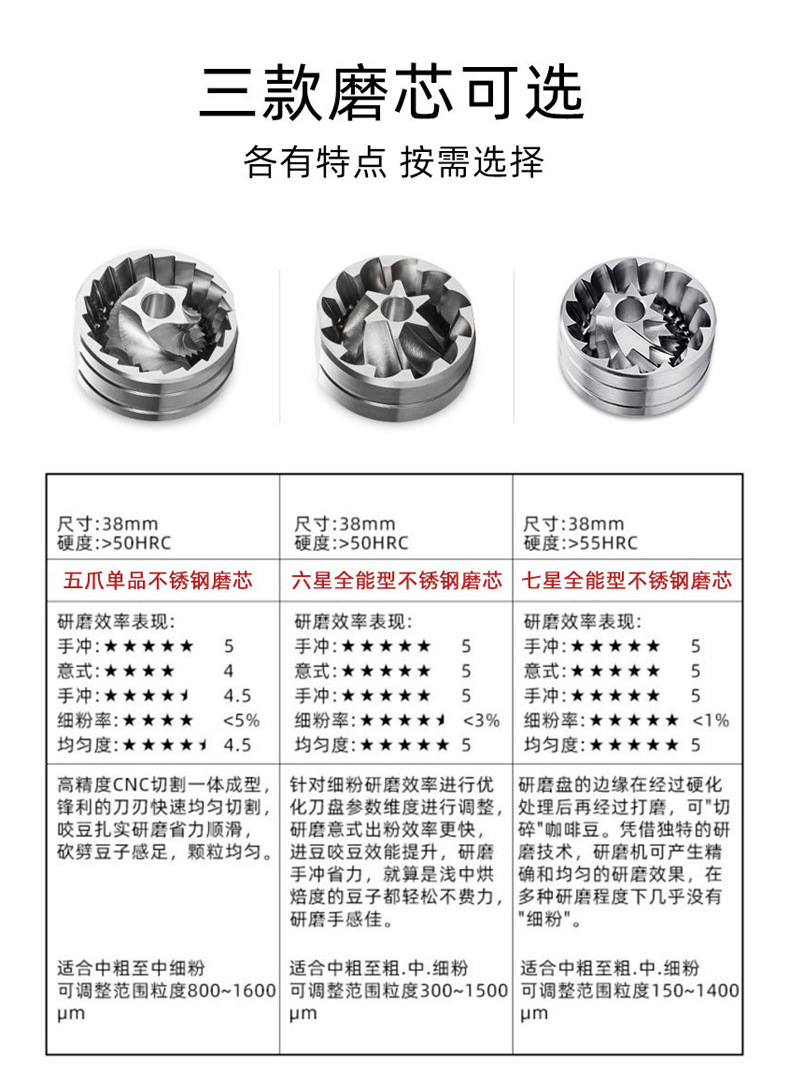 手摇咖啡机 便携咖啡磨豆机 外贸研磨器5星6星7星420不锈钢芯手磨