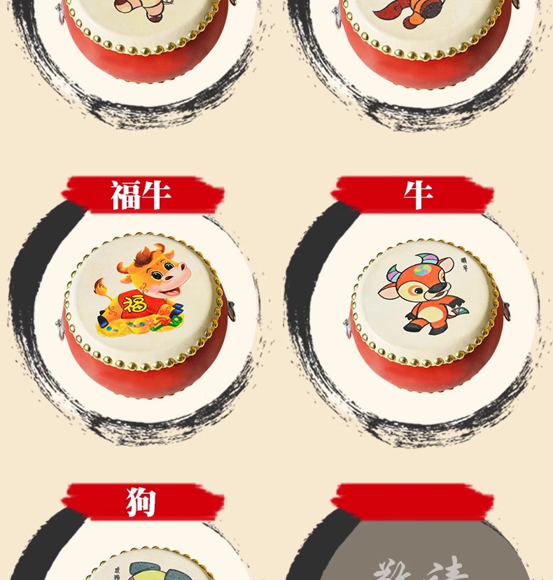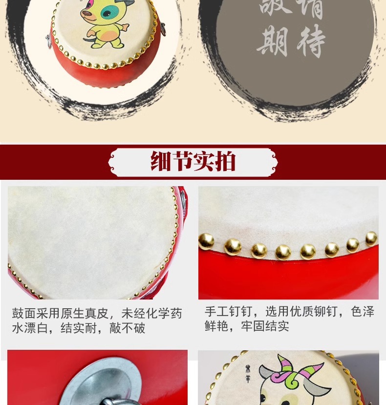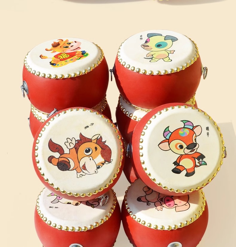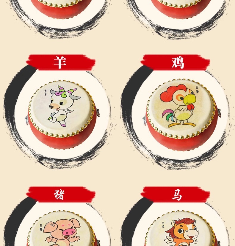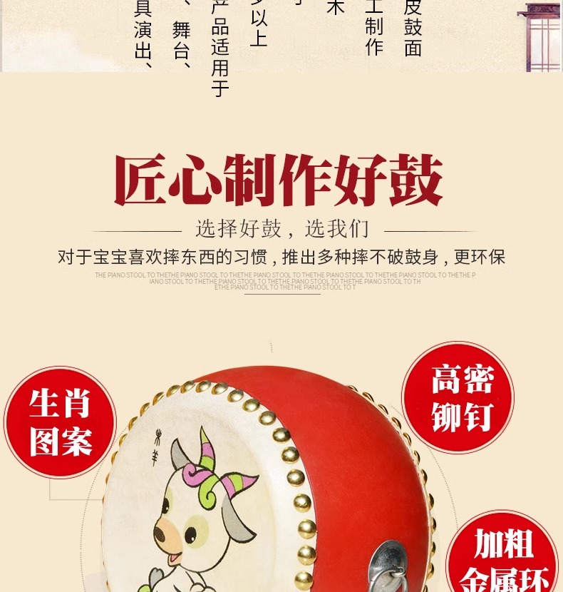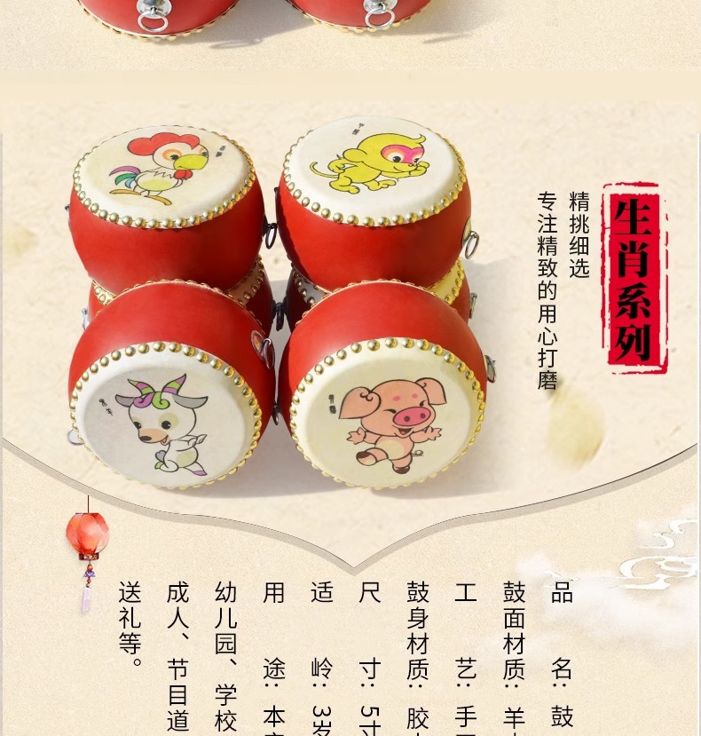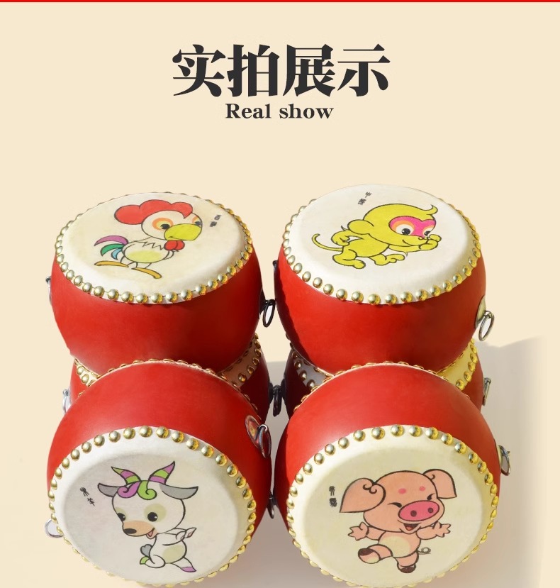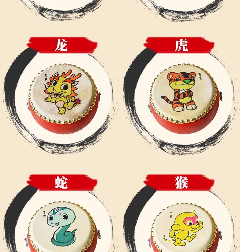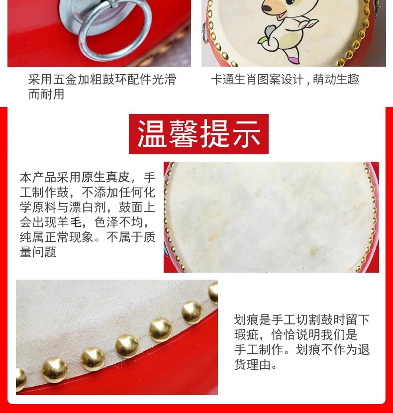 牛皮鼓儿童玩具小鼓打锣鼓腰乐器手拍敲打鼓宝宝婴儿堂鼓架子生肖