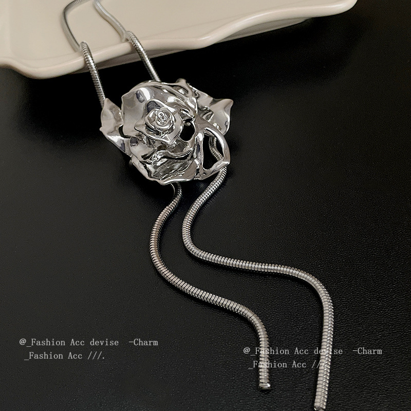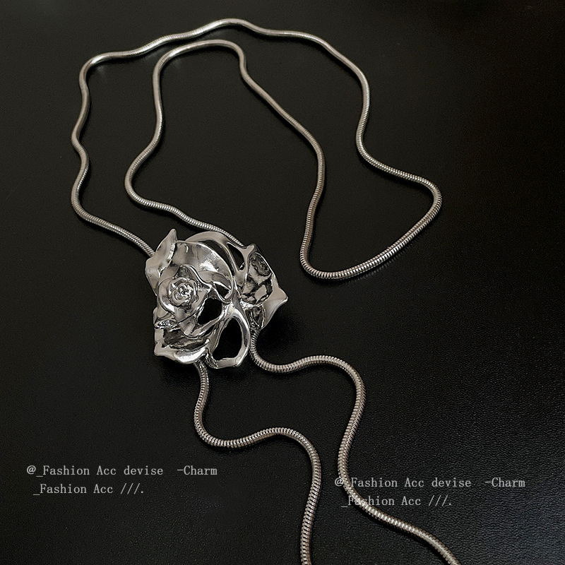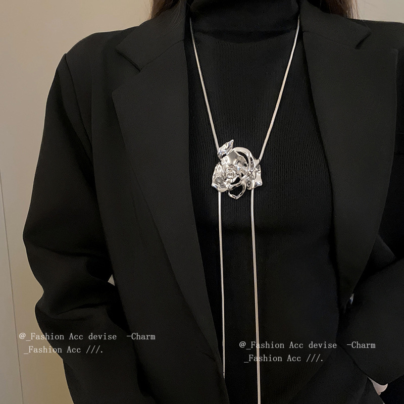 花朵蛇骨链长款项链小众简约冷淡风毛衣链个性时尚百搭饰品批发女