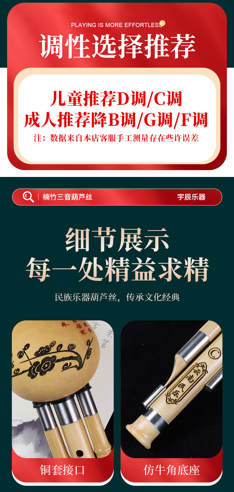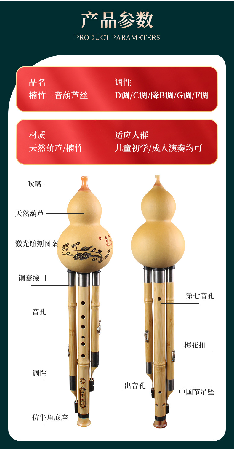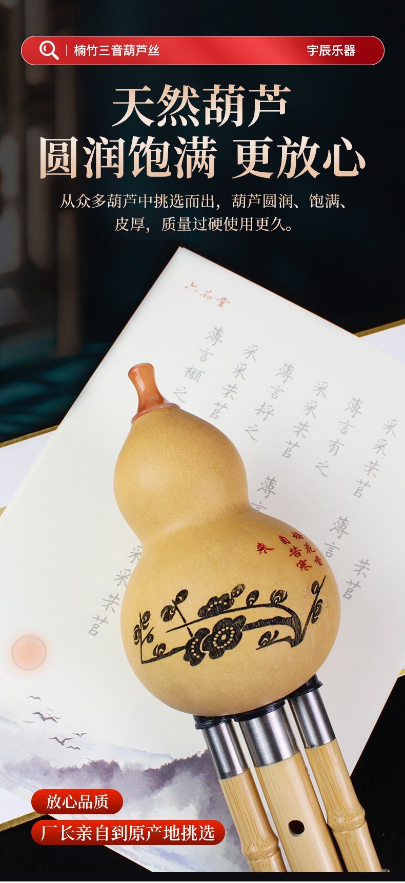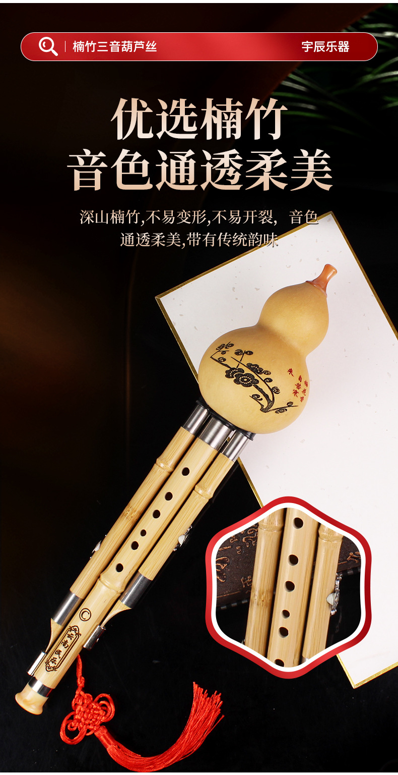 金丝楠竹三音葫芦丝C调降B调成人G调初学者小学生儿童演奏型乐器