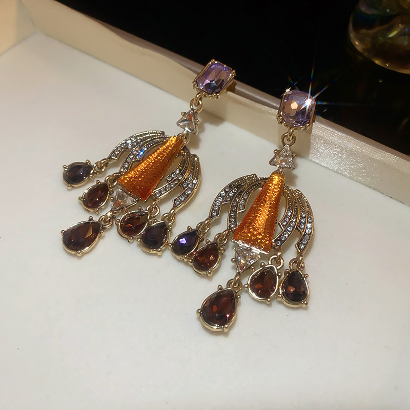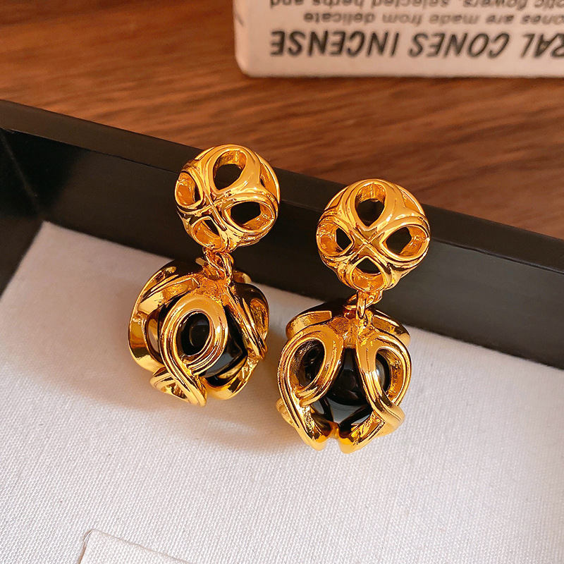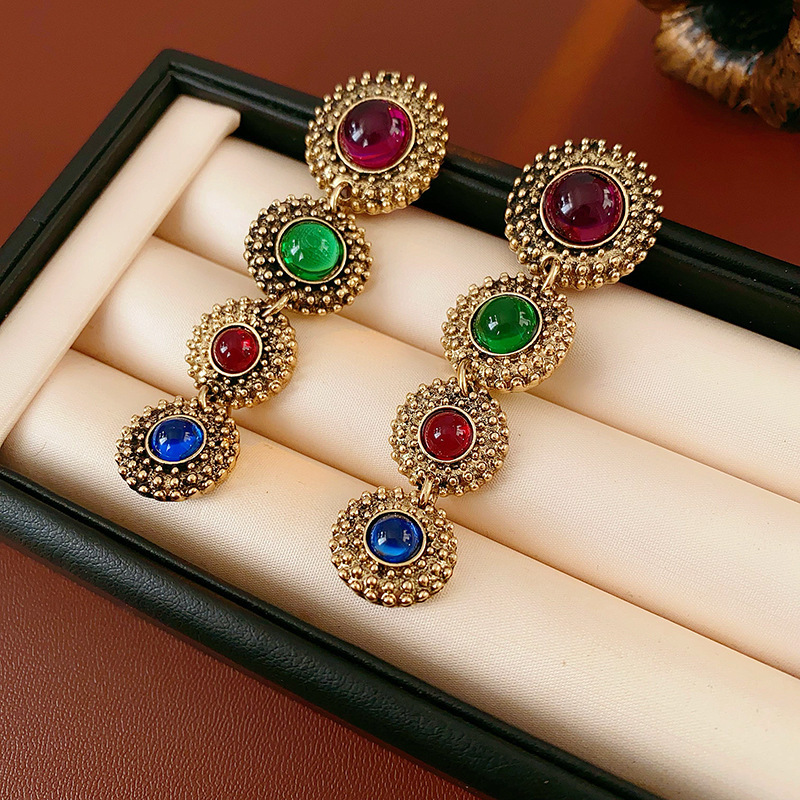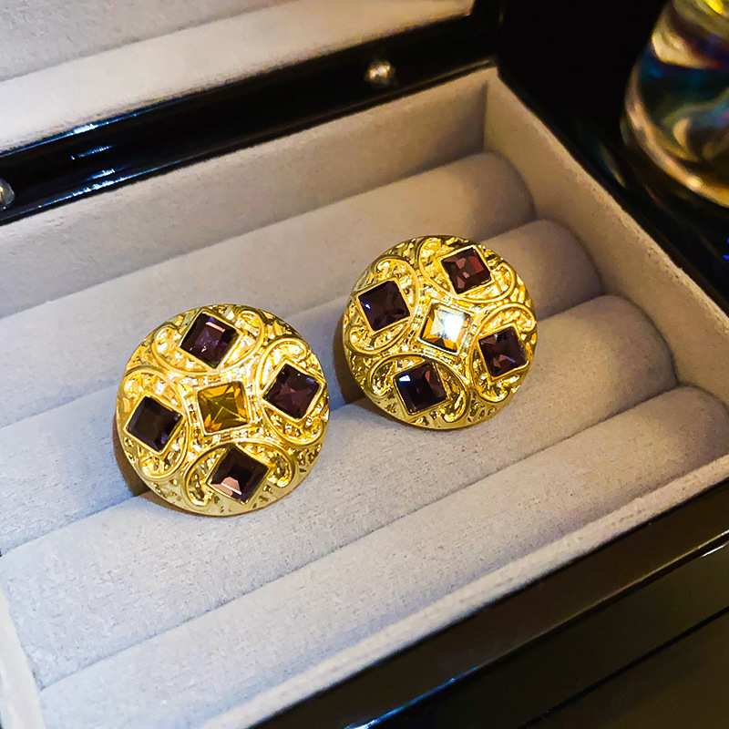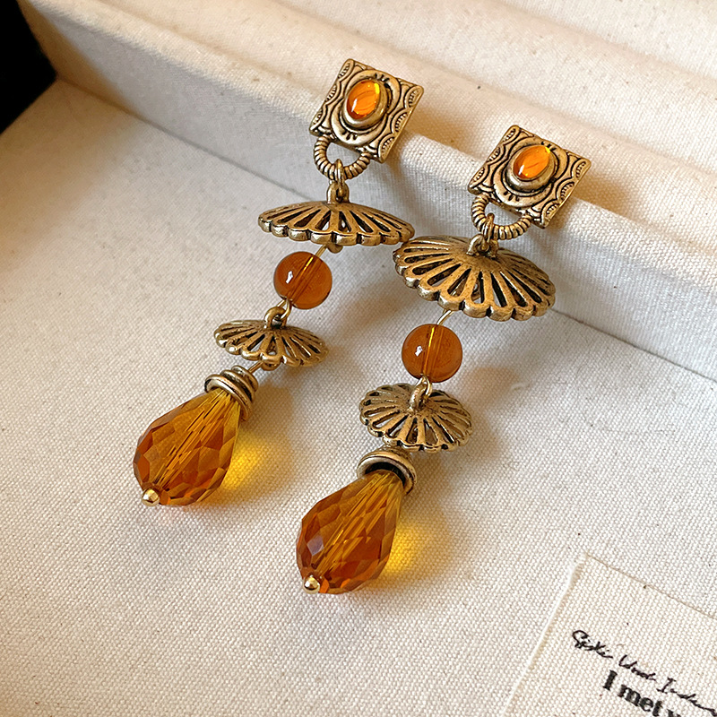 中古Vintage银针几何菱形耳环宫廷风时尚设计耳坠复古通勤饰品女