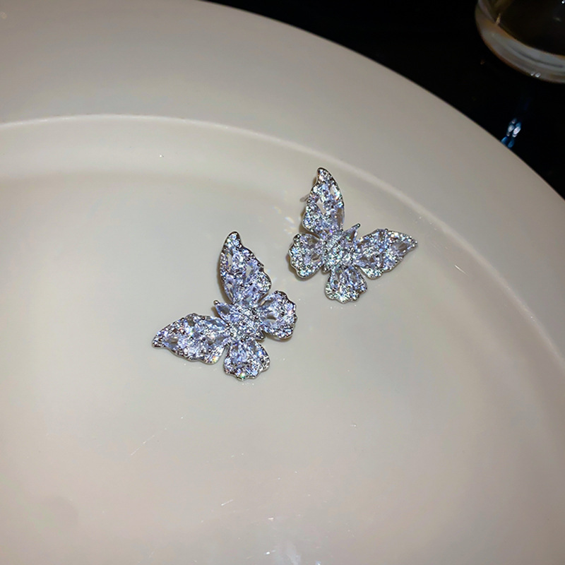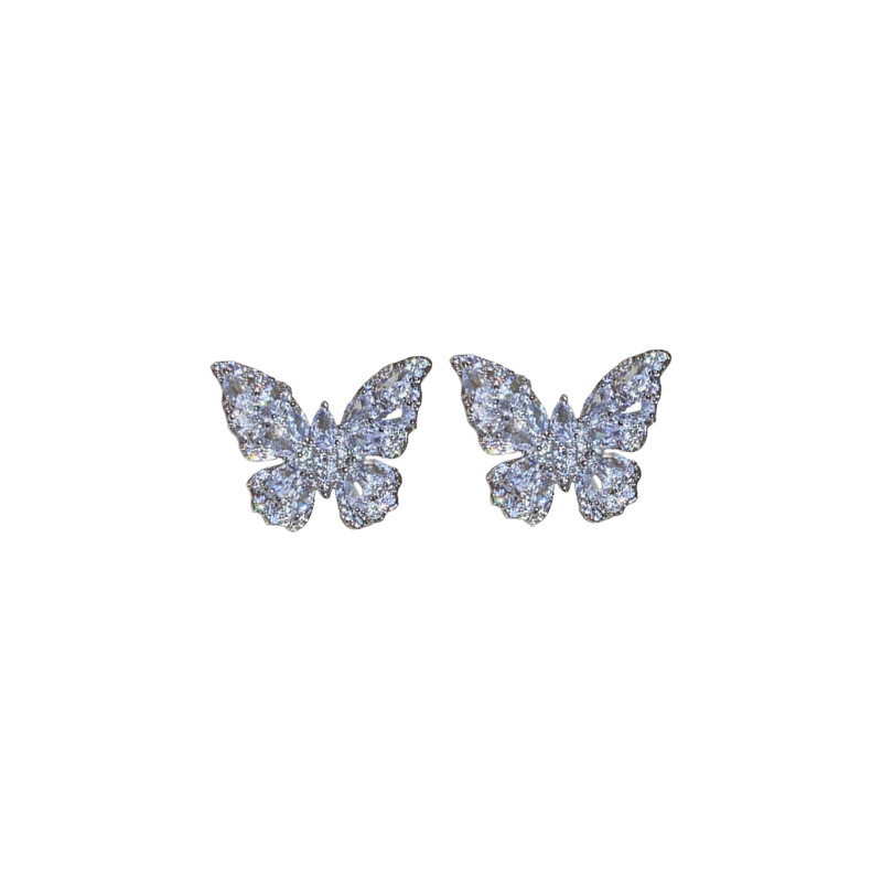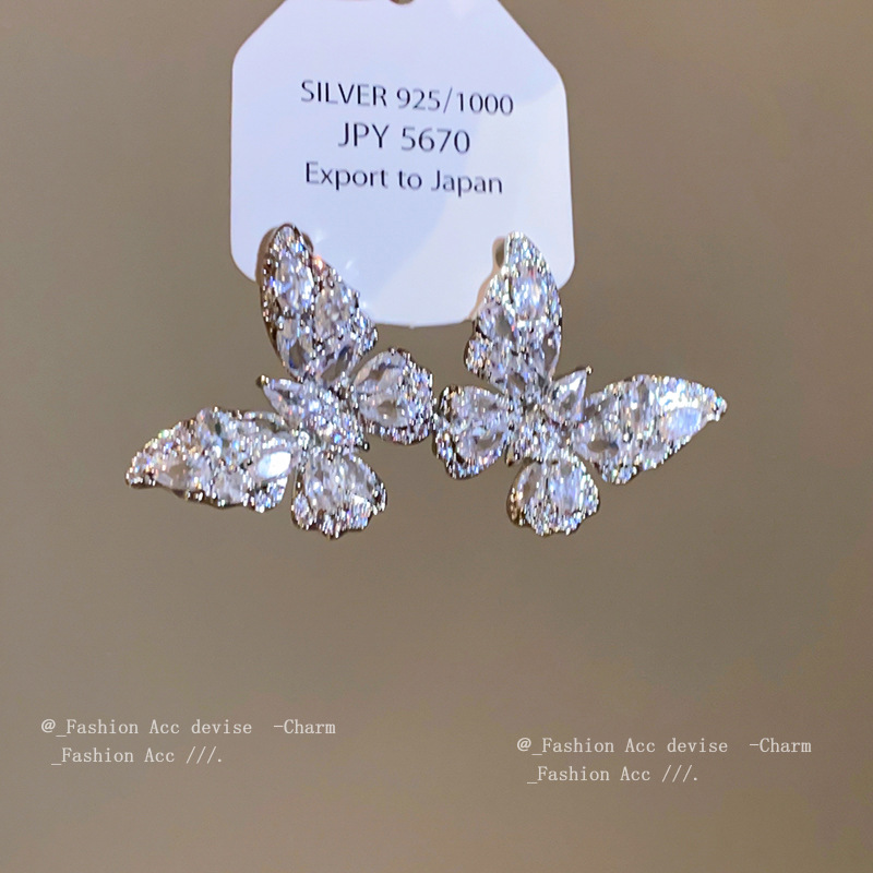 银针镶钻锆石蝴蝶耳环小众设计感气质耳钉超闪冷淡风少女耳饰批发