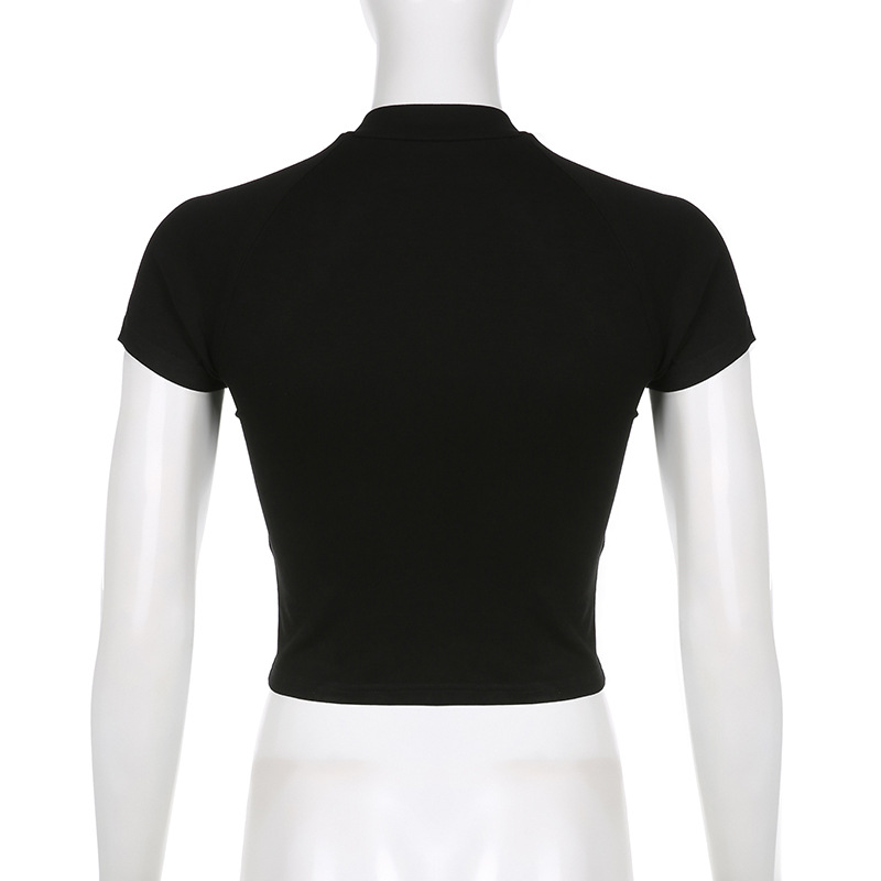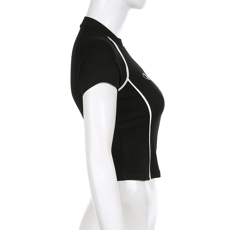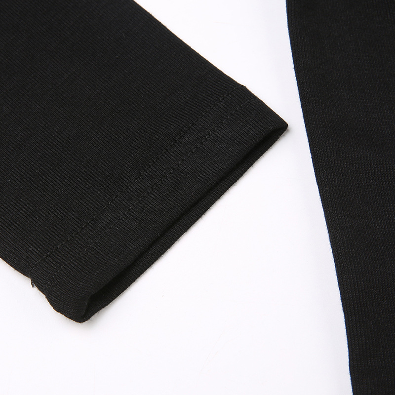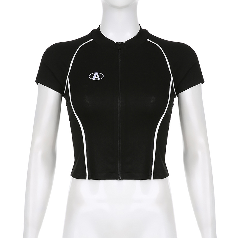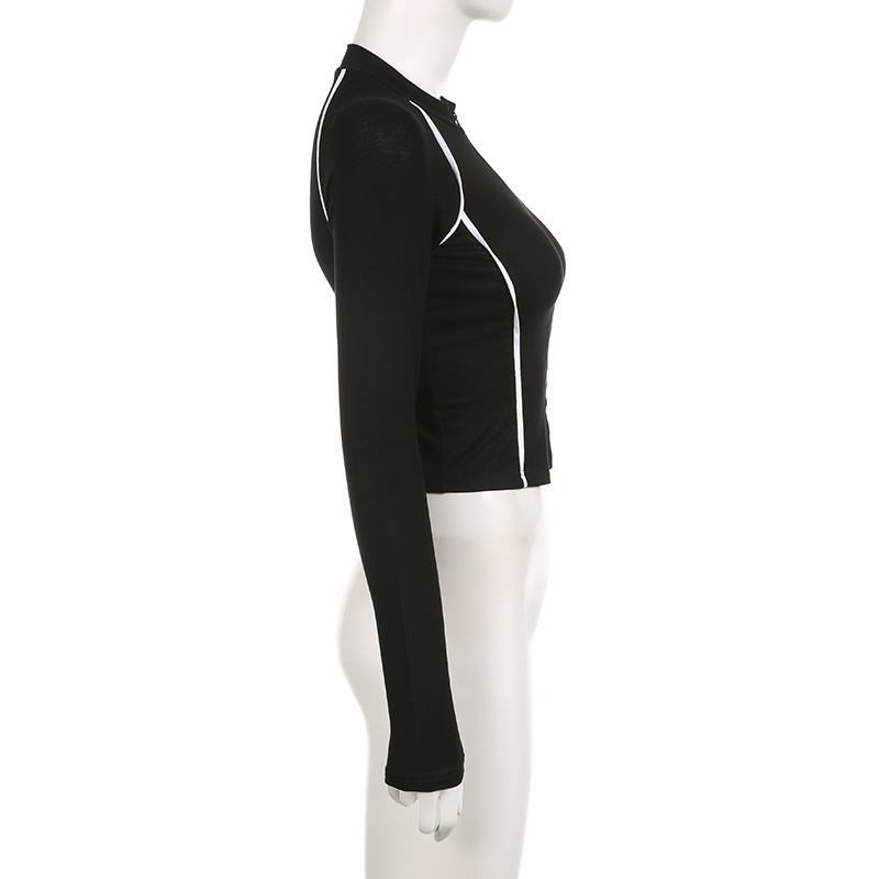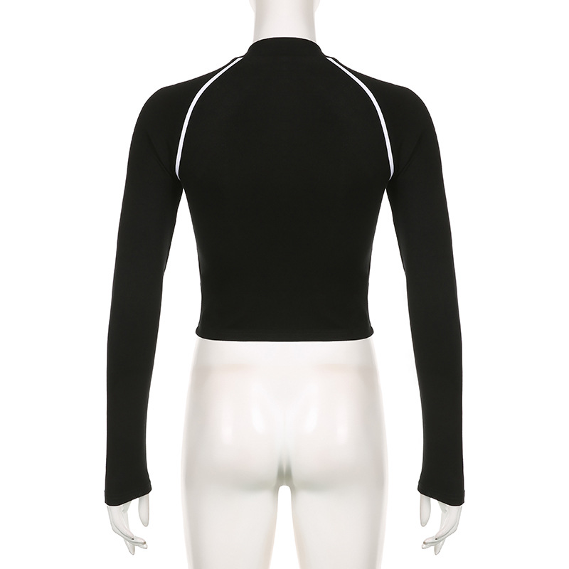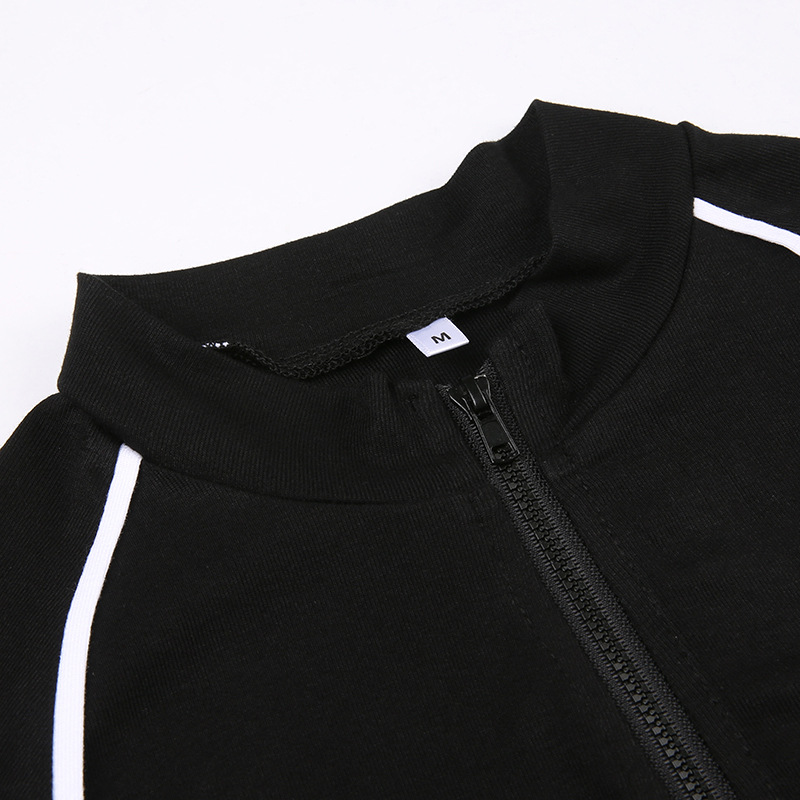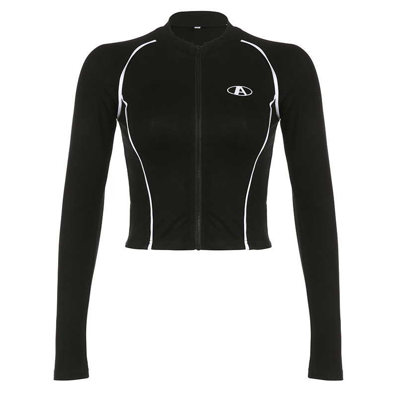 街头机车风出芽条拼色拉链露脐上衣辣妹字母印花修身长袖夹克外套