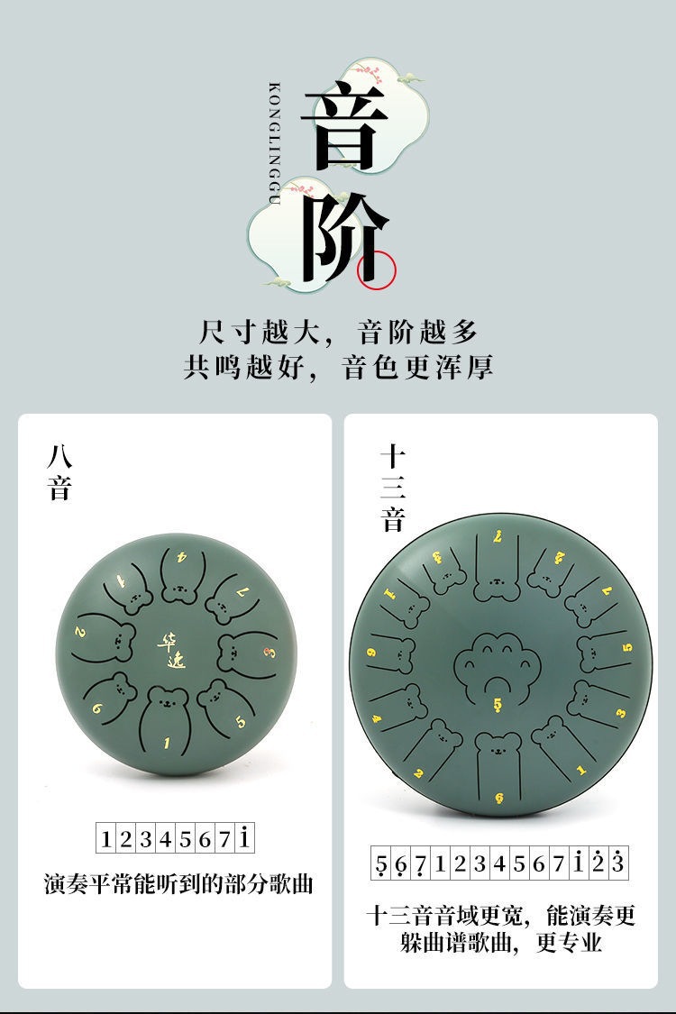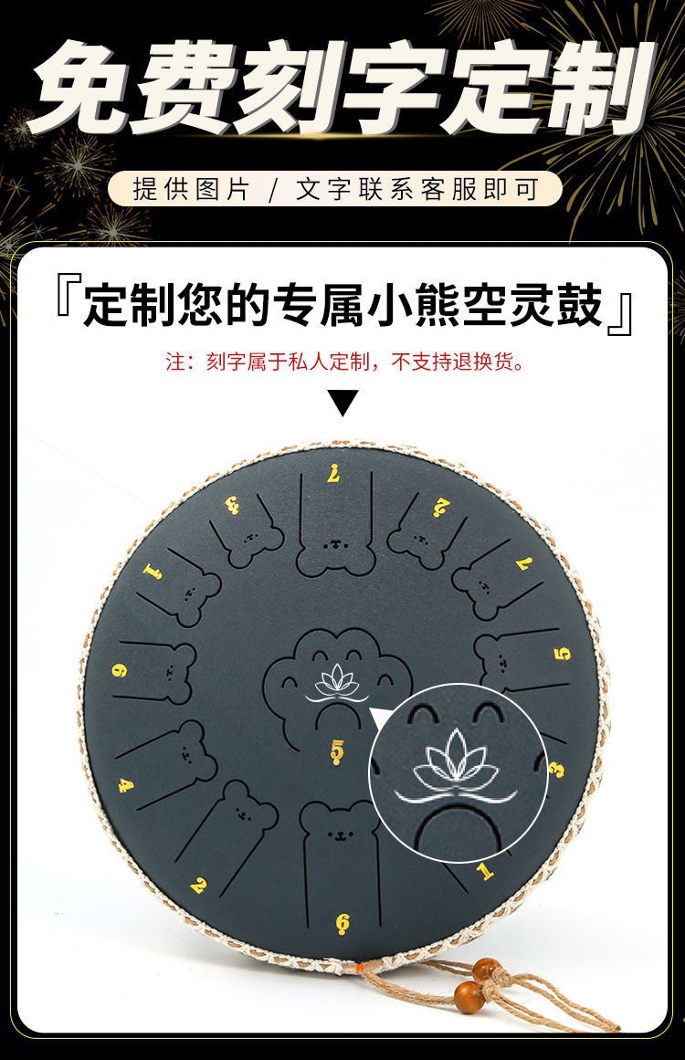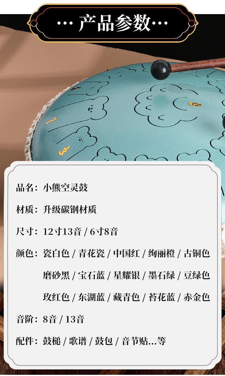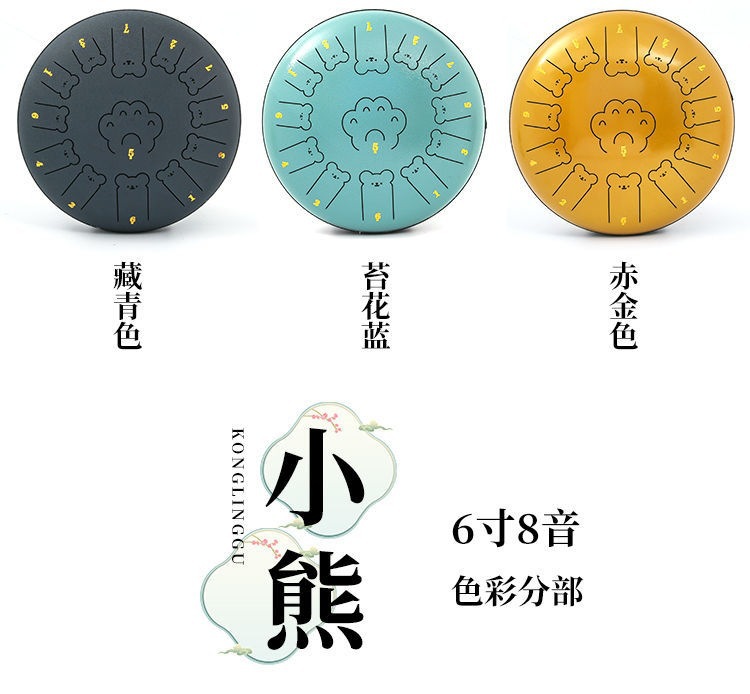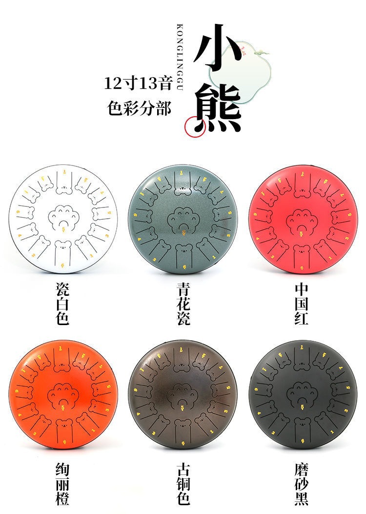 小熊空灵鼓乐器初学者6寸8音入门13寸13音专业级儿童玩具手敲手碟