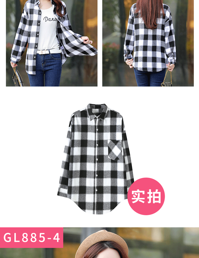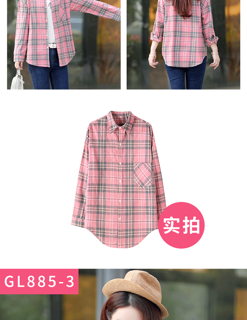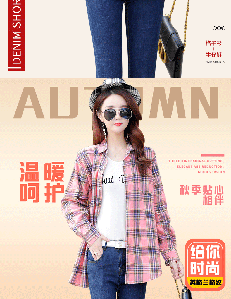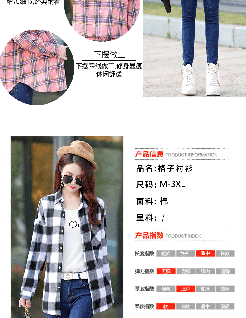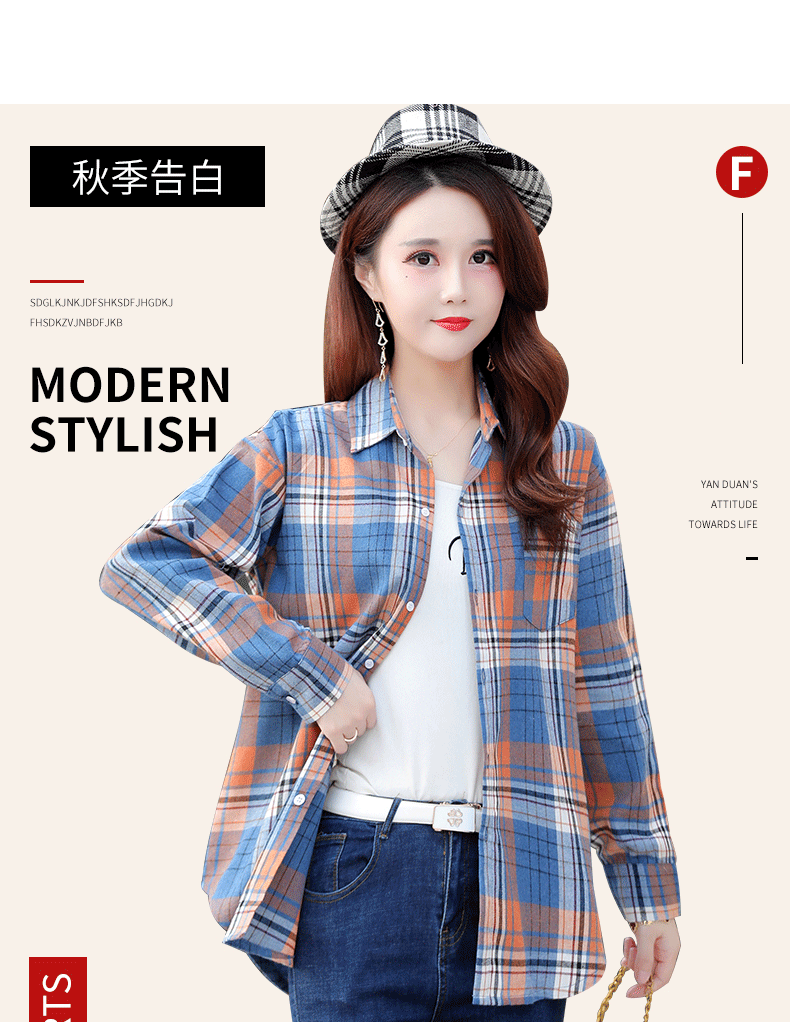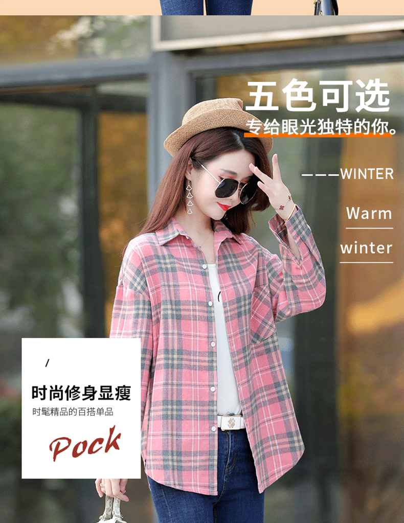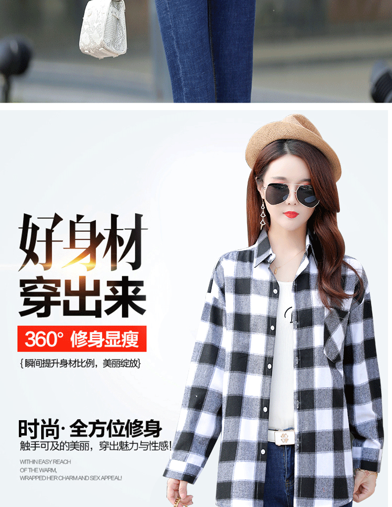 女士韩版修身衬衣春季新款时尚百搭潮流大码女装格子衬衫女装外套