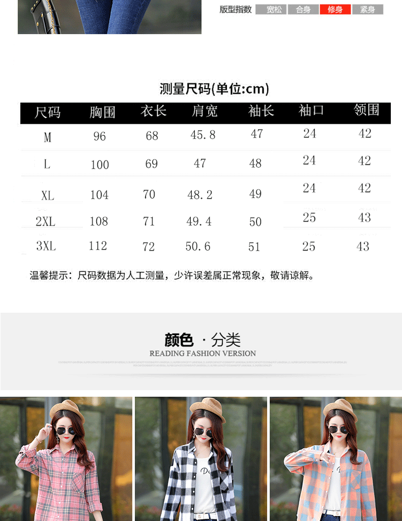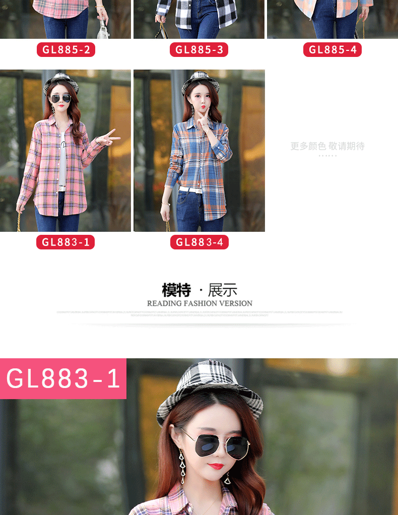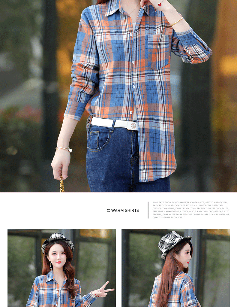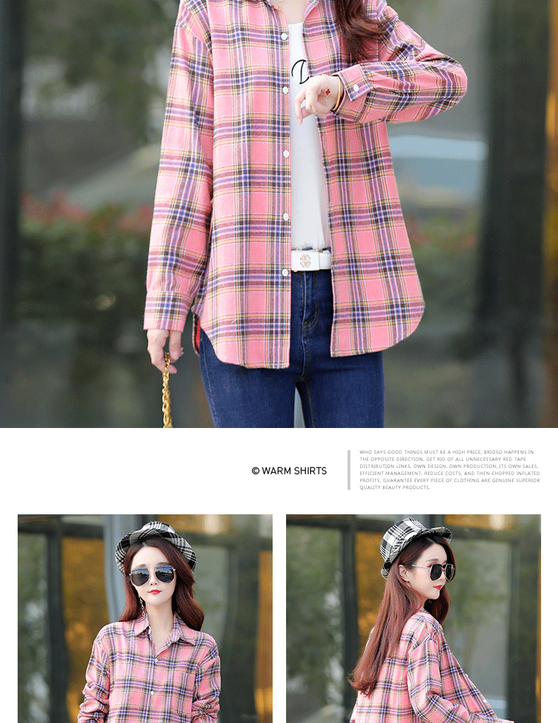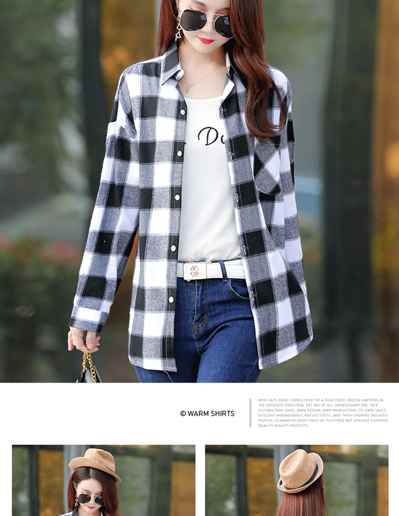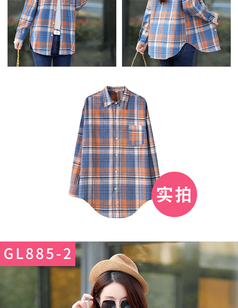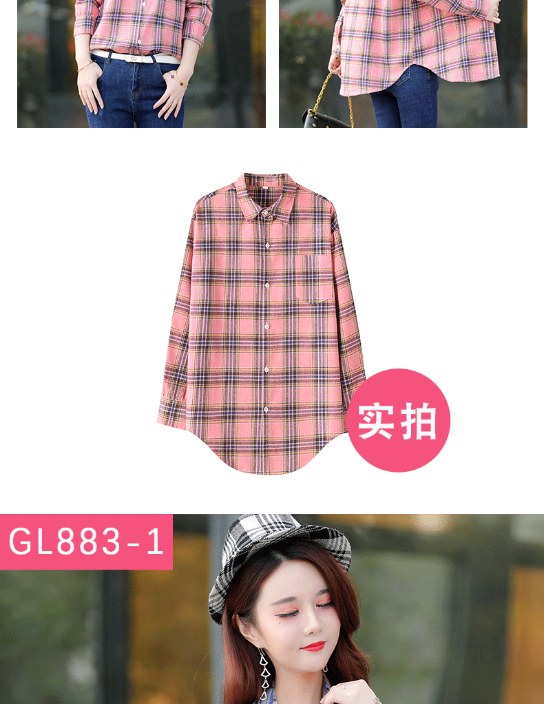 女士韩版修身衬衣春季新款时尚百搭潮流大码女装格子衬衫女装外套