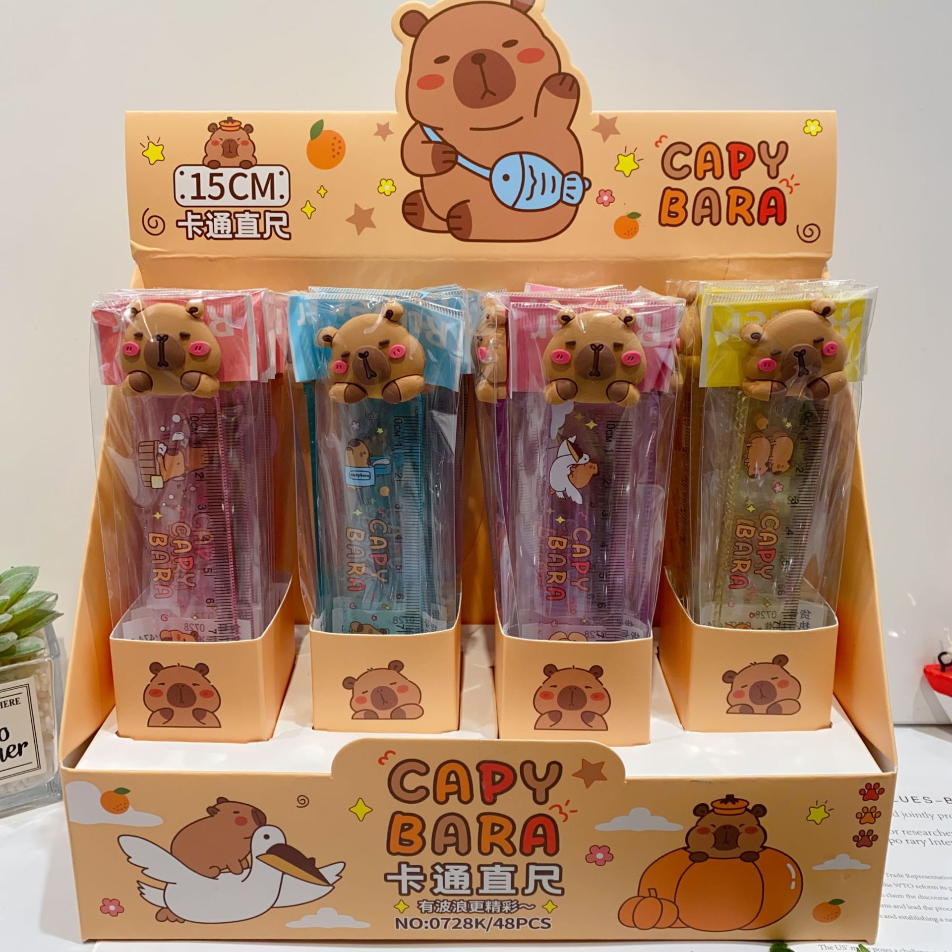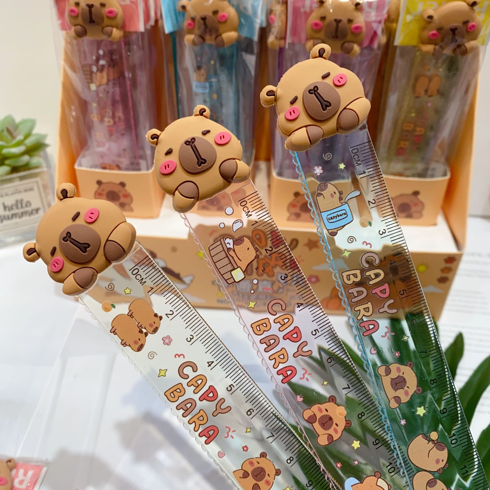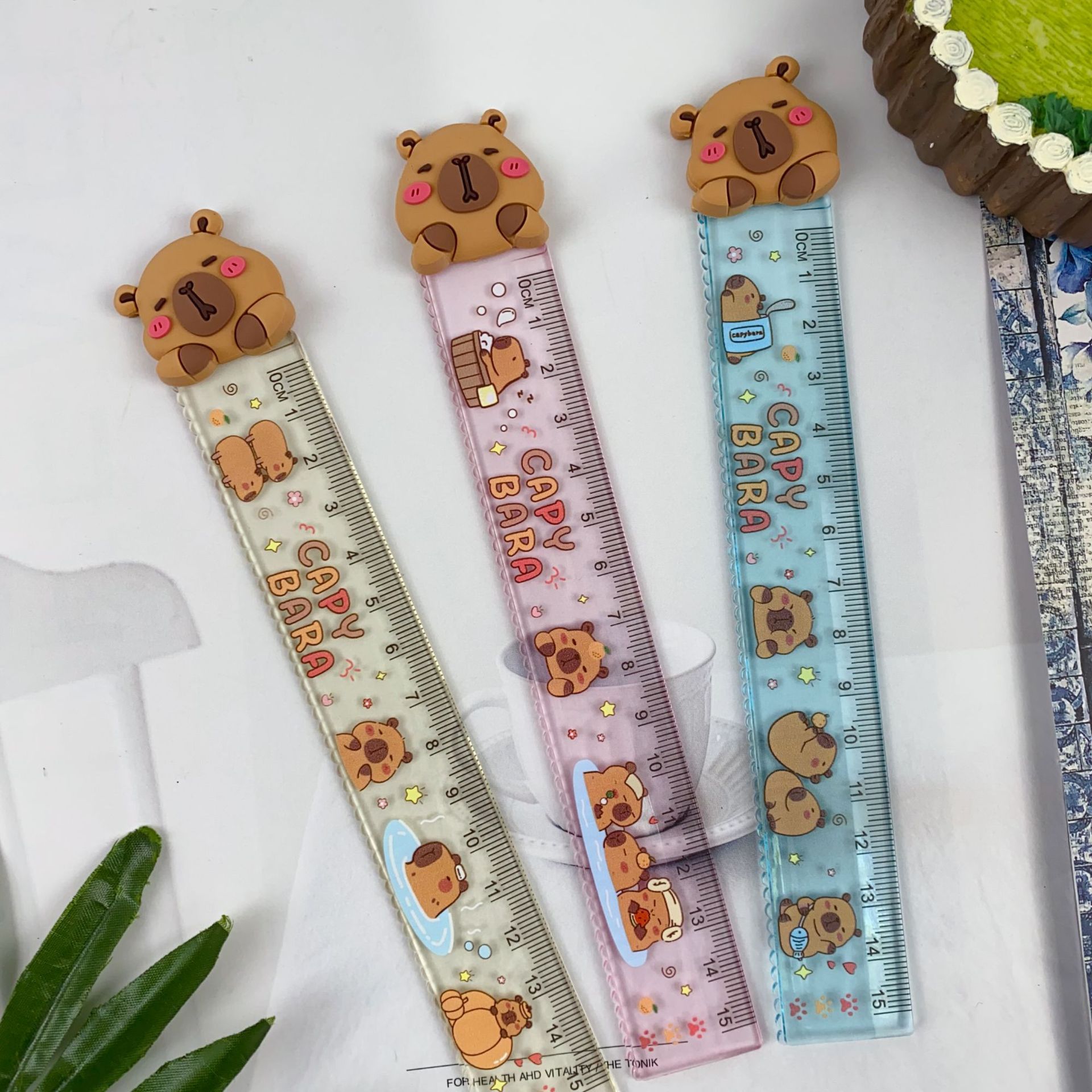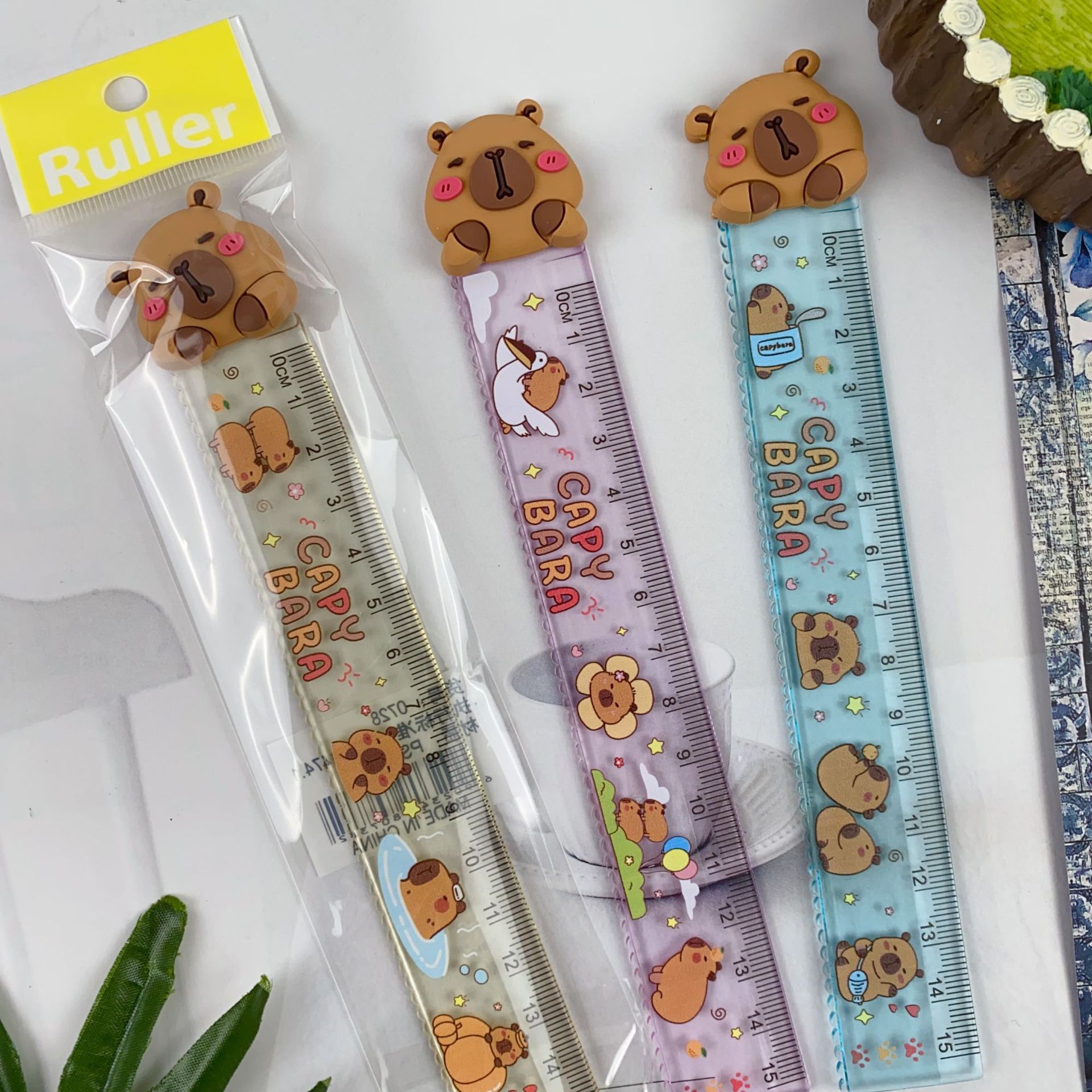 新款豚门永存卡皮巴拉直尺可爱卡通造型学生15cm直尺塑料尺子礼品