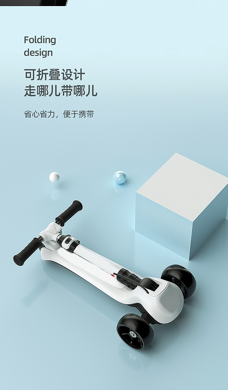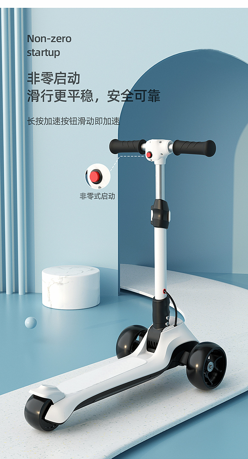跨境儿童代步电动滑板车 4-6岁便携折叠三轮电动助力溜溜车批发
