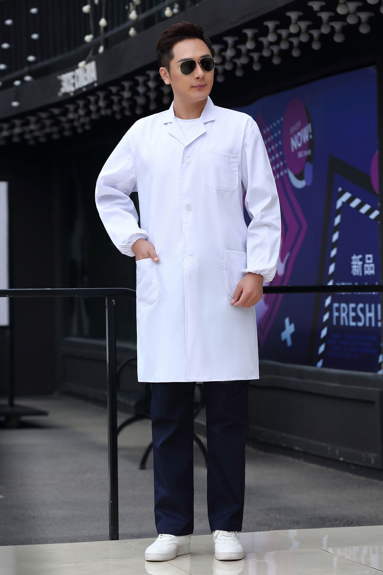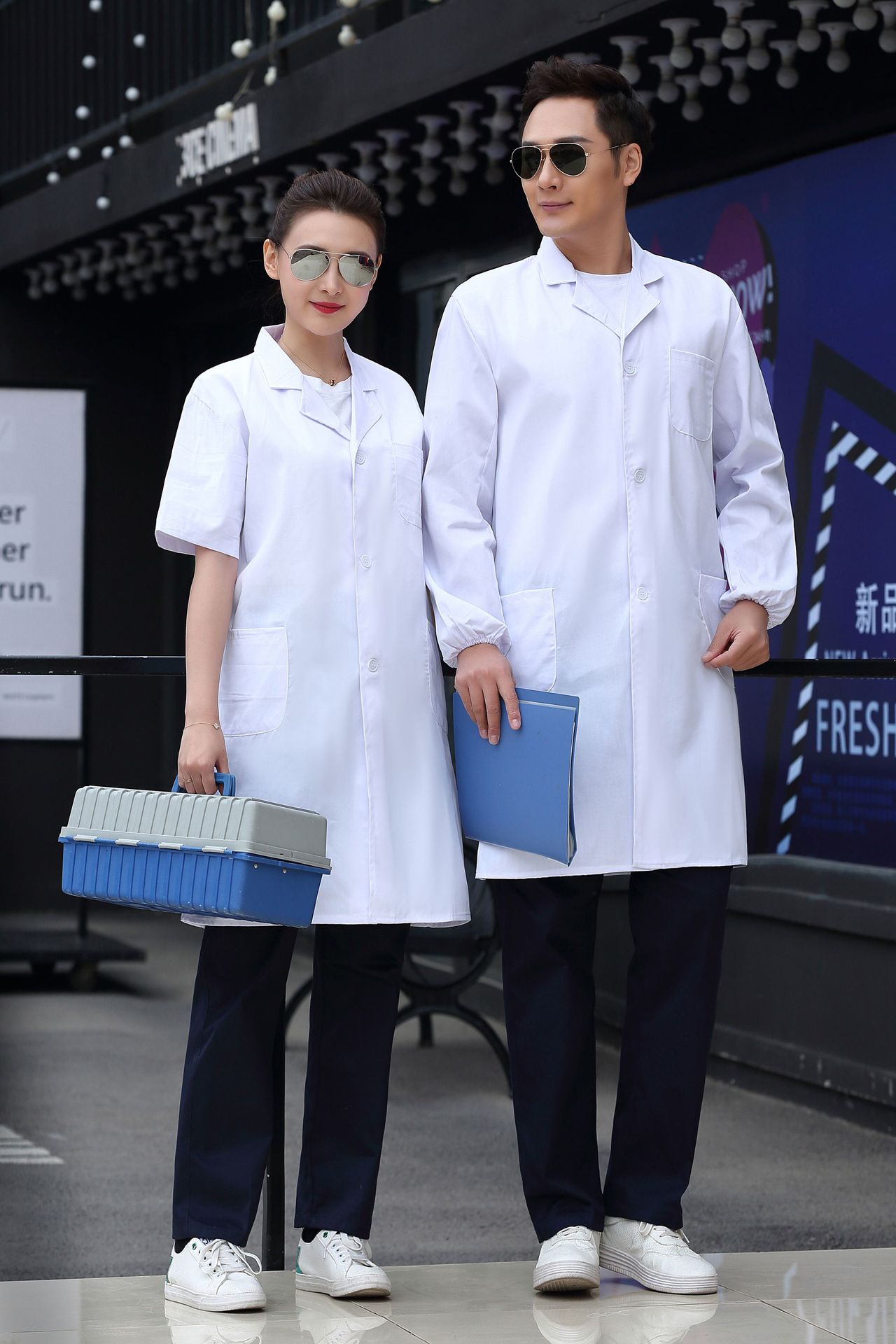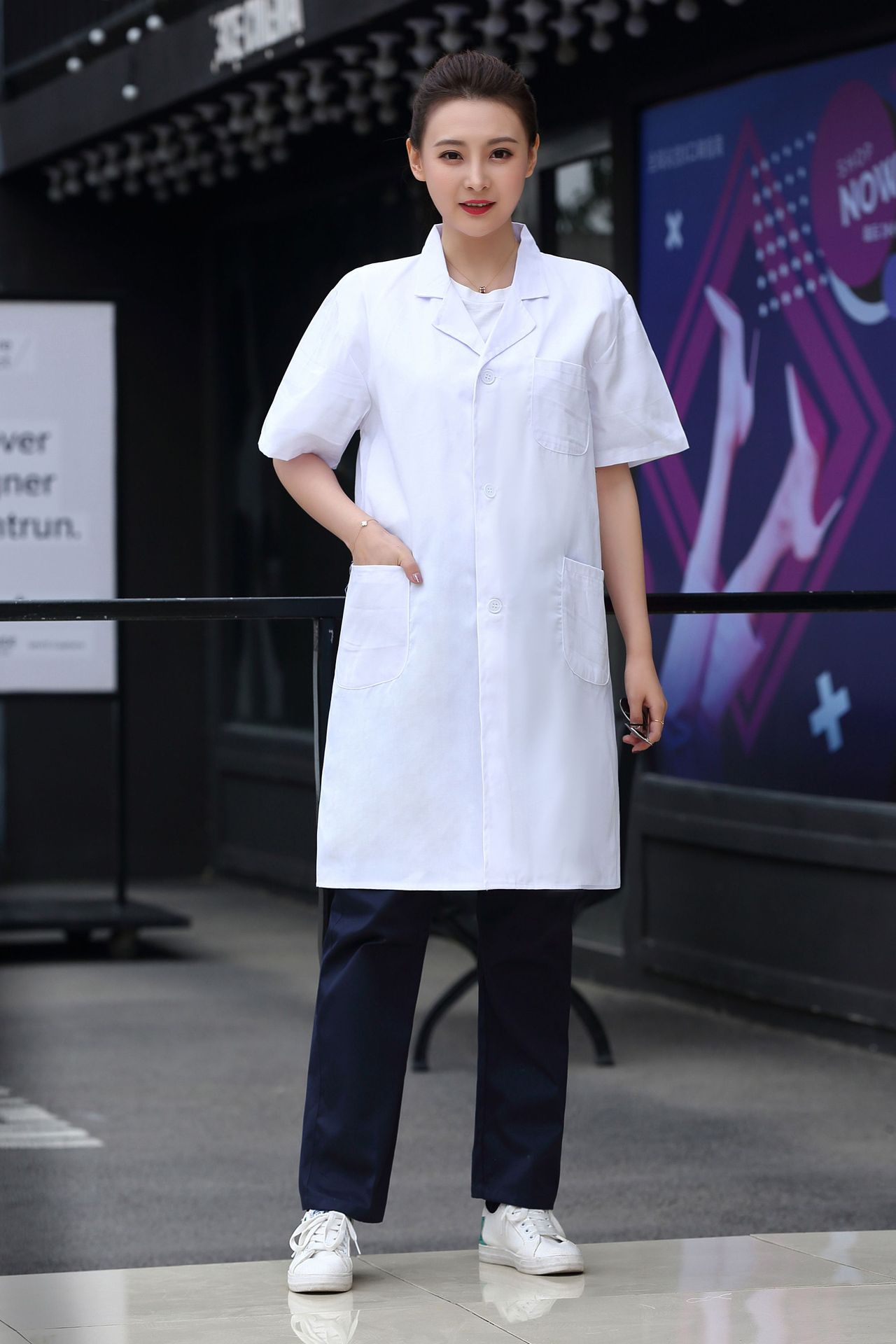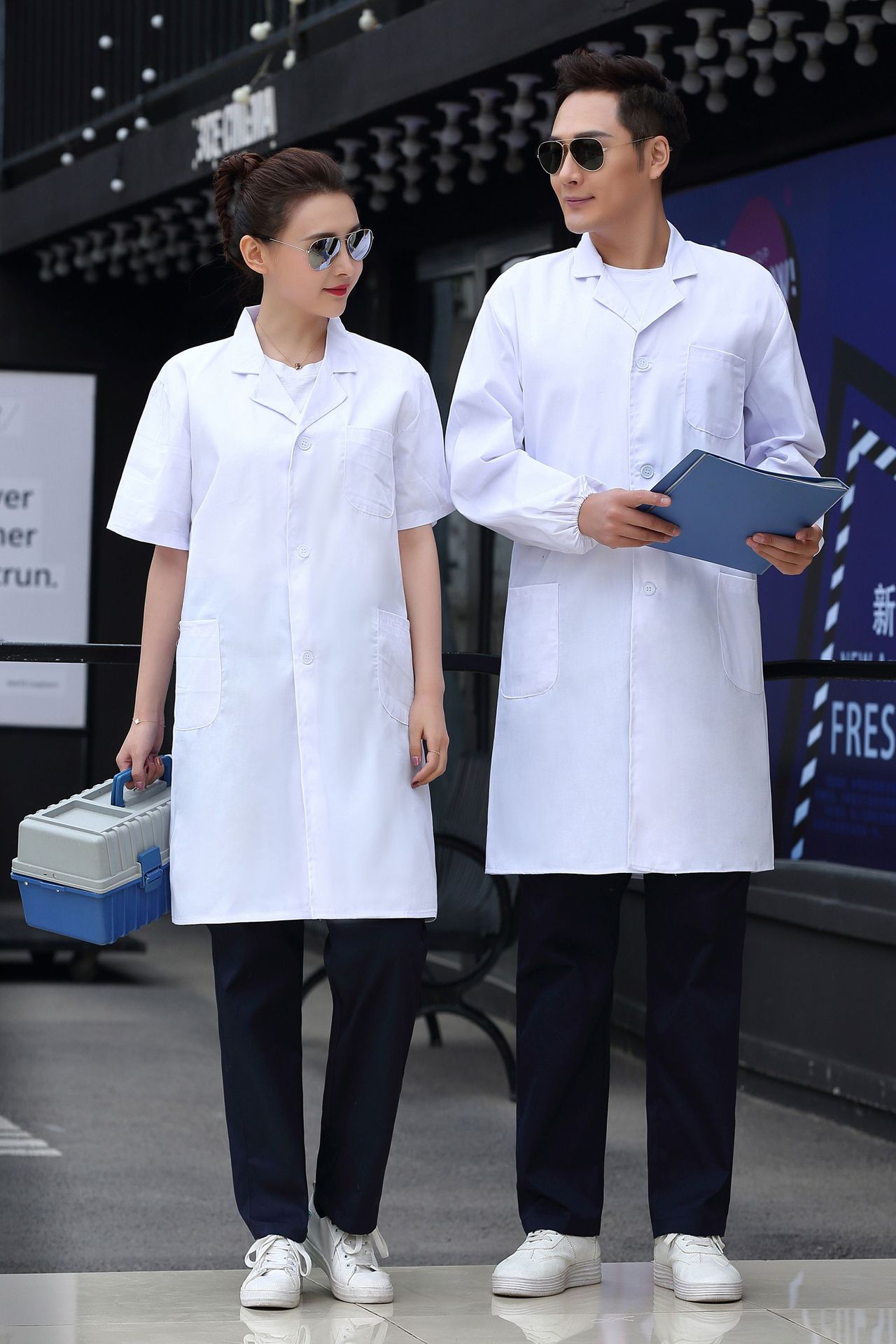 白大褂批发长袖医生服男女夏护士服短袖韩版修身美容院工作实验服
