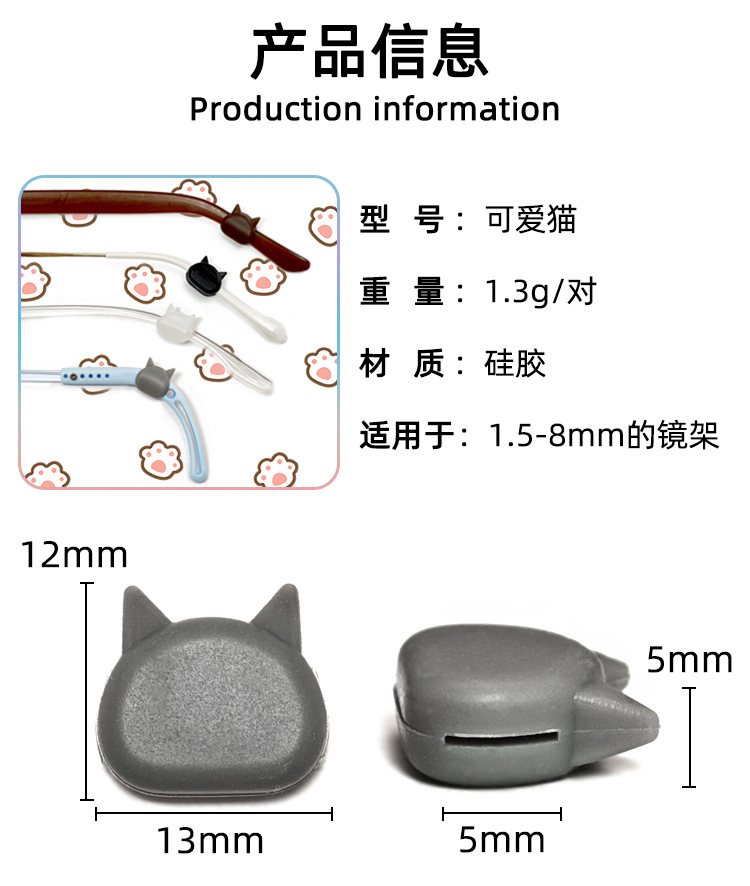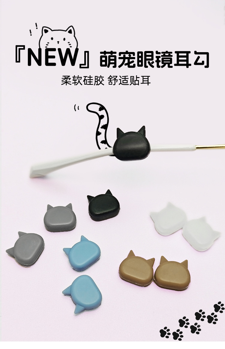 硅胶猫咪固定耳勾新款仿滑耳套儿童成人运动镜腿耳托彩色眼镜配件