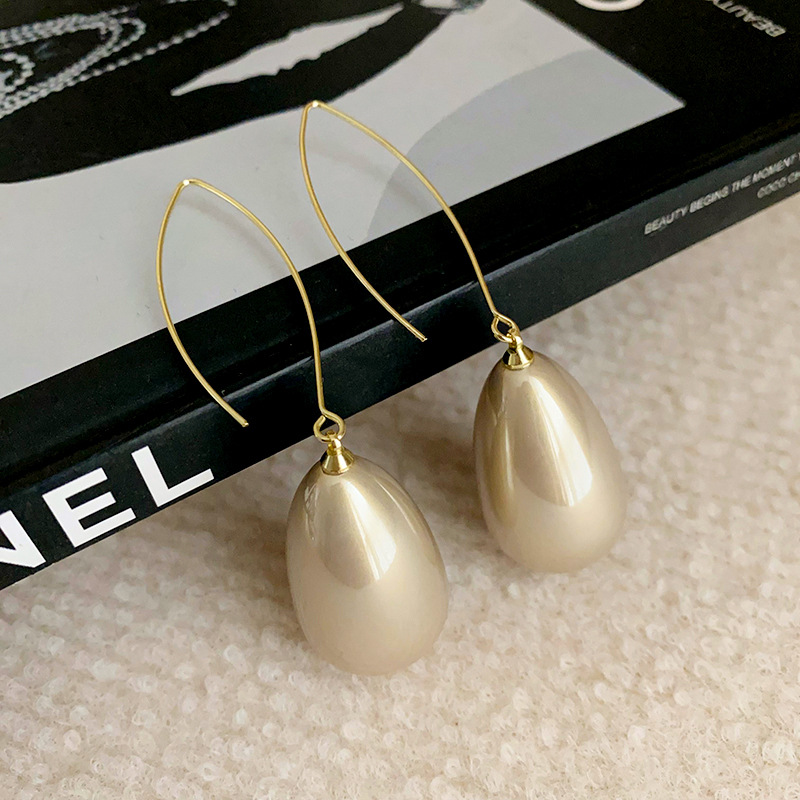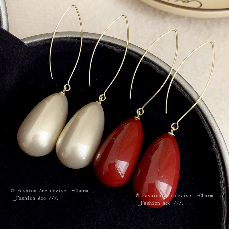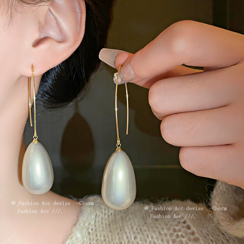 法式几何水滴珍珠耳环复古时尚气质耳钩新款高级感百搭耳饰批发女
