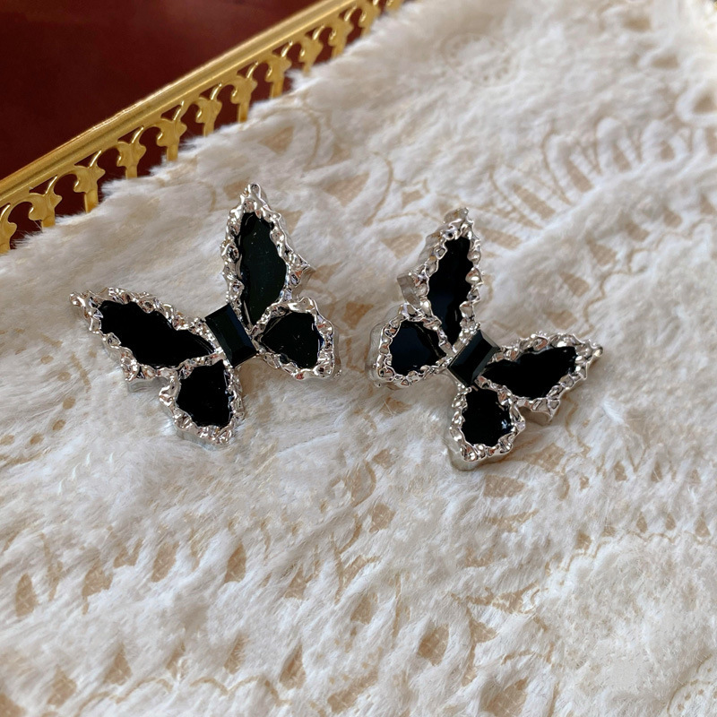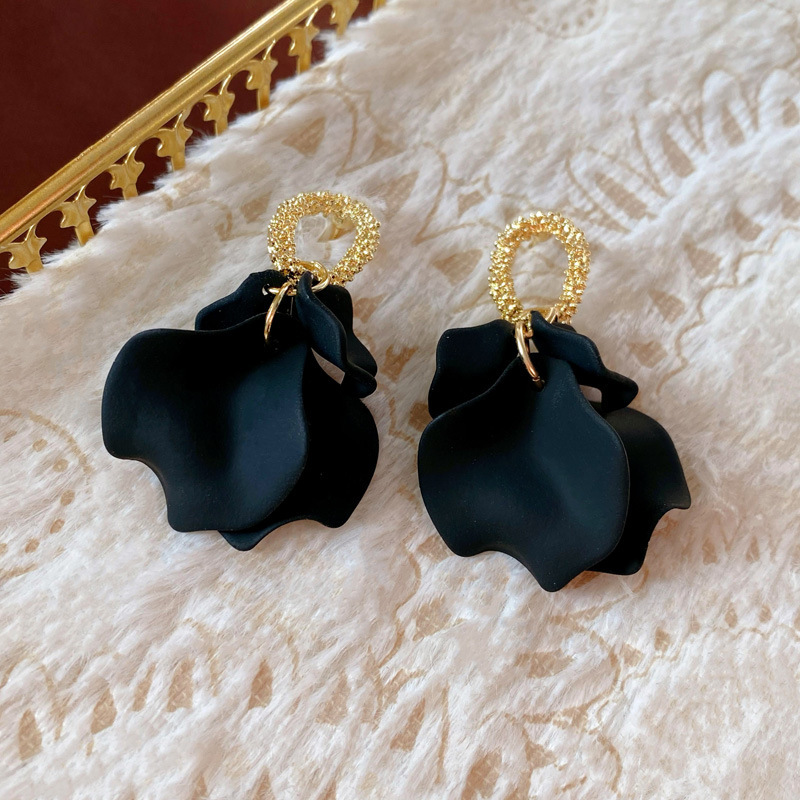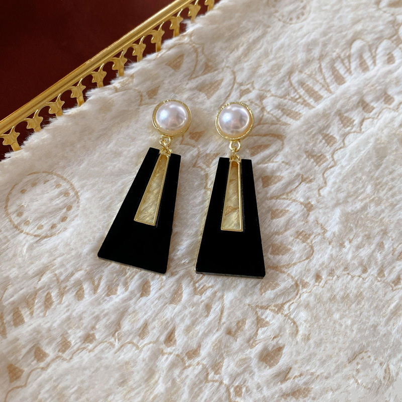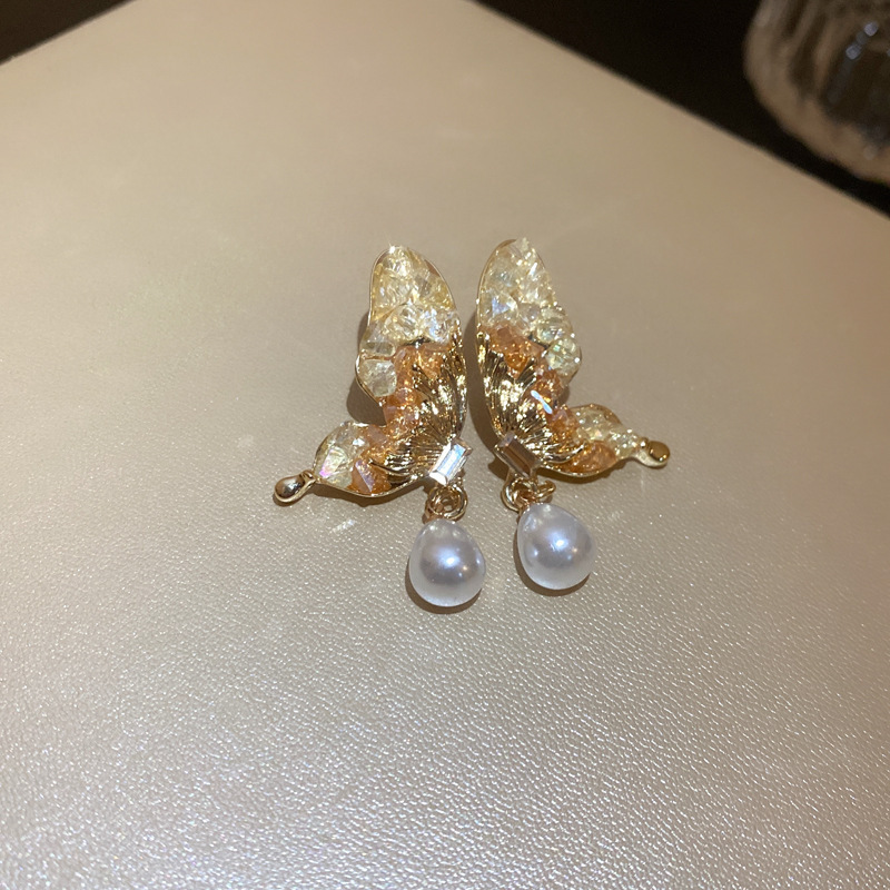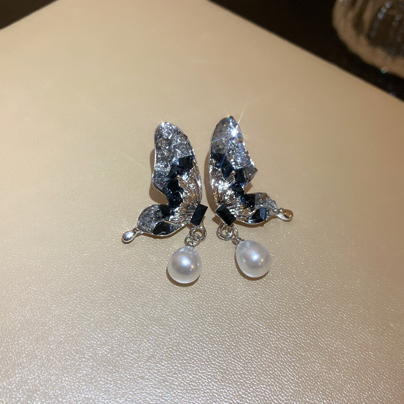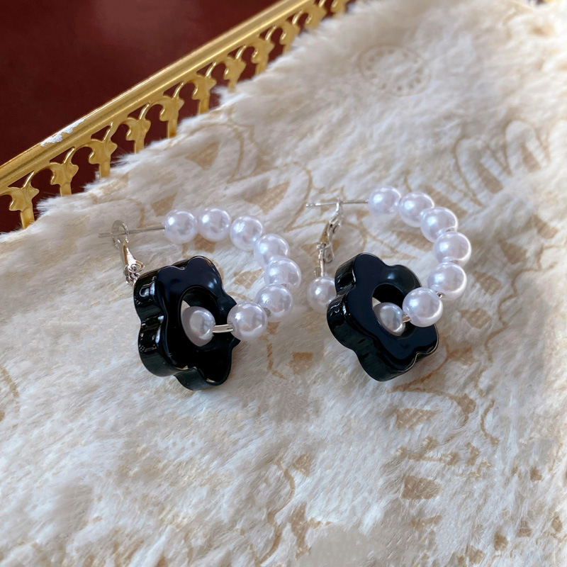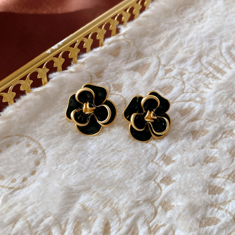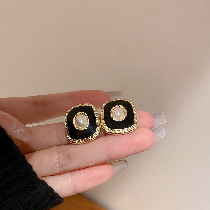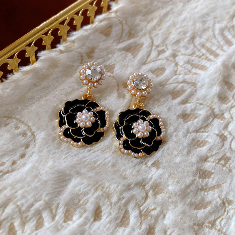 银针滴油镶钻珍珠花朵耳环女法式时尚气质耳钉复古设计感耳饰批发