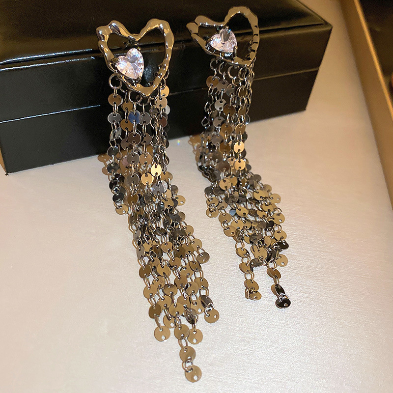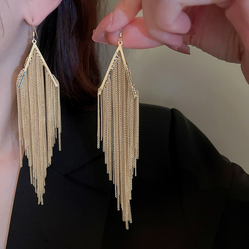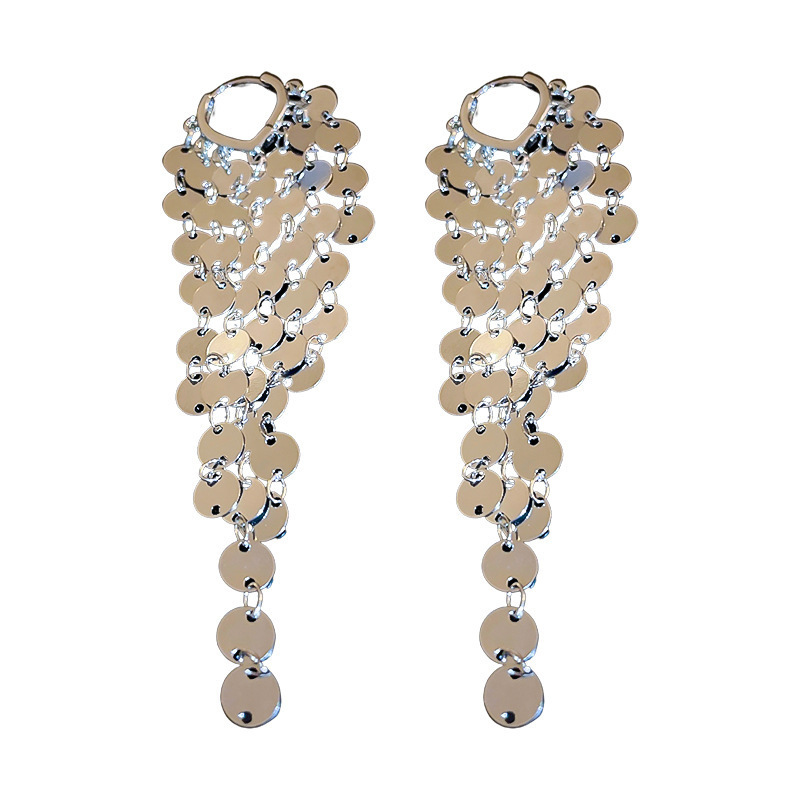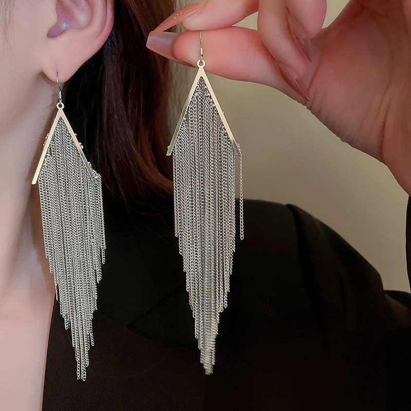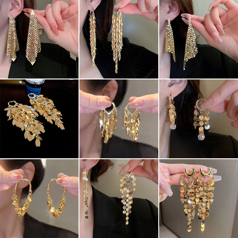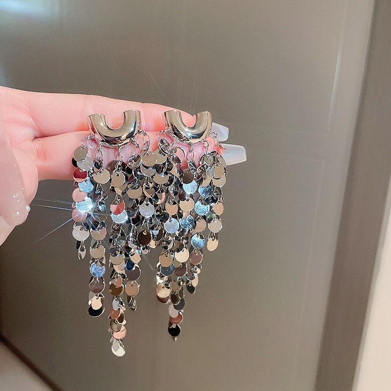 银针树叶亮片流苏耳环欧美跨境夸张个性耳钉时尚高级感耳饰批发女