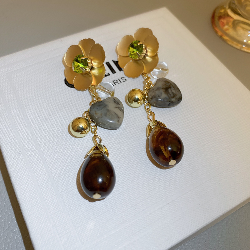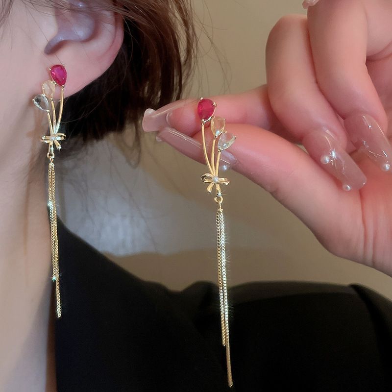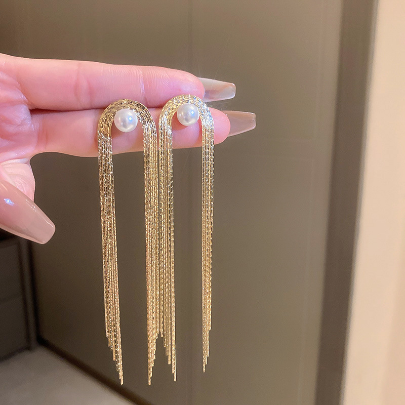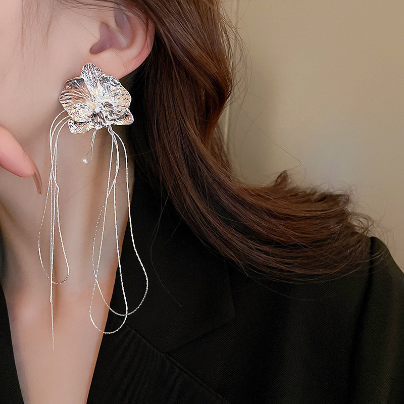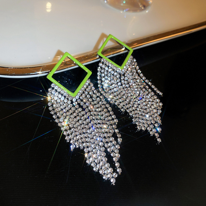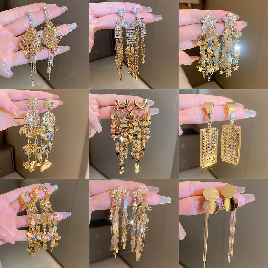 银针树叶亮片流苏耳环欧美跨境夸张个性耳钉时尚高级感耳饰批发女