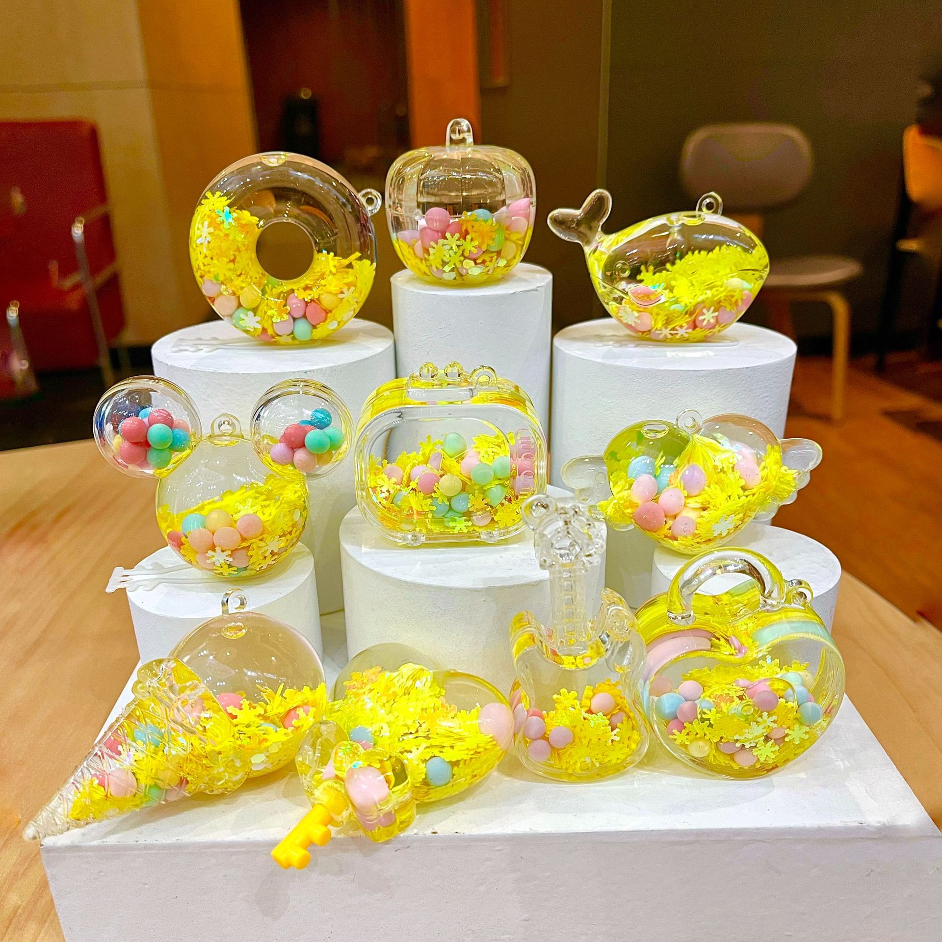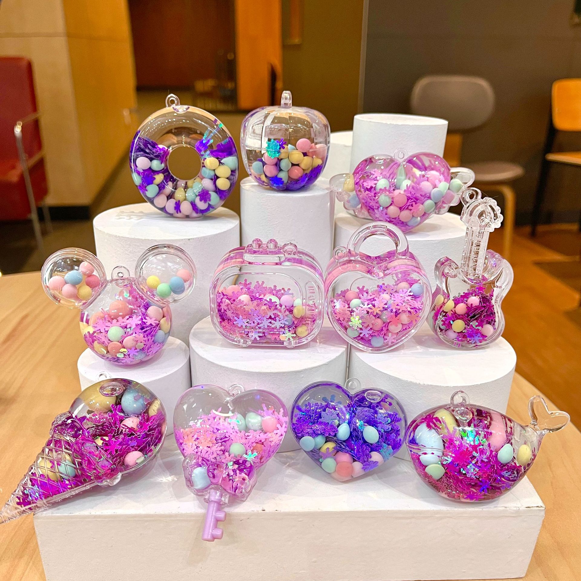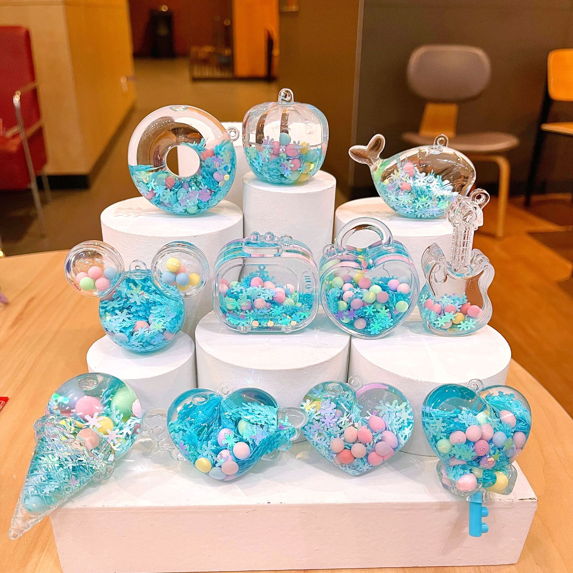 入油卡通漂浮流沙瓶diy批发小清新桌面摆件亚克力钥匙扣挂件礼品