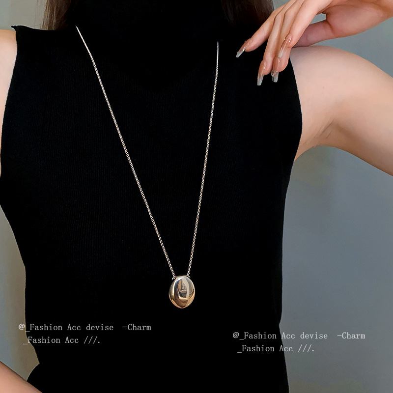 钛钢金属风椭圆链条项链ins小众设计感毛衣链气质不锈钢饰品批发