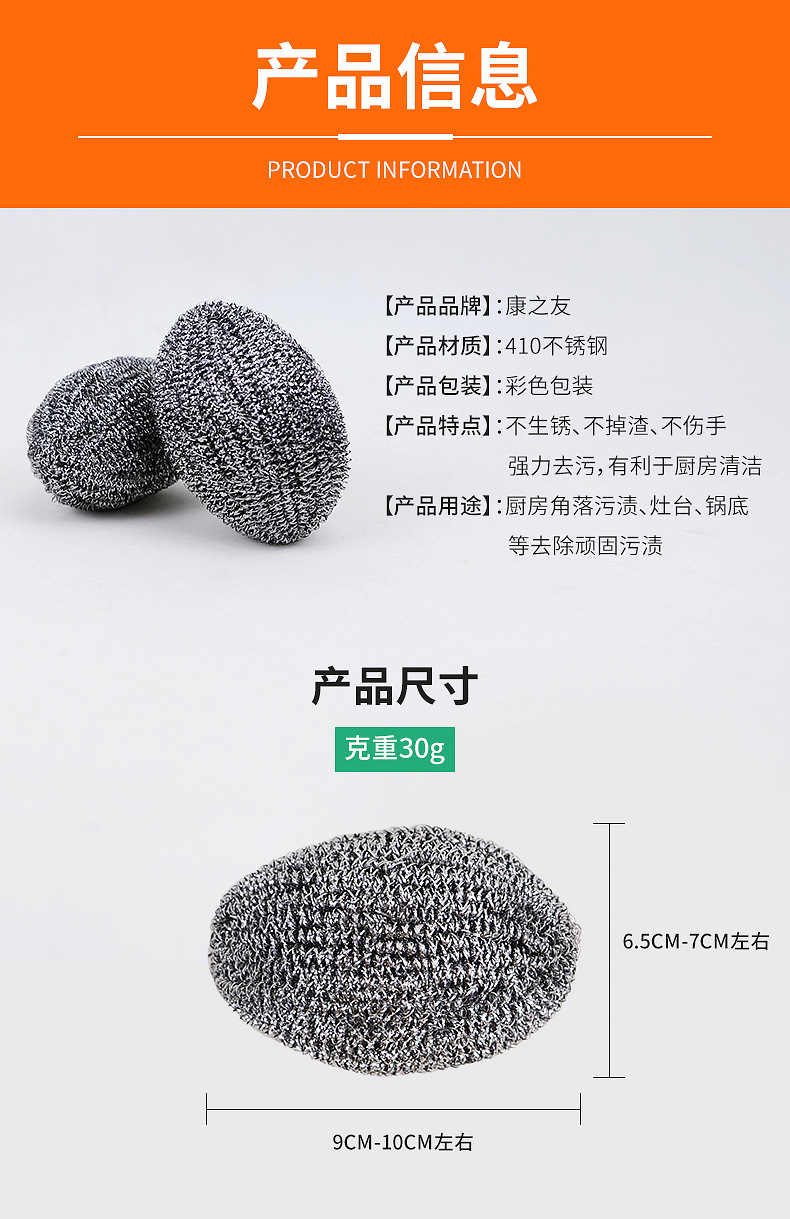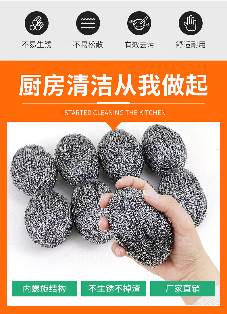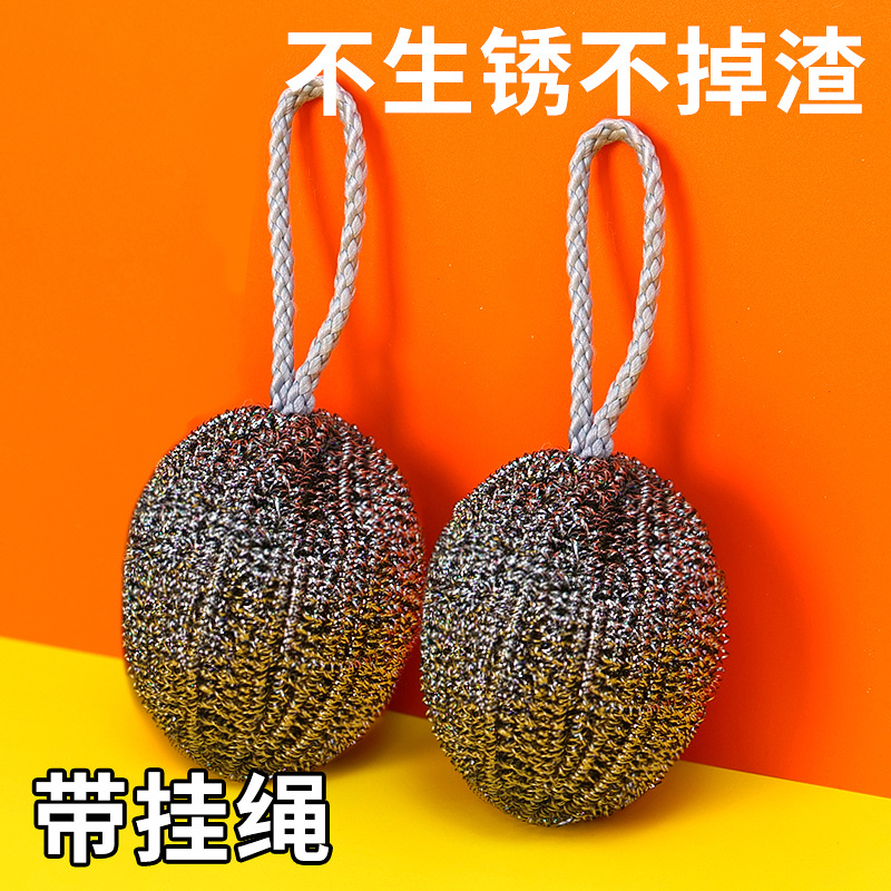 跨境不锈钢挂绳香瓜球大号钢丝球家用清洁球厨房清洁鹅蛋球清洁刷
