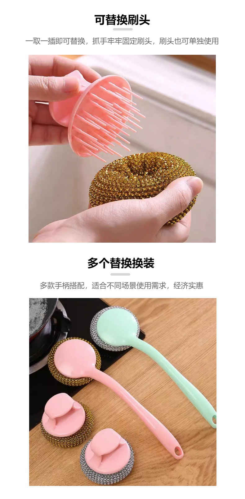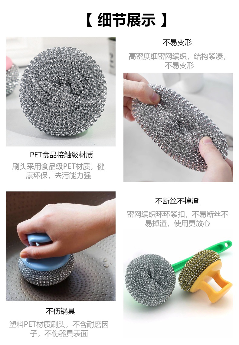 塑料清洁球不伤锅PET清洁球/刷纳米锅刷带柄可替换清洁刷钢丝球