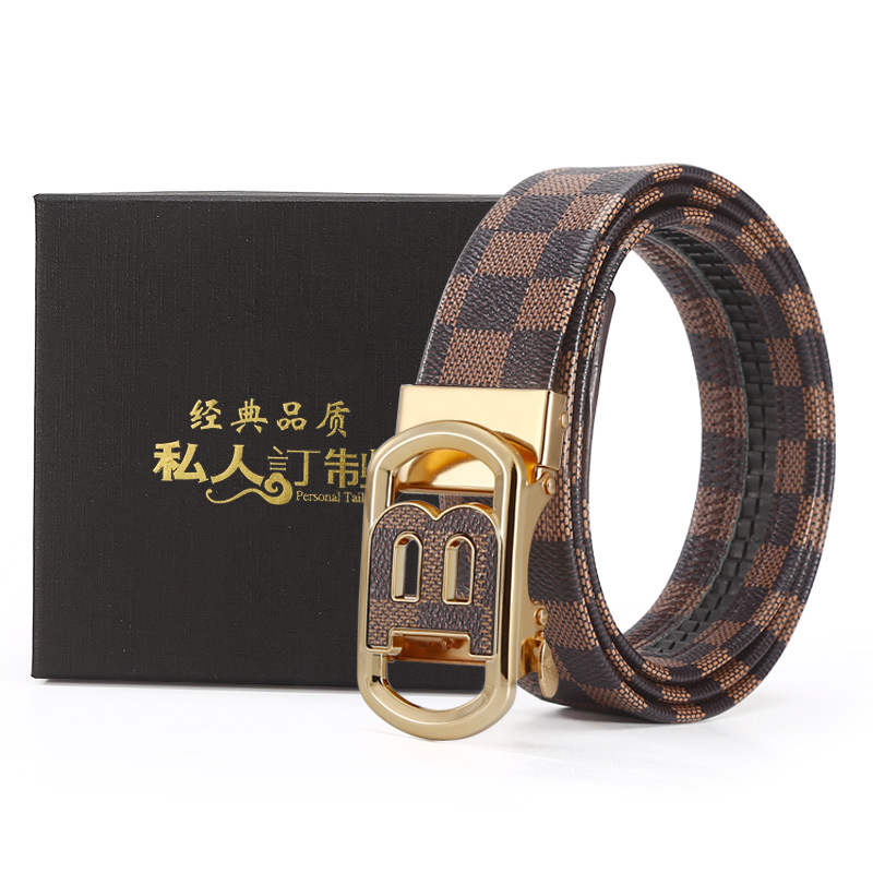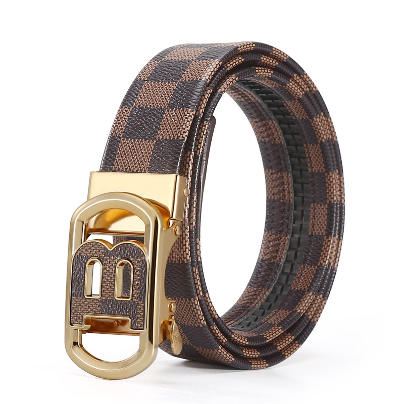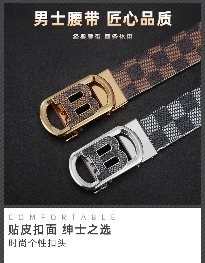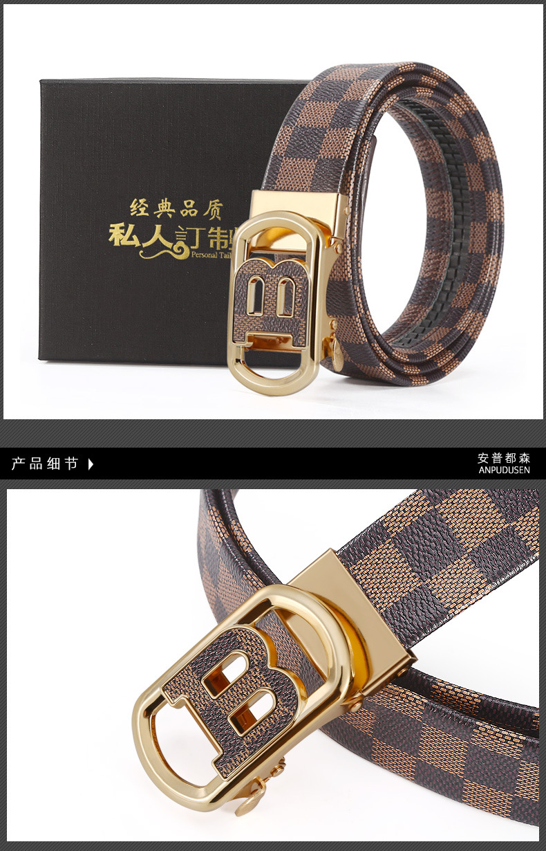 新款男士自动扣字母皮带青年商务百搭牛仔裤格纹腰带厂家现货批发