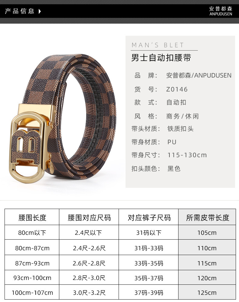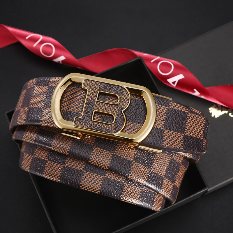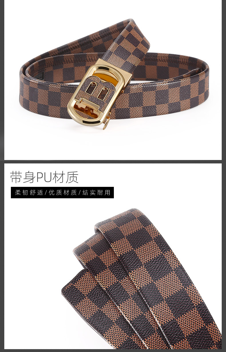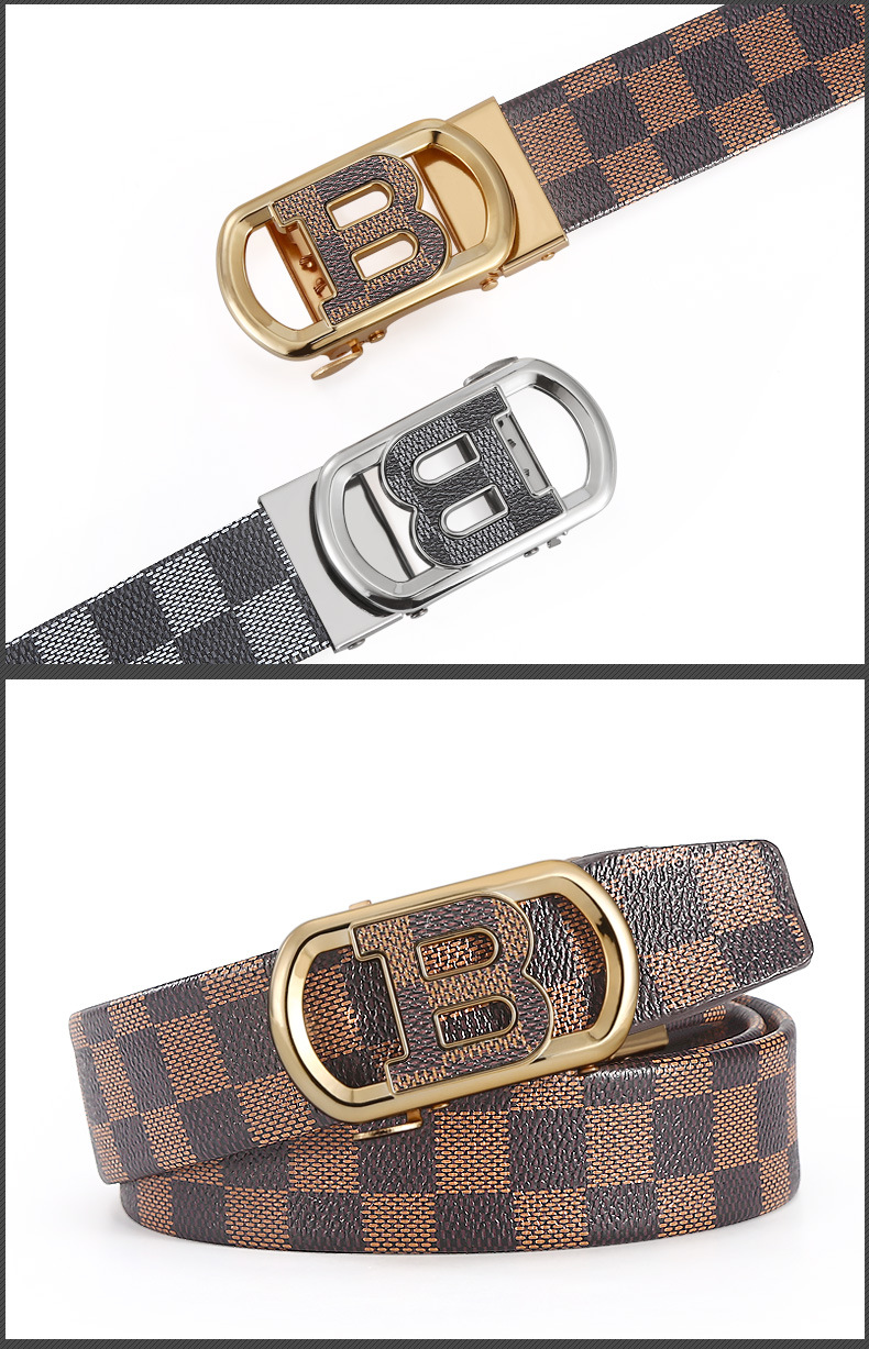 新款男士自动扣字母皮带青年商务百搭牛仔裤格纹腰带厂家现货批发