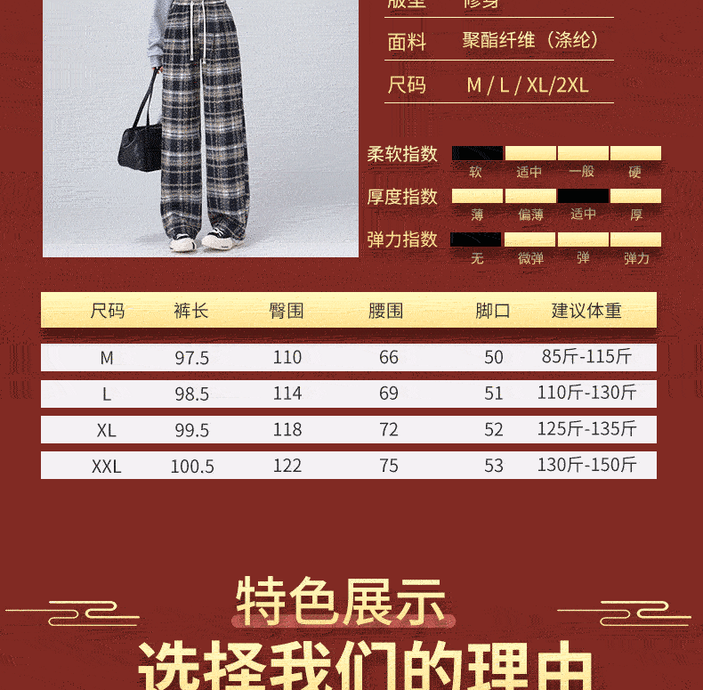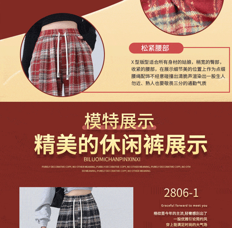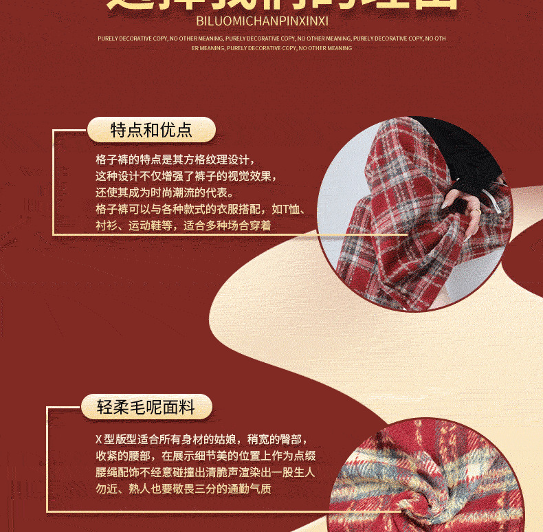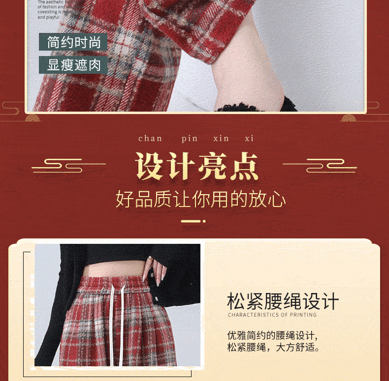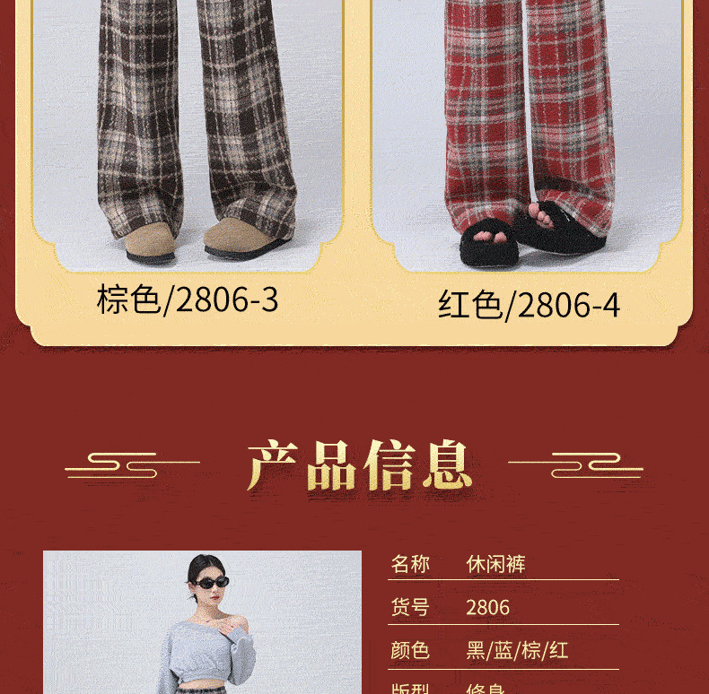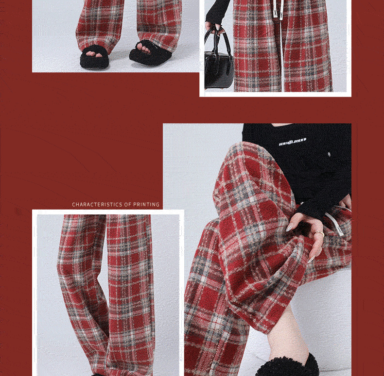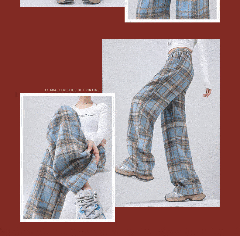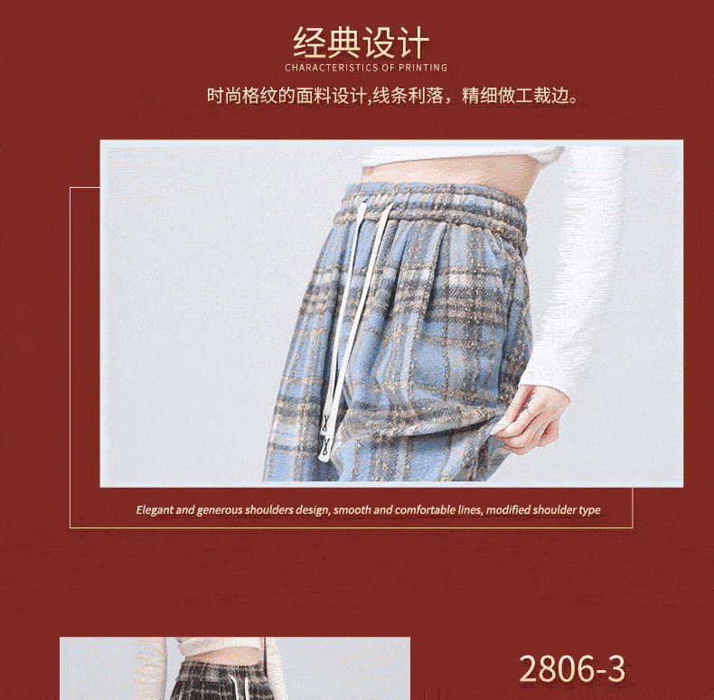 新品毛呢格子阔腿裤春秋时尚百搭显高显瘦直筒高腰休闲潮流阔腿裤