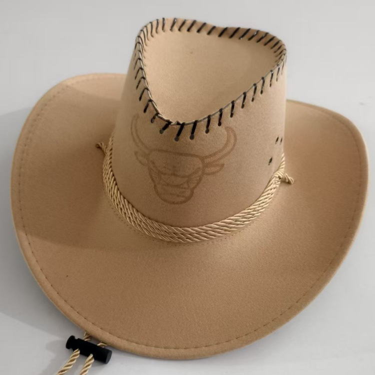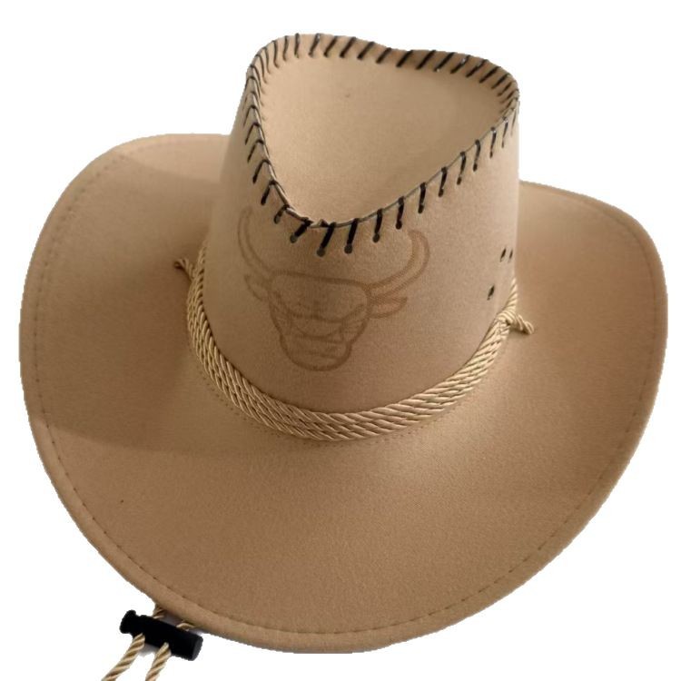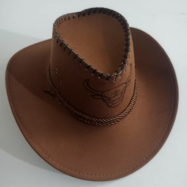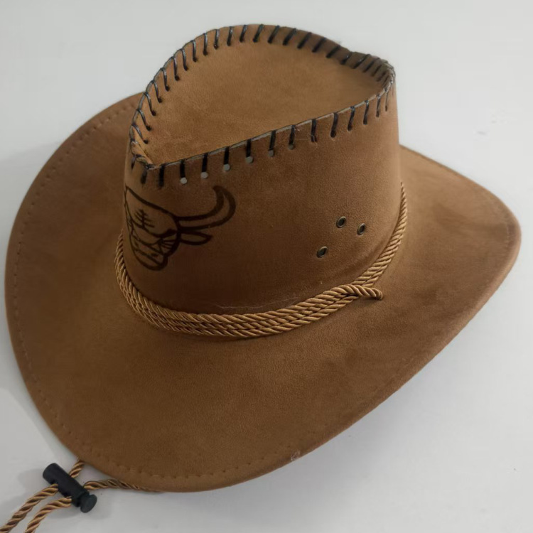 新款印牛头鸡皮鹿皮绒骑士西部牛仔帽迷彩布帽旅游遮阳帽批发草帽