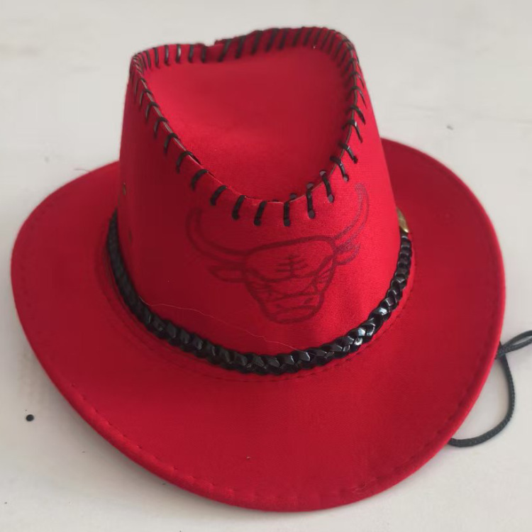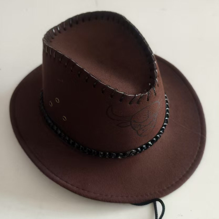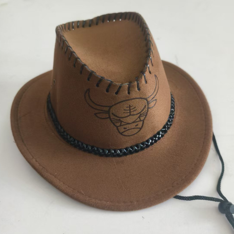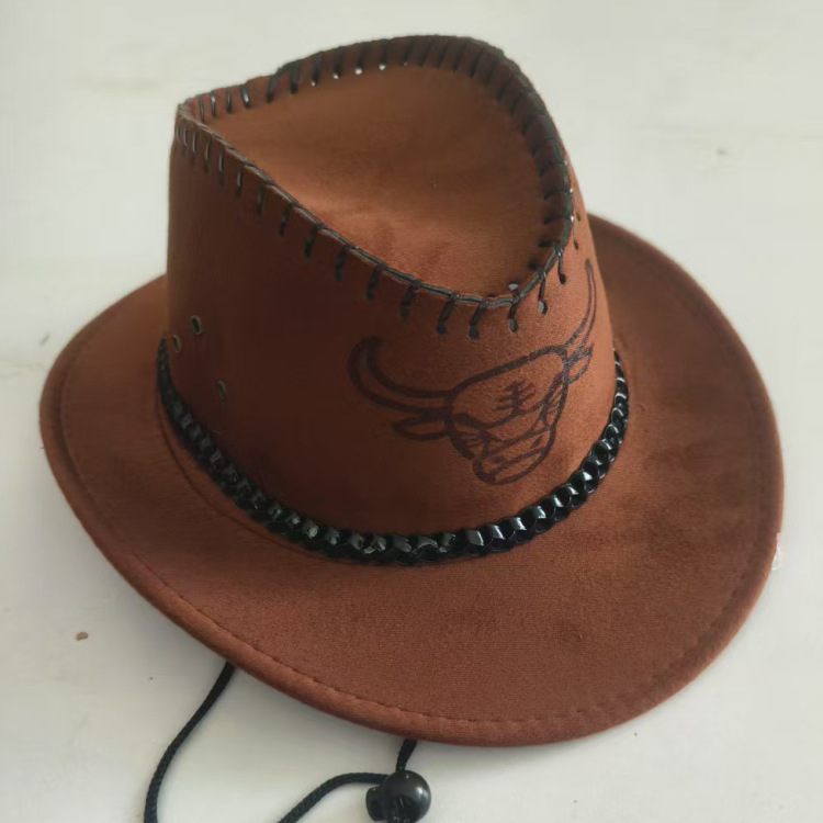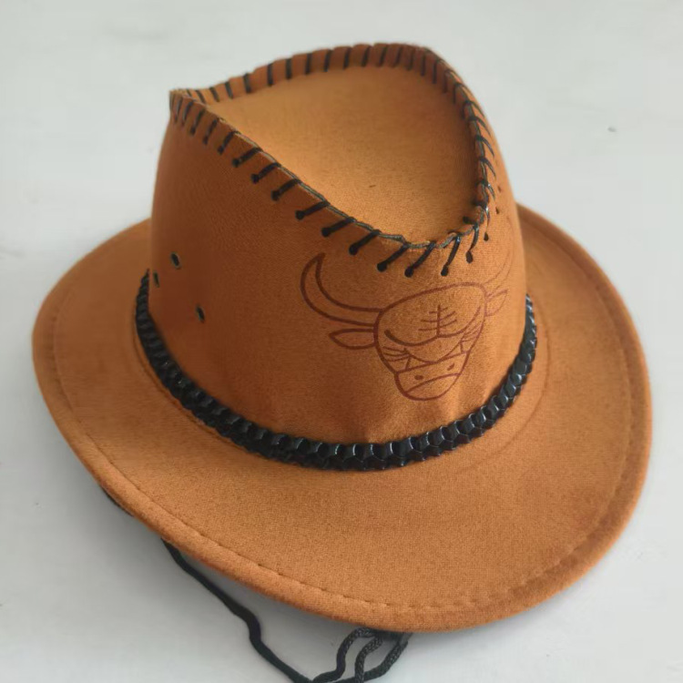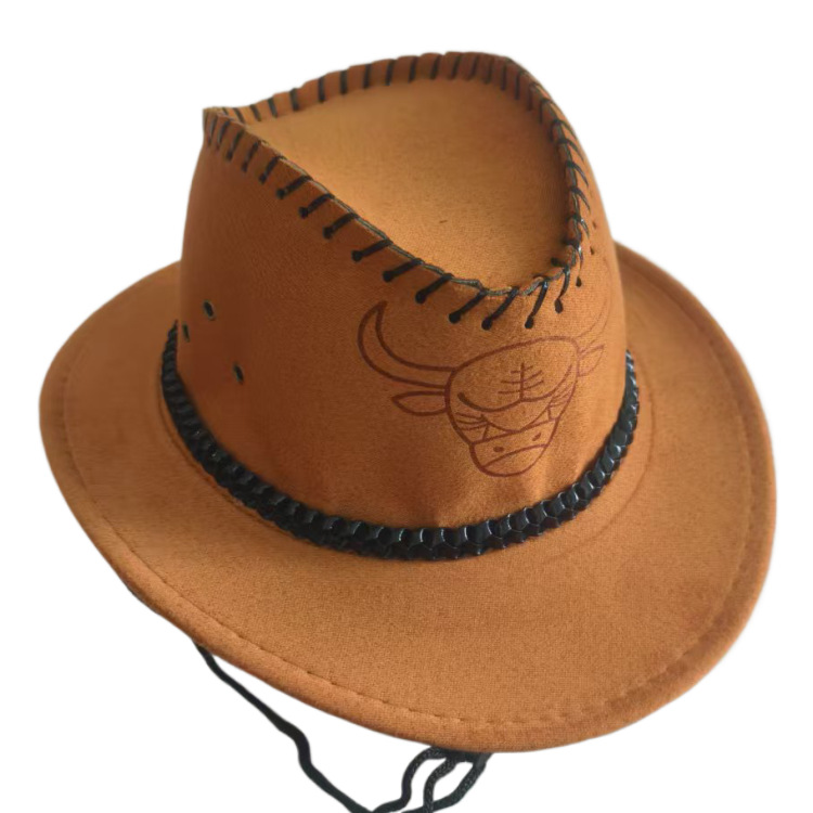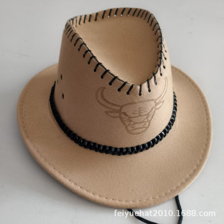 厂家鹿皮绒鸡皮绒西部牛仔帽印牛头小礼帽户外旅游表演帽子