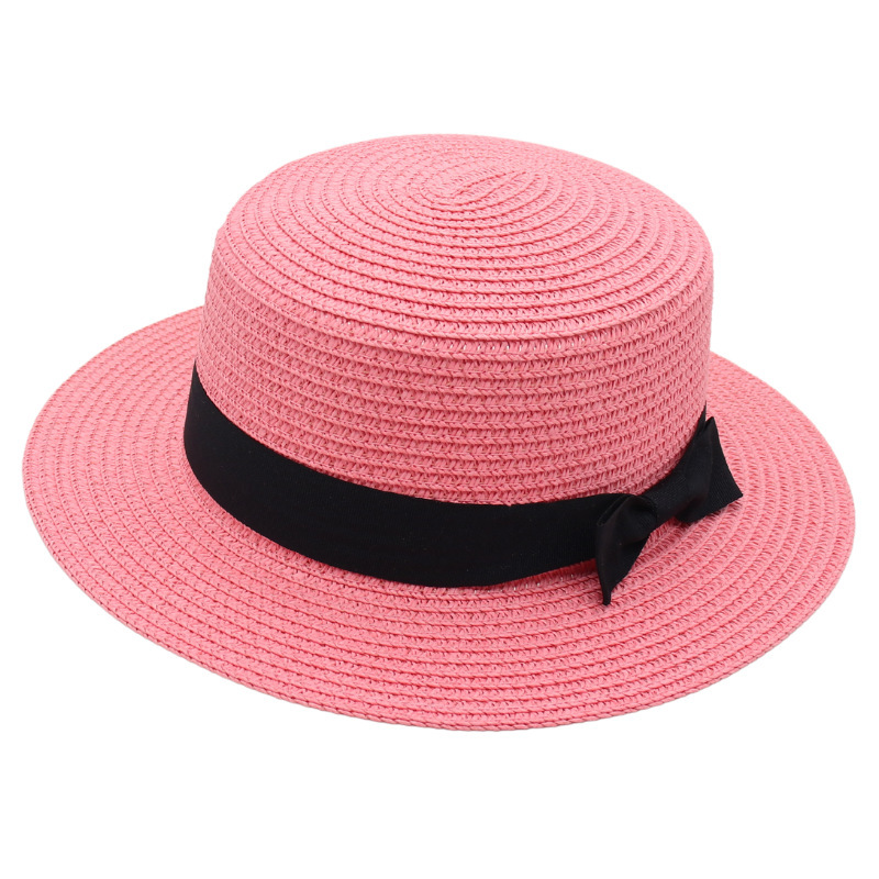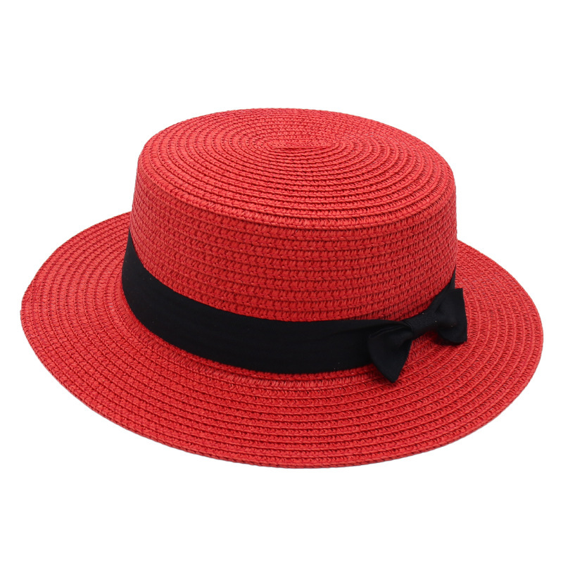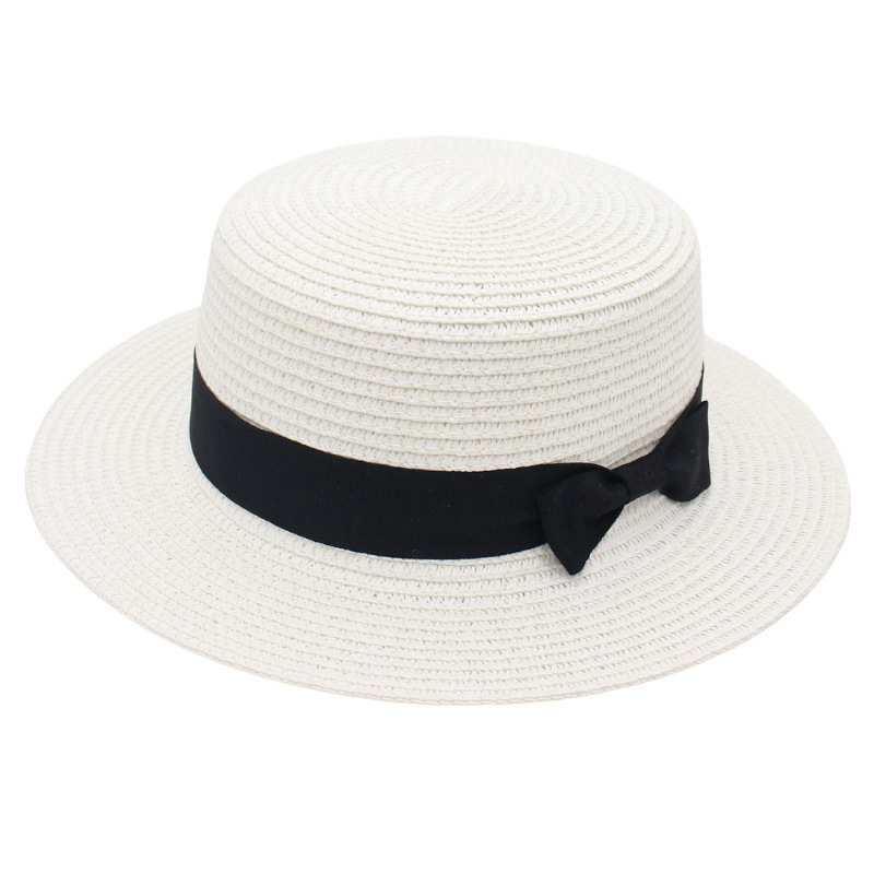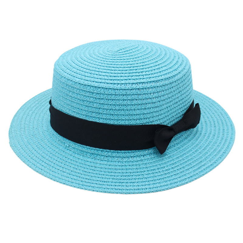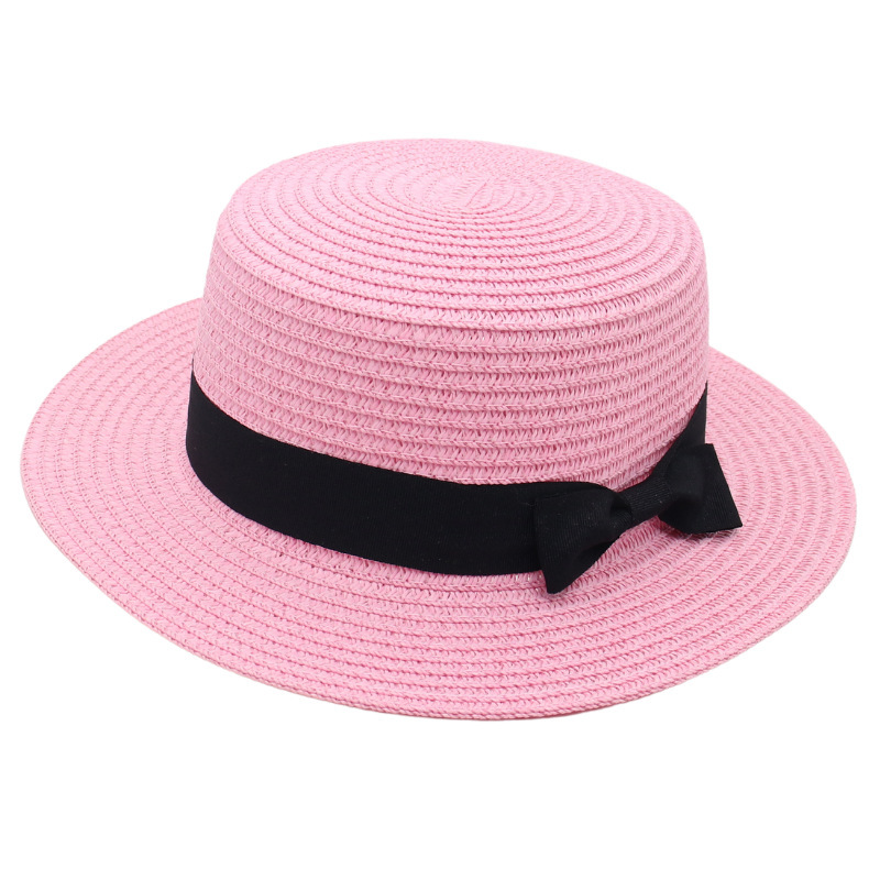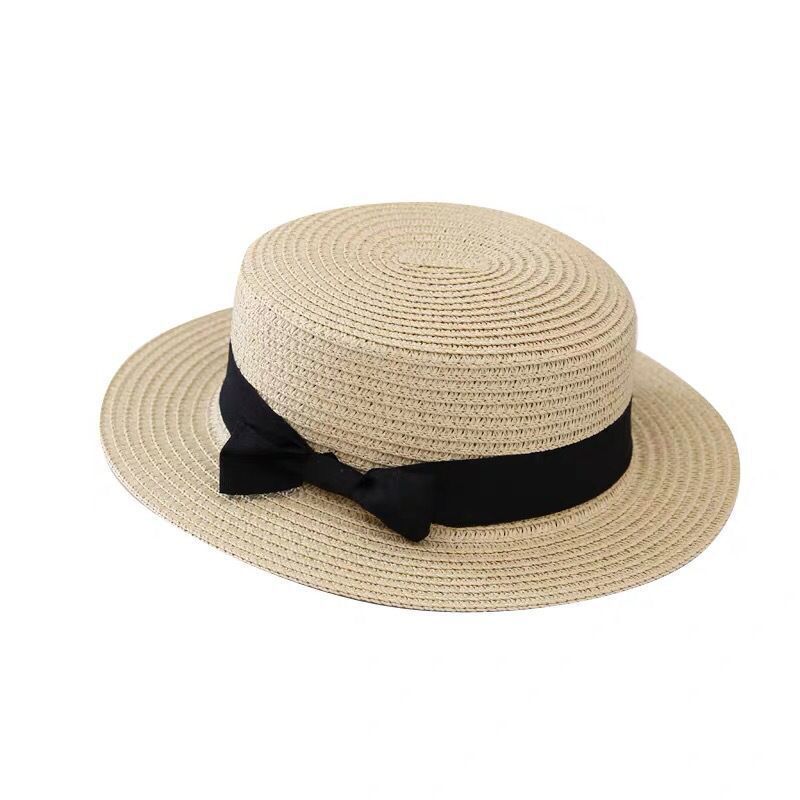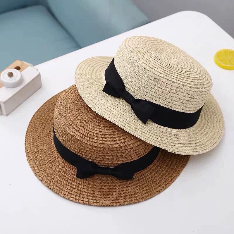 英伦复古蝴蝶结平顶小礼帽韩版亲子款防晒遮阳草帽纯色简约沙滩帽